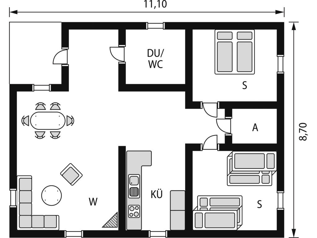 Wohnfläche 78 m². E-Herd 4 Platten, Backofen, Mikrowelle, Geschirrspüler, Kühlschrank, Gefrierschrank (ca. 120 l), Kaffeemaschine, Wasserkocher, Toaster, Waschmaschine. Sat-TV (deutsche Programme), DVD, Internetzugang (WLAN, Bezahlung). Dusche/WC. Elektroheizung, Kaminofen. Ferienhaus HJD 061 ca. 500 m entfernt. Flexibilität bei der Bettenaufteilung: Es stehen mehr Schlafmöglichkeiten zur Verfügung als die maximal zugelassene Personenzahl, diese darf dennoch nicht überschritten werden.