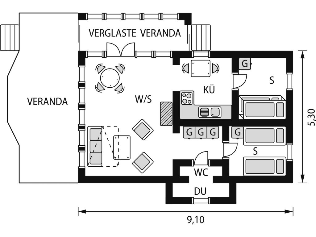 Wohnfläche 48 m². 4 Ceranfelder, Backofen, Mikrowelle, Kühlschrank, Gefrierschrank (ca. 40 l), Kaffeemaschine, Wasserkocher, Toaster. Dusche/WC. Elektroheizung, Kamin mit Einsatz.Hinweis: der Besitzer akzeptiert keine Gruppenbuchungen.