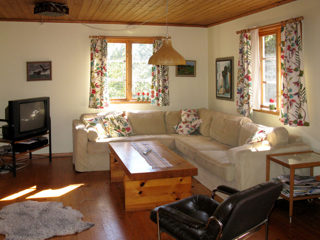 Wohnfläche 60 m². E-Herd 3 Platten, Backofen, Mikrowelle, Kühlschrank, Kaffeemaschine, Wasserkocher, Toaster, Waschmaschine. Sat-TV (deutsche Programme). Dusche/WC. Elektroheizung, Kachelofen. Holzofen in der Küche nur zur Dekoration. Ferienhaus SND 064 ca. 80 m entfernt.Hinweis: der Besitzer wünscht keine Anglergruppen.