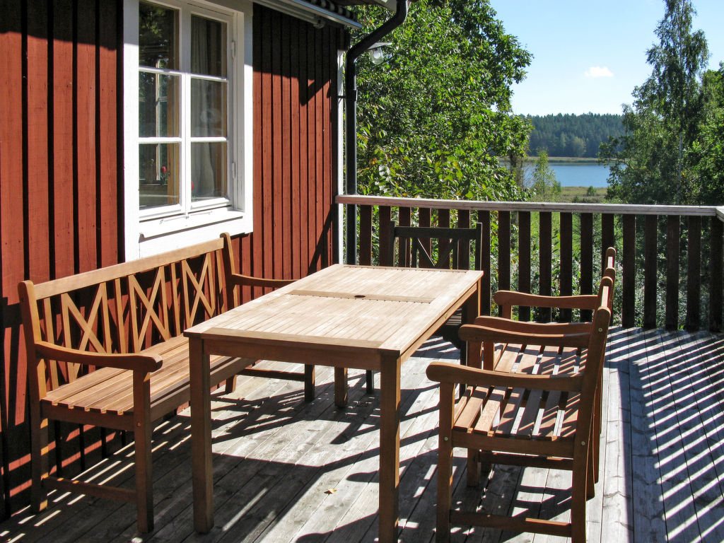Das Ferienhaus steht mit Blick auf die ca. 300 m entfernte, langgezogene Meeresbucht Edsviken, 53 km nördlich vom Küstenstädtchen Västervik. Kaufmann in Edsbruk (17 km). Am ca. 450 m entfernten Bootssteg Ruderboot vorhanden. Ein eigener Motor bis 10 PS kann mitgebracht werden. Auf Bestellung zu mieten 10-PS-Motorboot, SEK 1300 pro Woche und zusätzliche Kaution. Sehr gutes Angelgebiet (kostenlos). Flach abfallender Badeplatz in Kaggebo (8 km). Empfehlenswert sind Wander-, Rad- oder Paddeltouren entlang der Küste, Anschluss an markierte Wege in Ukna (25 km). Das hell und freundlich eingerichtete Haus steht ländlich, einzelne Nachbarhäuser ab ca. 80 m. Erhöhte Lage auf einem etwa 800 m² großen Naturgrundstück. Veranda, Gartenmöbel, transportabler Grill. 2 Parkmöglichkeiten am Haus.