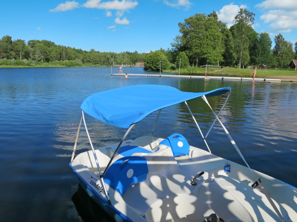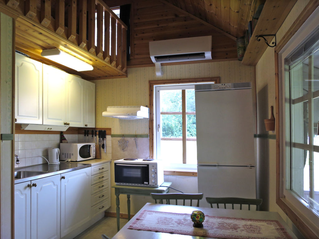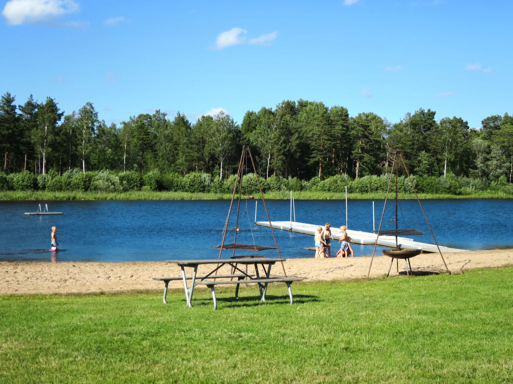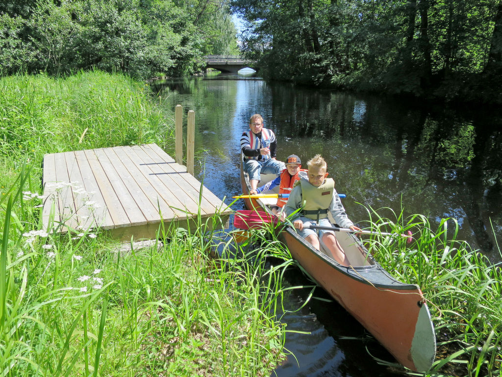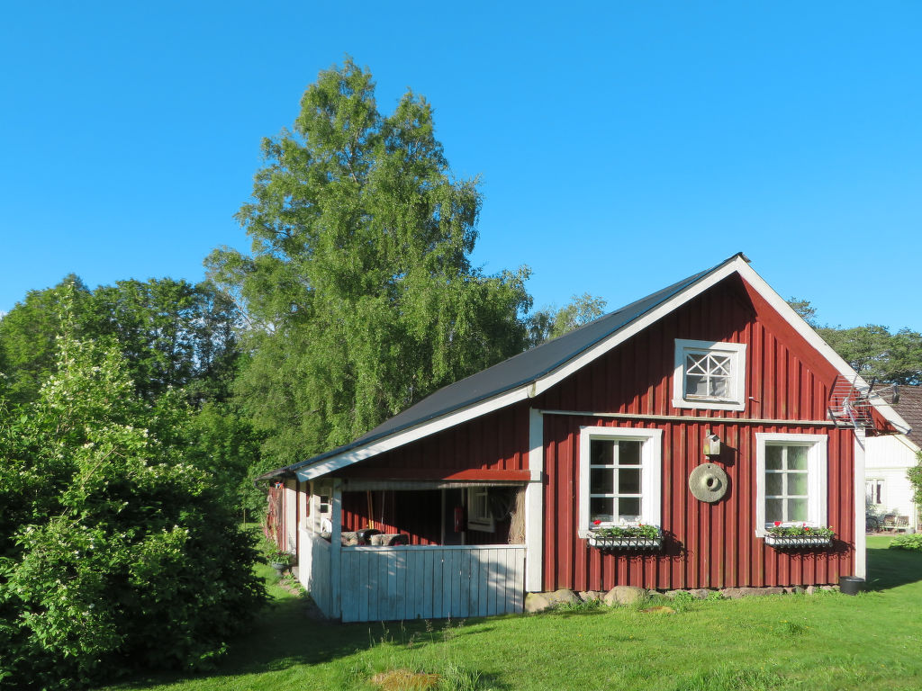 Das kleine Ferienhaus steht ca. 60 m vom Fluss Tidan, am Rande des Kirchdorfs Fröjered, 25 km südöstlich von Skövde. Kaufmann 10 km in Tidaholm. Am ca. 60 m entfernten Steg Kanu vorhanden. Wasserstraße bis zum Vänern-See, gutes Paddel- und Angelgebiet, in der Saison auch Krebsfischen. Baden am flach abfallenden Sandstrand mit Steg, Kiosk und Minigolf, ca. 400 m. Sportangel- und Naturschutzgebiet Hökensås 23 km, gutes Wandergebiet mit markierten Wegen und schönen Ausblicken über die Ebene zwischen den Seen Vättern und Vänern. Fahrradvermietung 8 km in Tidaholm. Sehenswert im Frühjahr ist der Tanz der Kraniche am See Hornborgasjön (50 km). Der Deutsch sprechende Besitzer, der nebenan wohnt, gibt seinen Gästen gerne weitere Ausflugstipps. Das feriengerecht eingerichtete Haus steht auf einem ca. 600 m² großen Naturgrundstück mit Wiesenfläche und Obstbäumen. Terrasse, überdachte Südost-Veranda, Gartenmöbel, transportabler Grill. Parken am Haus.
