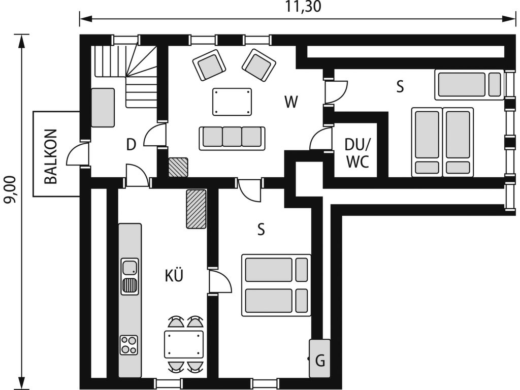 Wohnfläche 75 m². 4 Ceranfelder, Backofen, Holzofen, Mikrowelle, Kühlschrank, Gefrierschrank (ca. 200 l), Kaffeemaschine, Wasserkocher, Toaster. Sat-TV (deutsche Programme). Dusche/WC. Elektroheizung, Kamin. Zur gemeinsamen Nutzung Waschmaschine und Trockner (im Keller mit Zugang von außen). OST 100-104 sind benachbart.