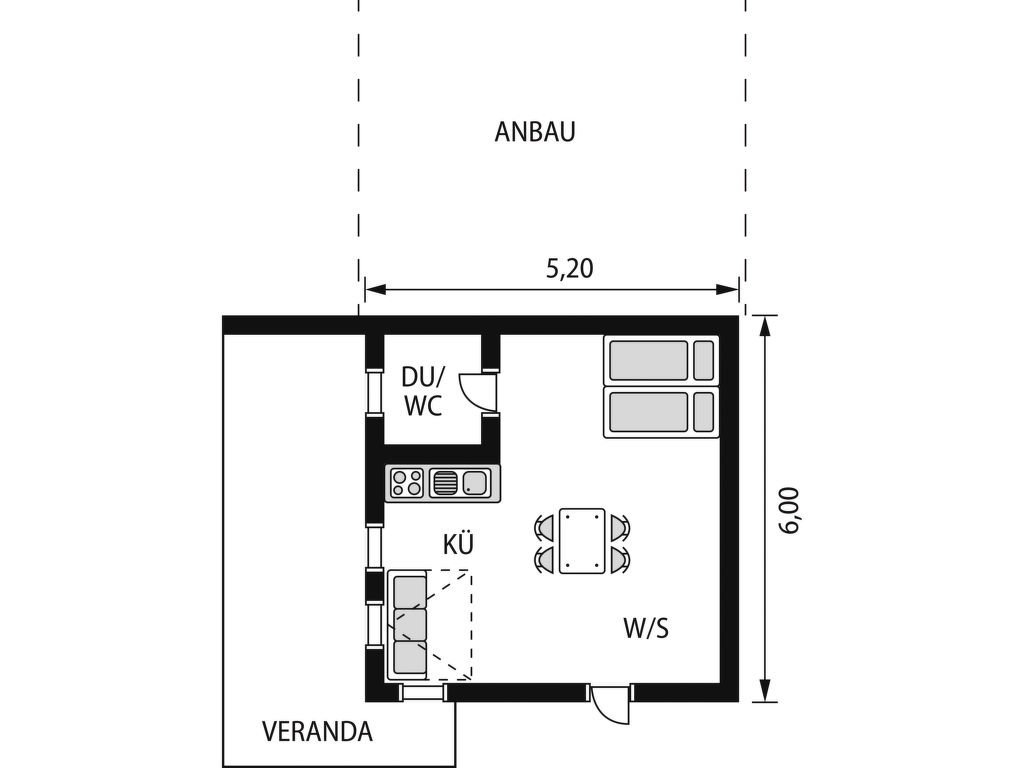 Wohnfläche 30 m². E-Herd 2 Platten, Mikrowelle, Kühlschrank, Kaffeemaschine. Sat-TV (deutsche Programme). Dusche/WC. Elektroheizung. Gefrierschrank (ca. 120 l) zur gemeinsamen Nutzung mit dem Nachbarhaus.