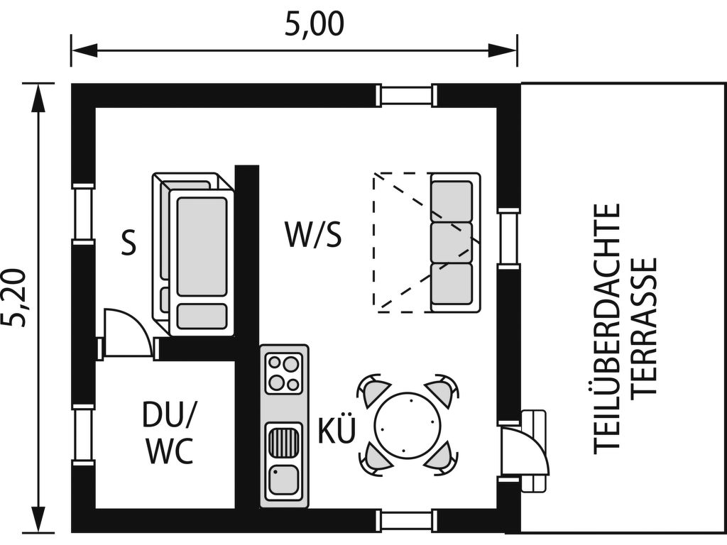 Wohnfläche 26 m². 2 Kochplatten, Mikrowelle, Kühlschrank, Kaffemaschine, Wasserkocher, Toaster. Sat-TV (deutsche Programme). Dusche/WC. Elektroheizung. Zugang zu Waschmaschine beim Besitzer (Absprache), SEK 30 pro Wäsche.