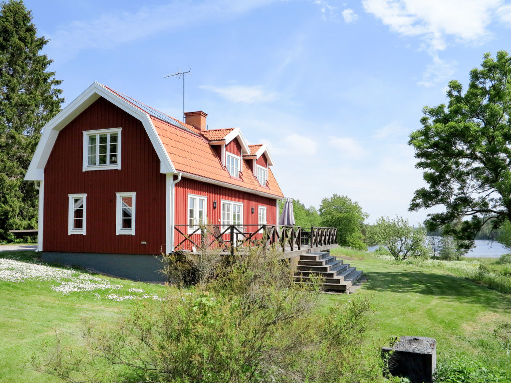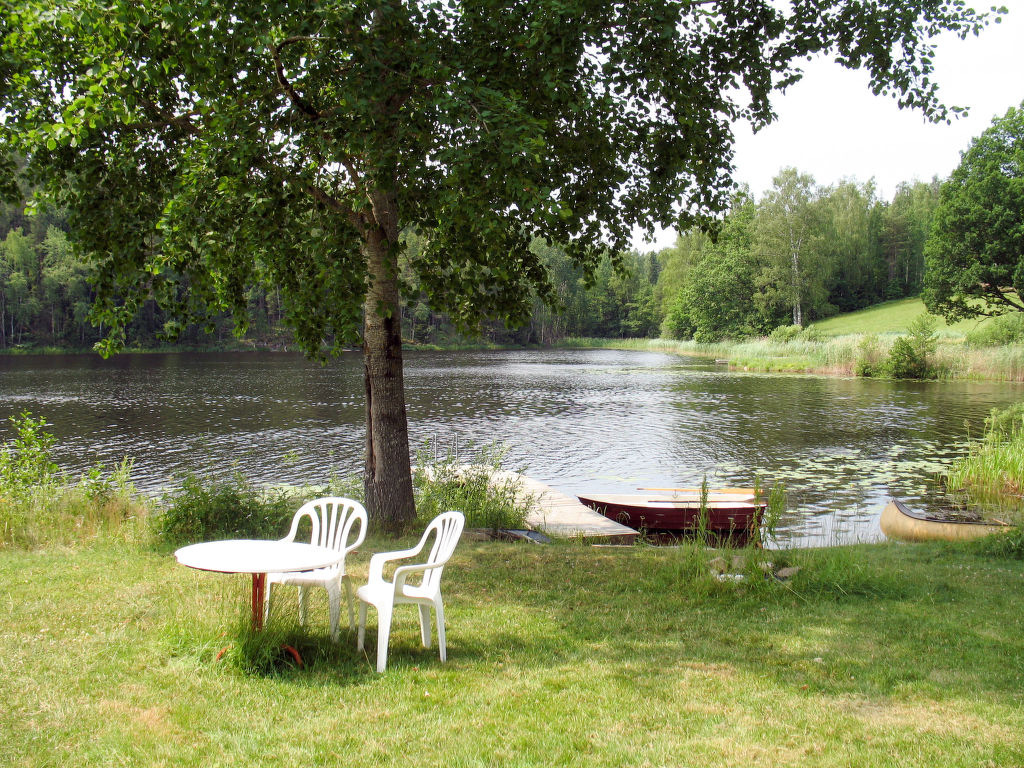Gut ausgestattetes Ferienhaus in idyllischer Lage am See Ytlången. Vimmerby 25 km westlich, das Küstenstädtchen Västervik 45 km nordöstlich. In Hjorted (10 km) Anschluss an einen markierten Wanderweg, der an der stark gegliederten Küste entlang führt. Kaufmann in Totebo (2 km), hier auch größerer Sandbadestrand mit Badesteg. Am privaten, ca. 50 m entfernten Steg Ruderboot vorhanden, gute Angelmöglichkeiten, der Weg zum See kann über eine Weide führen. Baden hier für Schwimmer möglich. Kleiner, flach abfallender Badeplatz ca. 100 m. Das gut und gemütlich eingerichtete Haus mit kleinem Gästehaus steht ländlich, ohne nähere Nachbarn (ab ca. 300 m), auf einem etwa 3000 m² großen Wiesengrundstück. Leicht erhöhte Lage mit schönem Blick über den See. Große Süd-Veranda, zwei Freisitze, Gartenmöbel, gemauerter Grill. Parken am Haus.