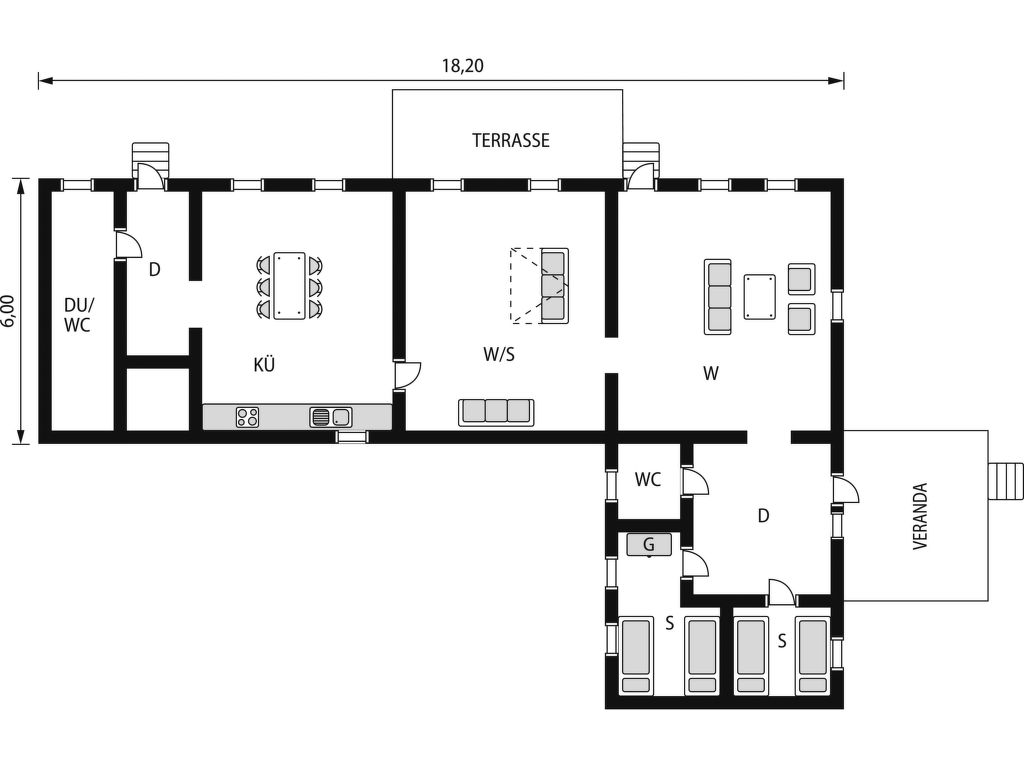 Wohnfläche 120 m². 4 Ceranfelder, Backofen, Mikrowelle, Geschirrspüler, Kühlschrank, Gefrierschrank (ca. 90 l), Kaffeemaschine, Wasserkocher, Toaster, Waschmaschine, Trockner. Sat-TV (deutsche Programme), CD, Internetzugang (WLAN, inklusive). Dusche/WC. Separates WC. Wärmepumpenheizung, im Bad Fußbodenheizung.