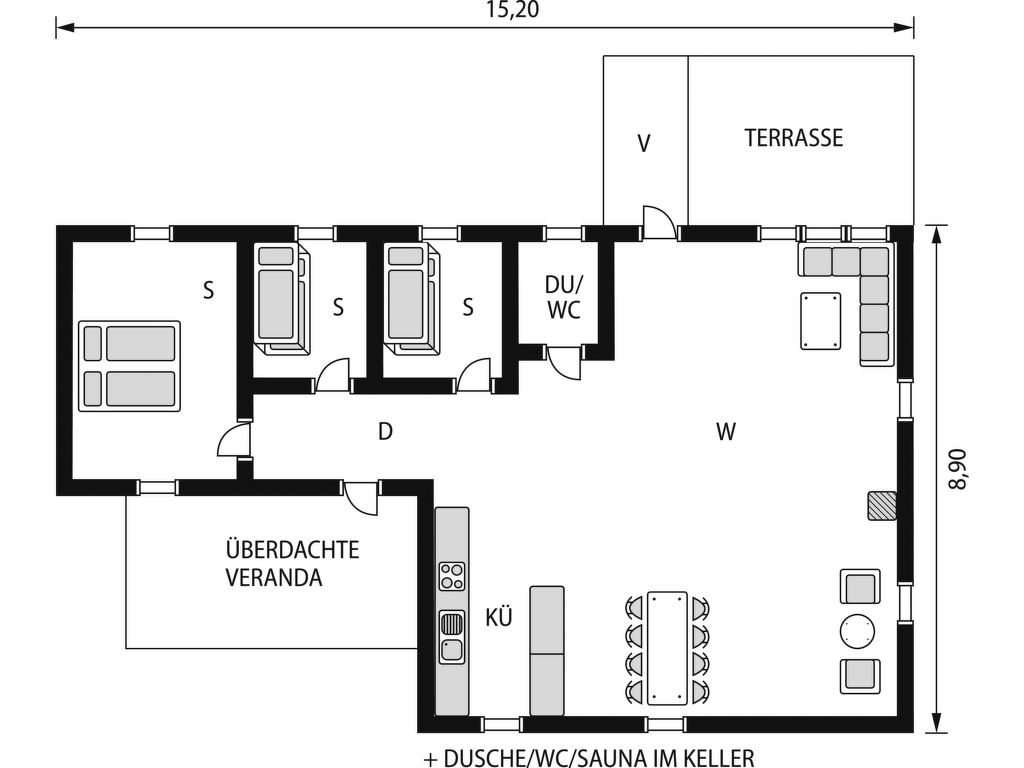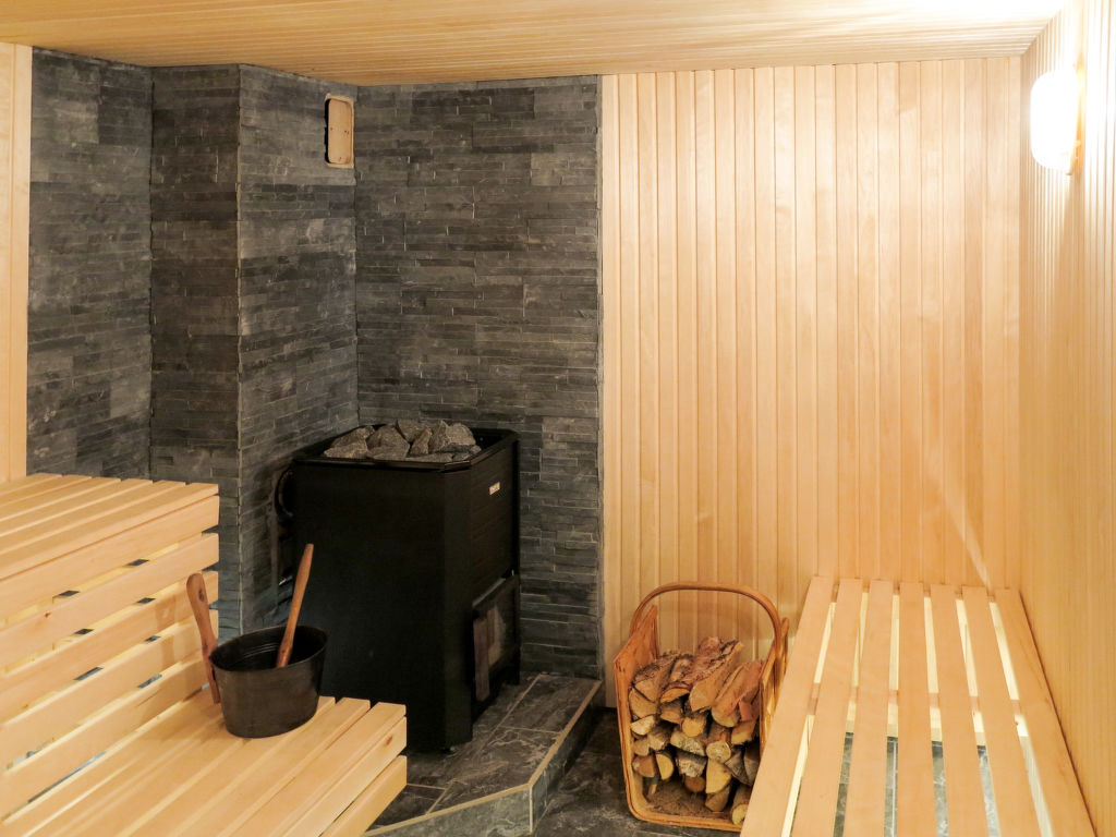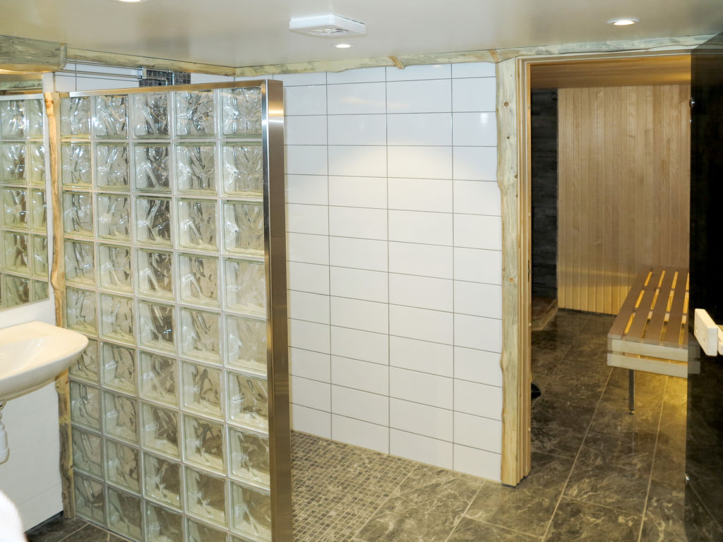 Wohnfläche 100 m². E-Herd 4 Platten, Backofen, Mikrowelle, Geschirrspüler, Kühlschrank, Gefrierschrank (ca. 90 l), Kaffeemaschine, Wasserkocher, Toaster, Waschmaschine. Sat-TV, (deutsche Programme), DVD. Dusche/WC. Im Keller Dusche/WC/Sauna (Holzfeuerung). Elektroheizung, Kamin mit Einsatz. Ferienhaus HJD 058 ca. 20 m entfernt.