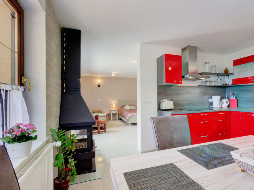 "Apartment Grilc I", 2-Zimmer-Wohnung 70 m2, im Erdgeschoss. Komfortabel eingerichtet: Wohn-/Schlafzimmer mit 1 Doppelbett und Kabel-TV (Flachbildschirm). Ausgang zum Balkon. 1 Zimmer mit 1 x 2 Etagenbetten. Küche (Backofen, Geschirrspüler, 4 Glaskeramikherd Platten, Tiefkühler) mit Esstisch. Dusche/WC. E-Heizung. Balkon 18 m2. Terrassenmöbel. Sicht auf die Landschaft und das Städtchen. Zur Verfügung: Internet (Wireless LAN).