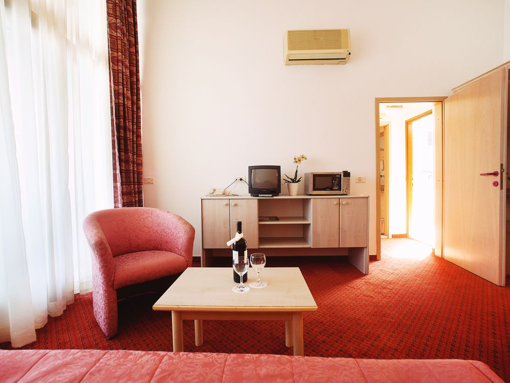 Kinderfreundliche, schöne, komfortable Residenz "Hotel Vile Park", renoviert im Jahre 2006. Am Ortsrand, belebte Lage. Zur Mitbenutzung: Grundstück 1'000 m2, Schwimmbad (saisonale Verfügbarkeit: 15.Jun.-15.Sep.). Aussendusche, Kinderspielplatz. Im Hause: Empfang, Klimaanlage. Parkplatz beim Haus. Einkaufsgeschäft 1.5 km, Lebensmittelgeschäft 700 m, Supermarkt 1.1 km, Restaurant 100 m, Bushaltestelle 300 m, Felsstrand 50 m, Freibad 200 m, Hallenbad 350 m, Badebucht 50 m.