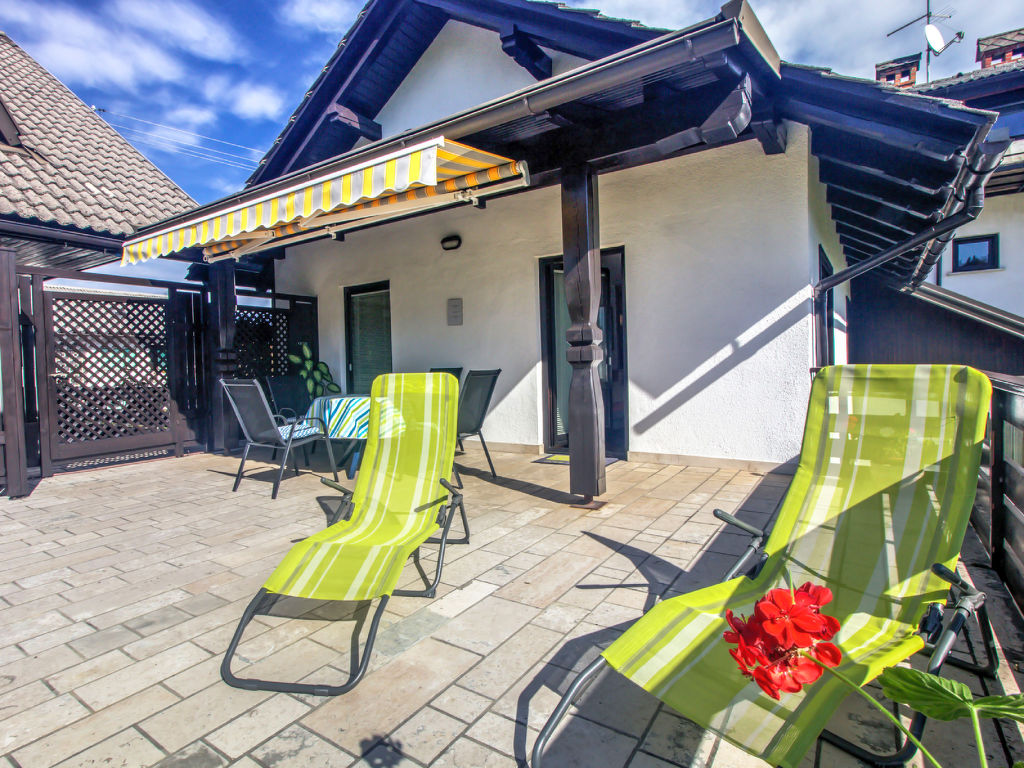 Schönes, alleinstehendes, komfortables Haus "Orazem", Baujahr 1989, renoviert im Jahre 1996. Am Ortsrand, ruhige, sonnige Lage, 900 m vom See, 2.2 km vom Strand, 33 km vom Skigebiet, an einer Strasse. Zur Mitbenutzung: Garten 150 m2 (eingezäunt). Im Hause: Zentralheizung. Parkplatz beim Haus. Einkaufsgeschäft 400 m, Supermarkt 900 m, Restaurant, Bushaltestelle 400 m, Bahnstation 4 km, Freibad 1.5 km, Hallenbad 900 m, Badebucht 3.7 km. Golfplatz 3.5 km, Tennis 3.7 km, Luftseilbahn 31 km. Bekannte Seen in der Umgebung sind gut erreichbar: Lake Bled 900 m.