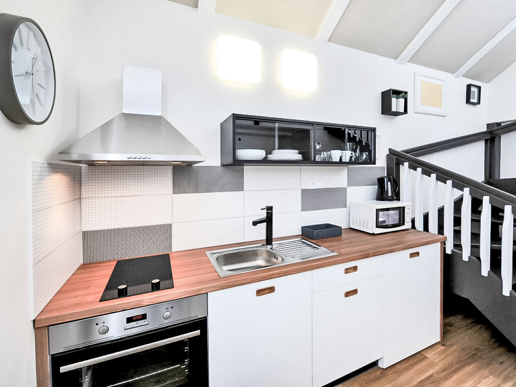 "Beatrice", 2-Zimmer-Wohnung 25 m2. Geräumig und hell, schön und stilvoll eingerichtet: Wohn-/Esszimmer mit 1 Doppeldiwanbett und Sat-TV. 1 Zimmer mit 1 Doppelbett. Kochnische (Backofen, 2 Glaskeramikherd Platten). Dusche, sep. WC. Zur Verfügung: Haartrockner. Internet (Wireless LAN, gratis). Bitte beachten: Nichtraucher-Haus.