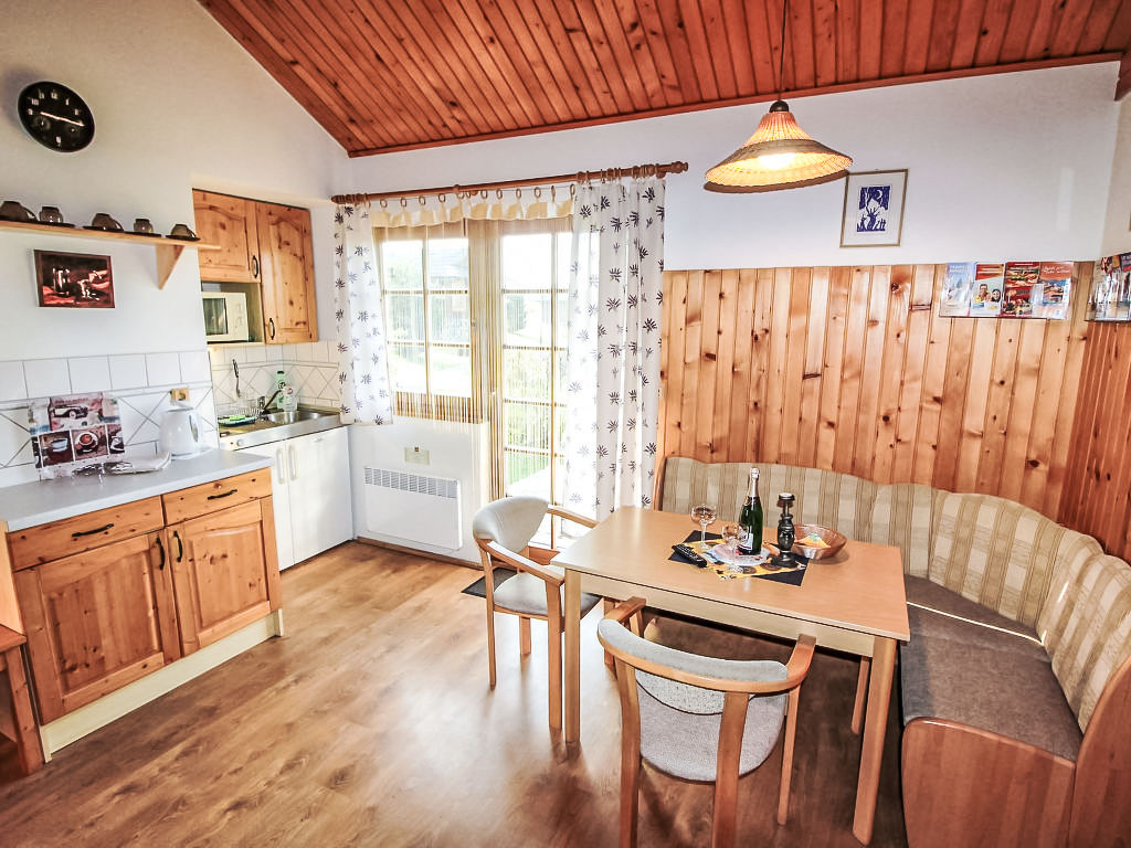 "Chalet 110", 2-Zimmer-Chalet. Geräumig und hell, sehr zweckmässig und komfortabel eingerichtet: Eingang. Offenes grosses Wohn-/Schlafzimmer mit 1 Doppeldiwanbett, Esstisch, Küchenblock, Sat-TV, Radio und Stereoanlage. Ausgang zur Terrasse. 1 abgeschrägtes Doppelzimmer mit 1 Bett. Kochnische (2 Kochplatten, Wasserkocher, Mikrowelle, Tiefkühler, elektrische Kaffeemaschine). Dusche/WC. Zur Verfügung: Internet (Wireless LAN, gratis).