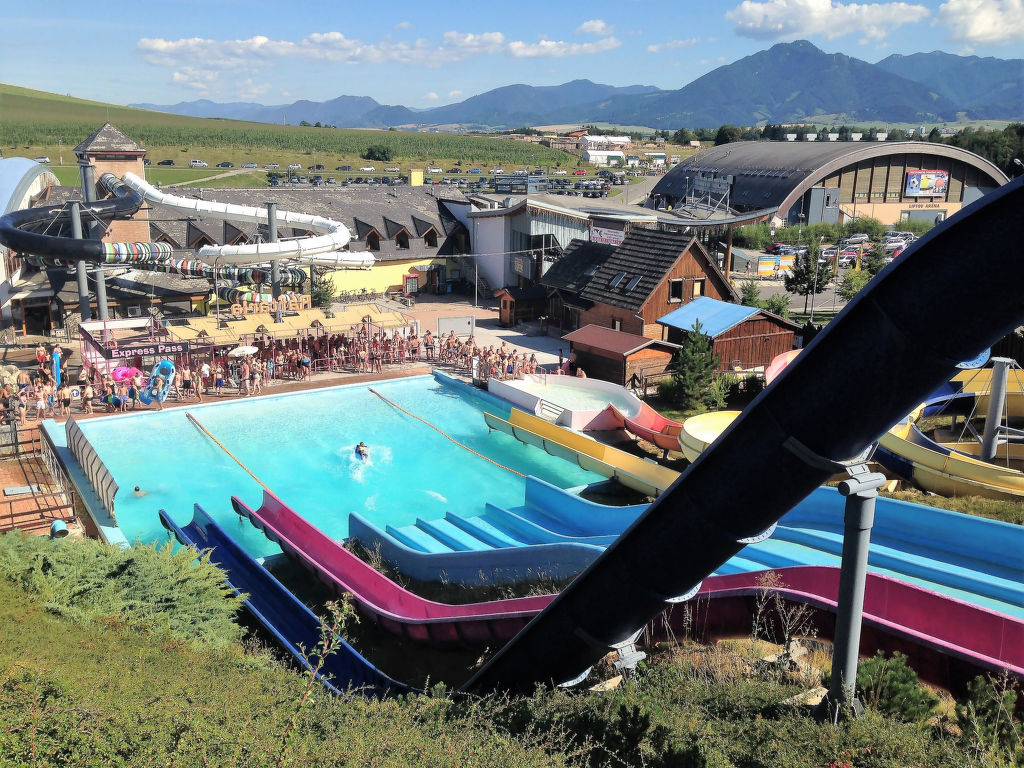Liptovská Ondrašová 3 km von Liptovský Mikuláš: Kinderfreundliche, gemütliche, rustikale Feriensiedlung "Liptovská dedina". Aquapark Tatralandia, am Ortsrand, 4 km vom Zentrum von Liptovský Mikuláš, sonnige Lage, 3 km vom See, 1.4 km von der Lagune. Zur Mitbenutzung: Grundstück 7 ha, Wiese. Kinderbecken, Tennis, Basketball, Grill, Feuerstelle, Kinderspielplatz. In der Anlage: Empfang, Restaurant, Aufenthaltsraum, Kegelbahn, Billard, Tischfussball, Fahrradverleih. Parkplatz beim Haus. Einkaufsgeschäft, Lebensmittelgeschäft 900 m, Supermarkt 4.2 km, Restaurant, Bushaltestelle 100 m, Bahnstation 4 km, Freibad, Hallenbad 700 m, Thermalbad "Tatralandia" 700 m, Badebucht 1.4 km, Badesee "Liptovská Mara" 3.1 km. Reitstall 7.1 km, Sportzentrum 270 m, Radweg 5 km, Luftseilbahn 19 km, Skiverleih 4 km, Skischule 19 km, Kinderskischule 19 km, Schlittelbahn 19 km, Langlaufloipe 18 km, Eisfeld 7.1 km, Kinderspielplatz 10 m. Nahe gelegene Sehenswürdigkeiten: Aquapark Tatralandia 1.5 km, Zoo 500 m, Tatrapolis 260 m, Hurricane Factory 270 m, Aquapark Bešeňová 18 km. Bekannte Skigebiete sind gut erreichbar: Jasná 19 km. Bitte beachten: geeignet für Familien. Der gratis Skibus fährt zum Skigebiet Jasná / Chopok. Bitte beachten: Das Foto ist nur ein Hausbeispiel. Alle Häuser/Wohnungen sind individuell eingerichtet. In dieser Anlage zusätzlich mietbar: 3 Chalets. Die Gäste können 20% Rabatt auf den Eintritt in den Aquapark Tatralandia erhalten.