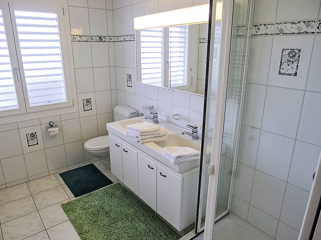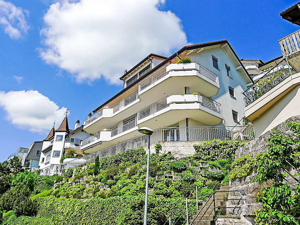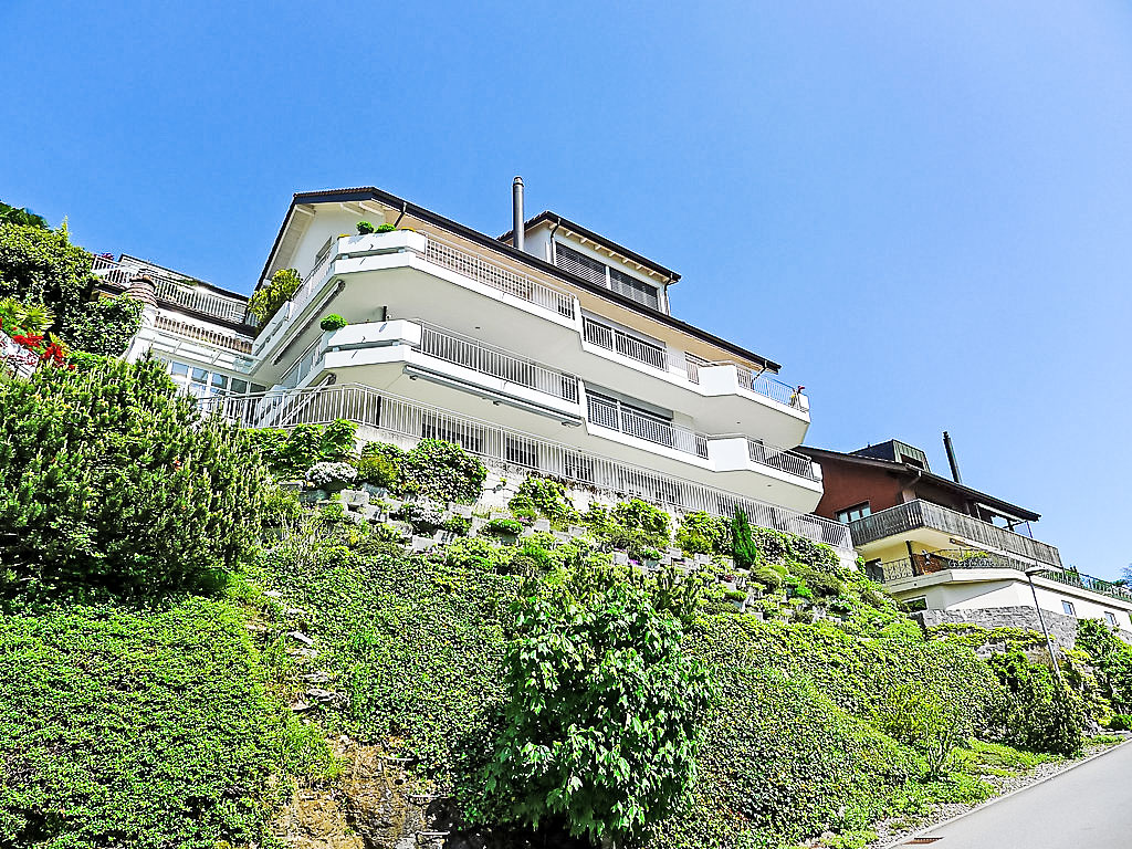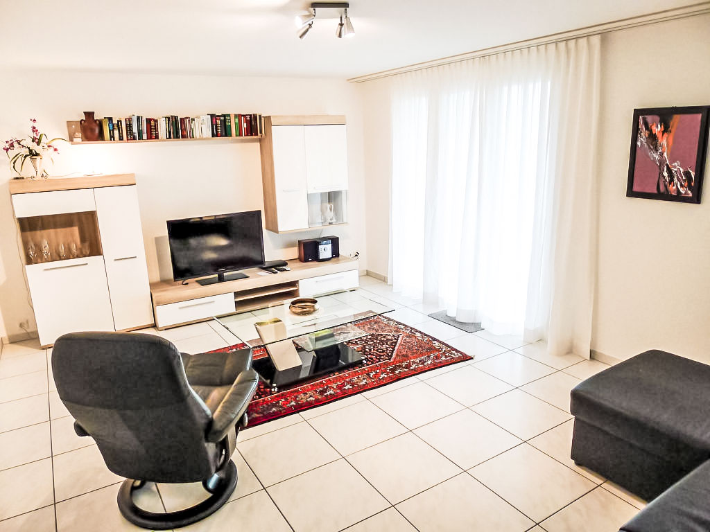 2-Zimmer-Wohnung 45 m2 im 1. Stock. Teilweise renoviert im Jahre 2012, komfortabel und schön eingerichtet: Wohnzimmer mit Kabel-TV (Flachbildschirm), Stereoanlage. 1 Doppelzimmer mit 1 Doppelbett. Kochnische (Backofen, Geschirrspüler, 2 Glaskeramikherd Platten, elektrische Kaffeemaschine) mit Esstisch. Ausgang zur Terrasse. Dusche/WC. Grosse Terrasse. Terrassenmöbel, Gartengrill. Herrliche Panoramasicht auf den See, die Berge und die Ortschaft. Zur Verfügung: Waschmaschine, Wäschetrockner, Bügeleisen. Internet (Wireless LAN, gratis). Bitte beachten: Nichtraucher-Unterkunft.