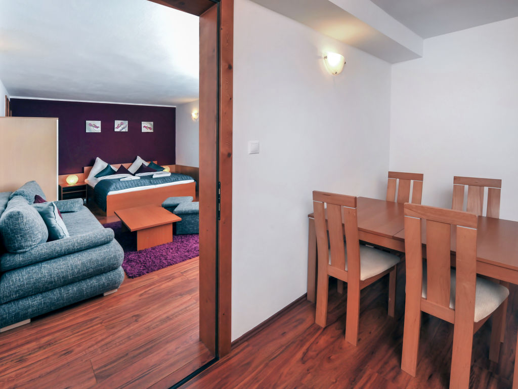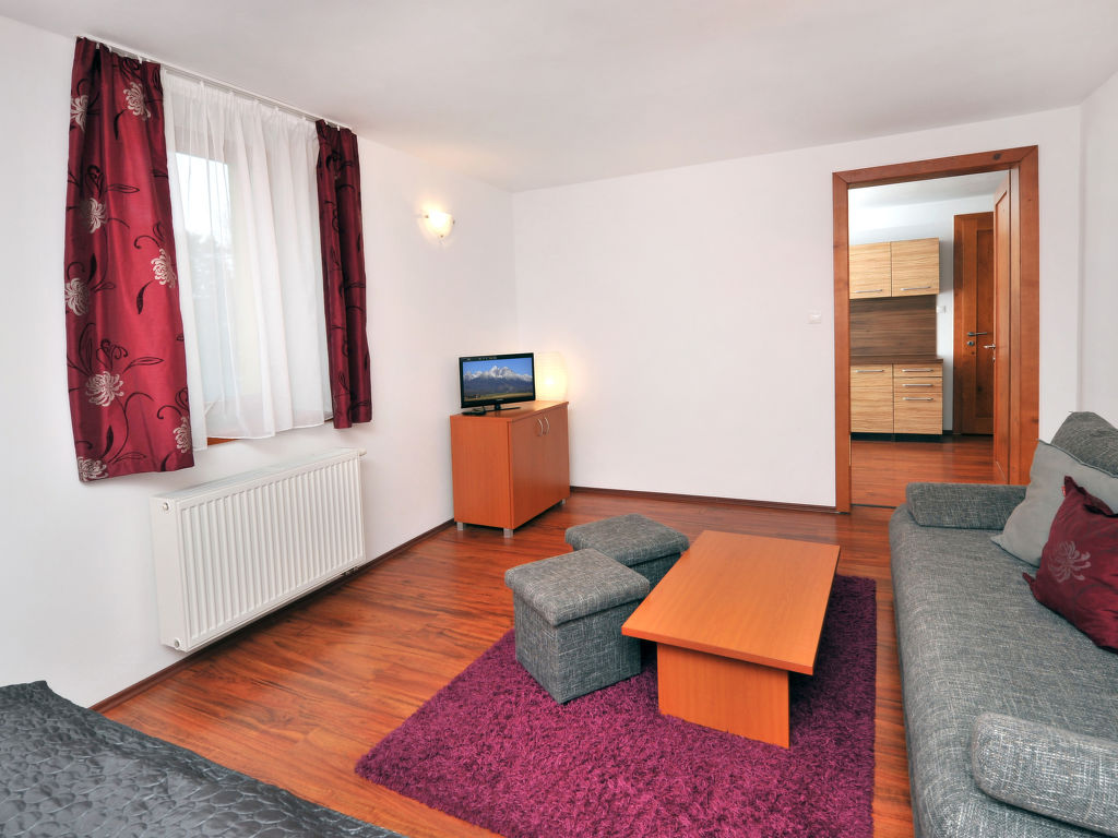 Tatranská Lomnica: Kinderfreundliche, moderne, schöne Residenz "Magnólia". Im Ort, zentrale, sonnige Lage, 10 km vom See, 300 m vom Skigebiet. In der Anlage: Sauna (extra). Wäschewechsel (zusätzlich extra). Handtuchwechsel (zusätzlich extra). Wohnungsreinigung möglich (extra). Frühstück auf Anfrage (extra). Parkplatz beim Haus. Lebensmittelgeschäft, Restaurant 600 m, Café 200 m, Fahrradverleih 800 m, Bahnstation "Tatranská Lomnica" 550 m, Hallenbad 16 km, Thermalbad "AquaCity Poprad" 16 km. Golfplatz 3 km, Tennis 1 km, Wanderwege ab Haus 50 m, Sessellift 1 km, Gondelbahn 1 km, Skipisten 400 m, Skischule 1 km, Langlaufloipe 300 m. Nahe gelegene Sehenswürdigkeiten: Lomnický štít 10 km, Aquacity Poprad 16 km, Belianská jaskyňa 9 km. Bekannte Skigebiete sind gut erreichbar: Tatranská Lomnica 1 km, Starý Smokovec 6 km, Hrebienok 8 km. Bekannte Seen in der Umgebung sind gut erreichbar: Štrbské pleso 21 km. Wandergebiete: Tatranská Lomnica 1 km, Starý Smokovec 6 km. Bitte beachten: Das Foto ist nur ein Wohnungsbeispiel. In diesem Haus sind weitere Ferienwohnungen mietbar. Alle Häuser/Wohnungen sind individuell eingerichtet.