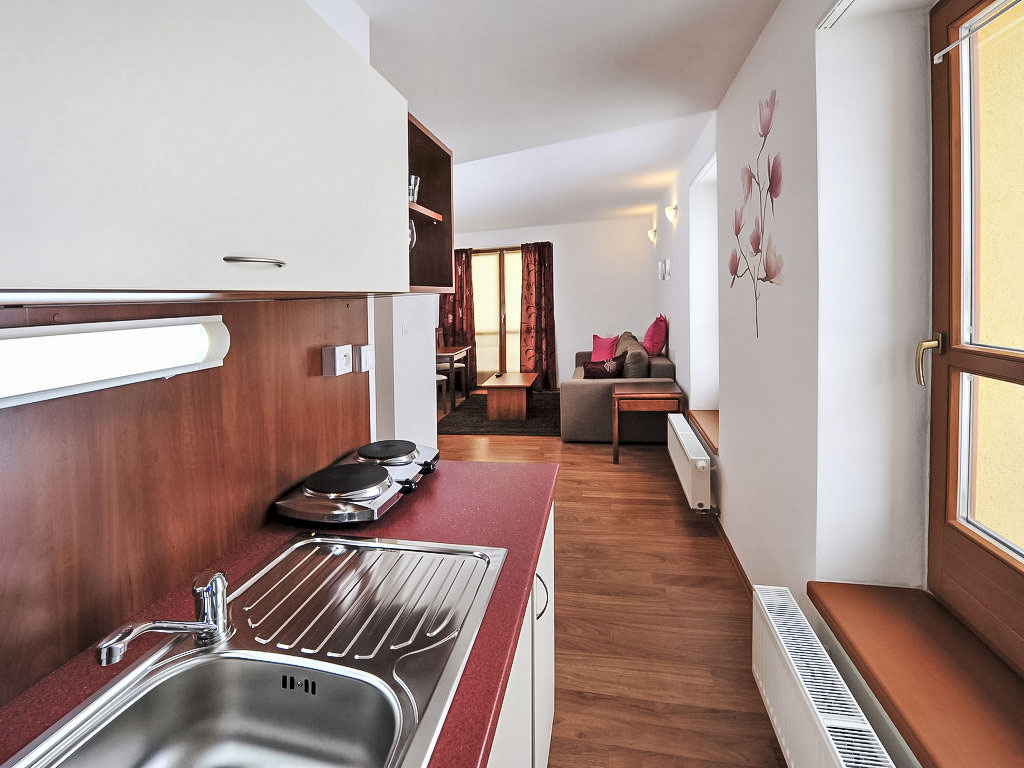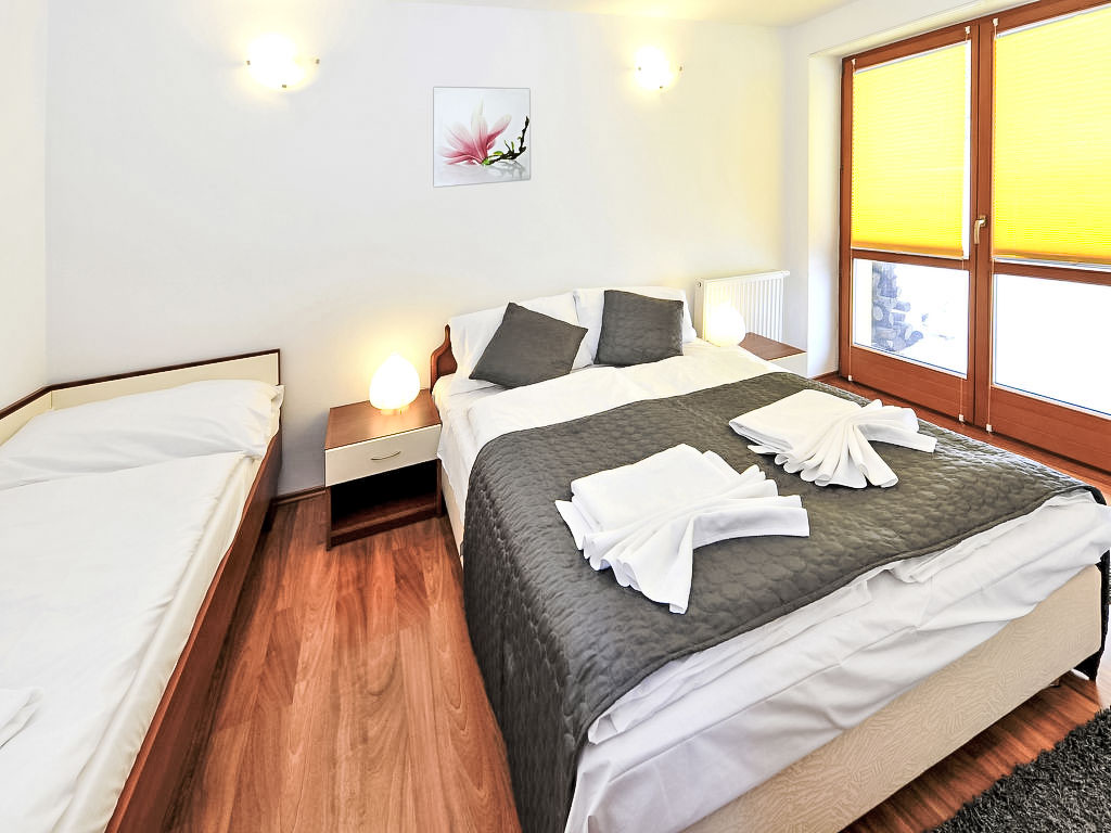 Tatranská Lomnica: Kinderfreundliche, moderne, schöne Residenz "Magnólia". Im Ort, zentrale, sonnige Lage, 10 km vom See, 300 m vom Skigebiet. In der Anlage: Sauna (extra). Wäschewechsel (zusätzlich extra). Handtuchwechsel (zusätzlich extra). Wohnungsreinigung möglich (extra). Frühstück auf Anfrage (extra). Parkplatz beim Haus. Lebensmittelgeschäft, Restaurant 600 m, Café 200 m, Fahrradverleih 800 m, Bahnstation "Tatranská Lomnica" 550 m, Hallenbad 16 km, Thermalbad "AquaCity Poprad" 16 km. Golfplatz 3 km, Tennis 1 km, Wanderwege ab Haus 50 m, Sessellift 1 km, Gondelbahn 1 km, Skipisten 400 m, Skischule 1 km, Langlaufloipe 300 m. Nahe gelegene Sehenswürdigkeiten: Lomnický štít 10 km, Aquacity Poprad 16 km, Belianská jaskyňa 9 km. Bekannte Skigebiete sind gut erreichbar: Tatranská Lomnica 1 km, Starý Smokovec 6 km, Hrebienok 8 km. Bekannte Seen in der Umgebung sind gut erreichbar: Štrbské pleso 21 km. Wandergebiete: Tatranská Lomnica 1 km, Starý Smokovec 6 km. Bitte beachten: Das Foto ist nur ein Wohnungsbeispiel. In diesem Haus sind weitere Ferienwohnungen mietbar. Alle Häuser/Wohnungen sind individuell eingerichtet.