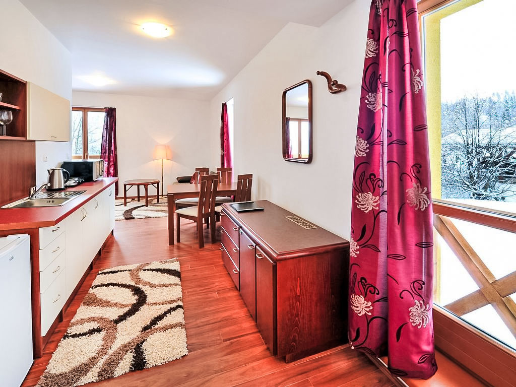Tatranská Lomnica: Kinderfreundliche, moderne, schöne Residenz "Magnólia". Im Ort, zentrale, sonnige Lage, 10 km vom See, 300 m vom Skigebiet. In der Anlage: Sauna (extra). Wäschewechsel (zusätzlich extra). Handtuchwechsel (zusätzlich extra). Wohnungsreinigung möglich (extra). Frühstück auf Anfrage (extra). Parkplatz beim Haus. Lebensmittelgeschäft, Restaurant 600 m, Café 200 m, Fahrradverleih 800 m, Bahnstation "Tatranská Lomnica" 550 m, Hallenbad 16 km, Thermalbad "AquaCity Poprad" 16 km. Golfplatz 3 km, Tennis 1 km, Wanderwege ab Haus 50 m, Sessellift 1 km, Gondelbahn 1 km, Skipisten 400 m, Skischule 1 km, Langlaufloipe 300 m. Nahe gelegene Sehenswürdigkeiten: Lomnický štít 10 km, Aquacity Poprad 16 km, Belianská jaskyňa 9 km. Bekannte Skigebiete sind gut erreichbar: Tatranská Lomnica 1 km, Starý Smokovec 6 km, Hrebienok 8 km. Bekannte Seen in der Umgebung sind gut erreichbar: Štrbské pleso 21 km. Wandergebiete: Tatranská Lomnica 1 km, Starý Smokovec 6 km. Bitte beachten: Das Foto ist nur ein Wohnungsbeispiel. In diesem Haus sind weitere Ferienwohnungen mietbar. Alle Häuser/Wohnungen sind individuell eingerichtet.