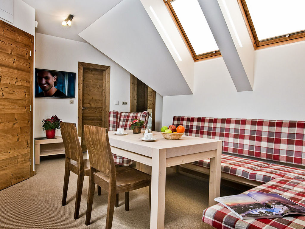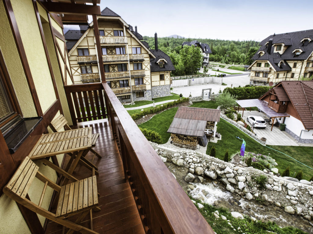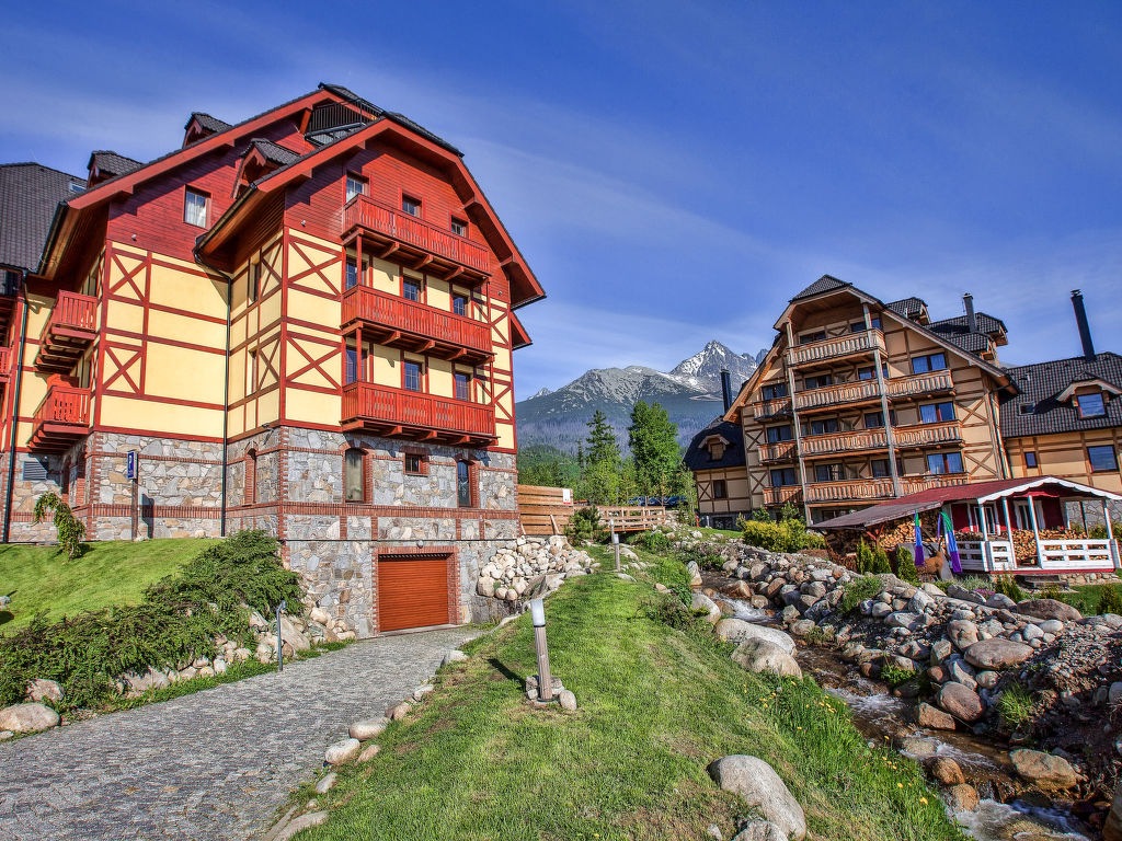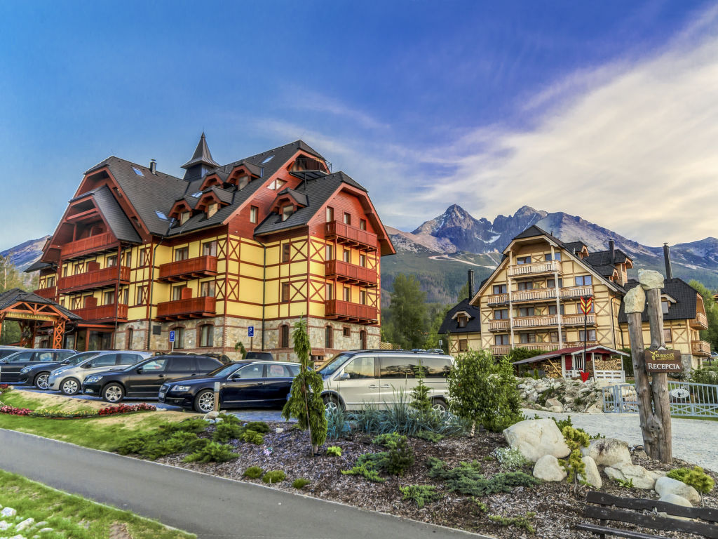 Tatranská Lomnica: Kinderfreundliches, modernes, komfortables Apart-Hotel "Kukučka". Im Ort, zentrale, sonnige Lage, 10 km vom See, 600 m vom Skigebiet. Zur Mitbenutzung: Grundstück. Gartenmöbel, Kinderspielplatz. Im Hause: Empfang, Restaurant, Frühstücksraum, Sauna, Fitnessraum, Dampfbad, Sprudelbad, Ruheraum, Wellnessbereich (alles extra), Spielzimmer. Frühstück (inkl.). Abstellraum vorhanden. Zufahrt bis zum Haus. Parkplatz beim Haus. Lebensmittelgeschäft, Restaurant, Café 300 m, Fahrradverleih 800 m, Bahnstation "Tatranská Lomnica" 600 m, Hallenbad 16 km, Thermalbad "Aquacity Poprad" 16 km. Golfplatz 3 km, Tennis 1 km, Wanderwege ab Haus 50 m, Sessellift 1 km, Gondelbahn 1 km, Skipisten 400 m, Skischule 1 km, Langlaufloipe 300 m. Nahe gelegene Sehenswürdigkeiten: Lomnický štít 10 km, Aquacity Poprad 16 km, Belianská jaskyňa 9 km. Bekannte Skigebiete sind gut erreichbar: Tatranská Lomnica 1 km, Starý Smokovec 6 km, Hrebienok 8 km. Bekannte Seen in der Umgebung sind gut erreichbar: Štrbské pleso 21 km. Wandergebiete: Tatranská Lomnica 1 km, Starý Smokovec 6 km. Bitte beachten: Das Foto ist nur ein Wohnungsbeispiel. In diesem Haus sind weitere Ferienwohnungen mietbar. Alle Häuser/Wohnungen sind individuell eingerichtet. Bei Aufenthalten von mehr als 3 Nächten steht Ihnen 1x 2 Stunden lang ein kostenloser Wellnesszugang zur Verfügung.