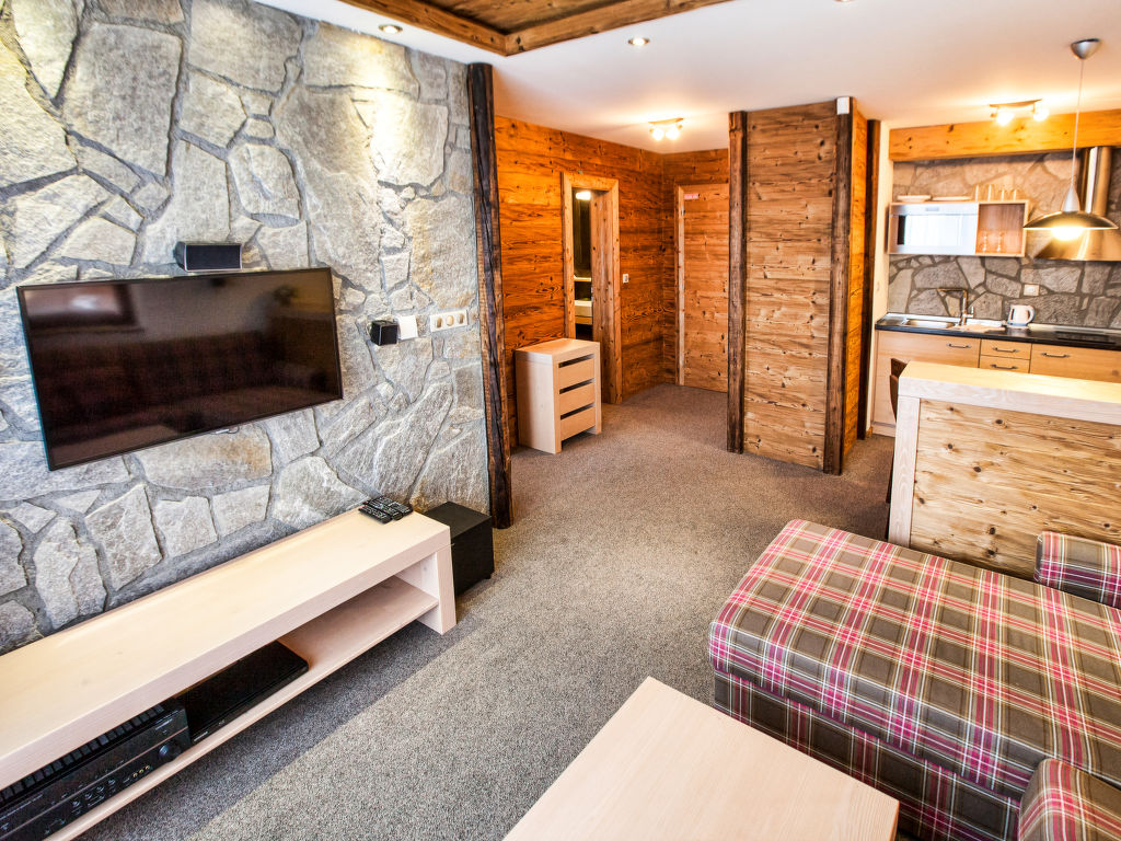 Tatranská Lomnica: Kinderfreundliche, moderne, komfortable Residenz "Kukučka". Im Ort, zentrale, sonnige Lage, 10 km vom See, 600 m vom Skigebiet. Zur Mitbenutzung: Grundstück. Gartenmöbel, Kinderspielplatz. In der Anlage: Empfang, Restaurant, Frühstücksraum, Sauna, Fitnessraum, Dampfbad, Sprudelbad, Ruheraum, Wellnessbereich (alles extra), Spielzimmer. Frühstück (inkl.). Abstellraum vorhanden. Zufahrt bis zum Haus. Parkplatz beim Haus. Lebensmittelgeschäft, Restaurant, Café 300 m, Fahrradverleih 800 m, Bahnstation "Tatranská Lomnica" 600 m, Hallenbad 16 km, Thermalbad "Aquacity Poprad" 16 km. Golfplatz 3 km, Tennis 1 km, Wanderwege ab Haus 50 m, Sessellift 1 km, Gondelbahn 1 km, Skipisten 400 m, Skischule 1 km, Langlaufloipe 300 m. Nahe gelegene Sehenswürdigkeiten: Lomnický štít 10 km, Aquacity Poprad 16 km, Belianská jaskyňa 9 km. Bekannte Skigebiete sind gut erreichbar: Tatranská Lomnica 1 km, Starý Smokovec 6 km, Hrebienok 8 km. Bekannte Seen in der Umgebung sind gut erreichbar: Štrbské pleso 21 km. Wandergebiete: Tatranská Lomnica 1 km, Starý Smokovec 6 km. Bitte beachten: Das Foto ist nur ein Wohnungsbeispiel. In diesem Haus sind weitere Ferienwohnungen mietbar. Alle Häuser/Wohnungen sind individuell eingerichtet. Bei einem Aufenthalt von mehr als 3 Nächten steht Ihnen 1x 2 Stunden lang ein kostenloser Wellnesszugang zur Verfügung.