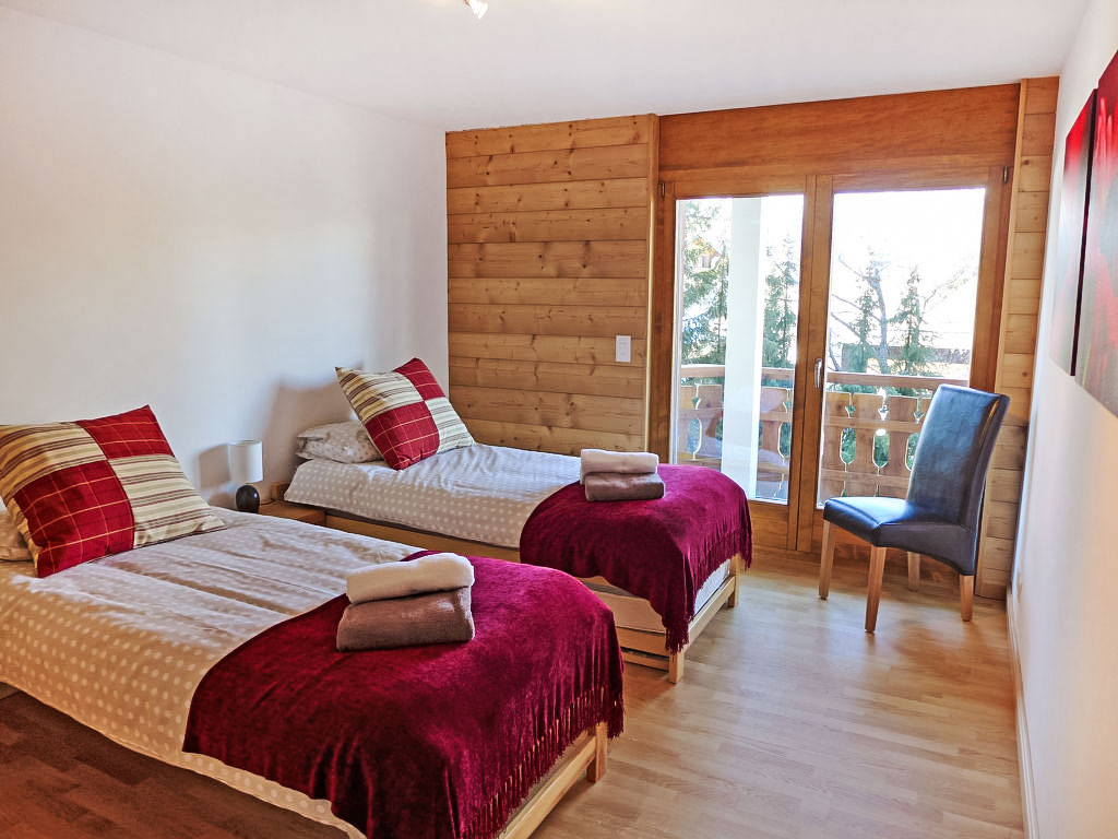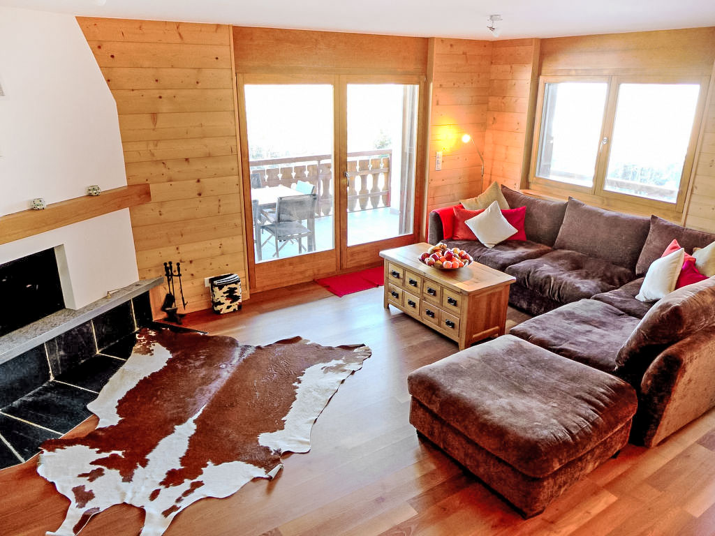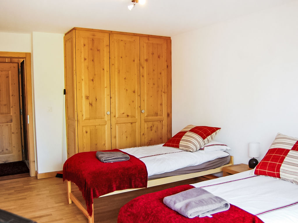 "Les Cimes Blanches B 201", 4-Zimmer-Wohnung 100 m2. Komfortabel und geschmackvoll eingerichtet: Wohn-/Esszimmer mit offenem Kamin, Kabel-TV und DVD. Ausgang zum Balkon, Richtung Norden und Richtung Osten. 1 Zimmer mit 2 Betten (90 cm, Länge 200 cm). Ausgang zum Balkon, Richtung Norden. 1 Zimmer mit 1 franz. Bett (160 cm), Bad/WC. Ausgang zum Balkon, Richtung Osten. 1 Zimmer mit 1 x 2 Etagenbetten (90 cm, Länge 190 cm). Ausgang zum Balkon, Richtung Süden. Offene Küche (Backofen, Geschirrspüler, 4 Glaskeramikherd Platten, Tiefkühler, elektrische Kaffeemaschine, Kapseln für die Kaffeemaschine (Nespresso) extra, Racletteofen, Fondue Set (Käse)). Dusche/WC. Balkonmöbel. Eingeschränkte Sicht auf die Berge. Zur Verfügung: Waschmaschine, Wäschetrockner, Kinderhochstuhl, Babybett, Haartrockner. Internet (Wireless LAN, gratis). Garage Nr. 201, Höhe 200 cm, Breite 230 cm. Bitte beachten: Nichtraucher-Haus.