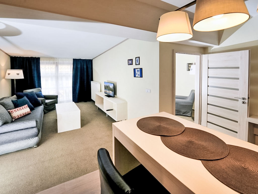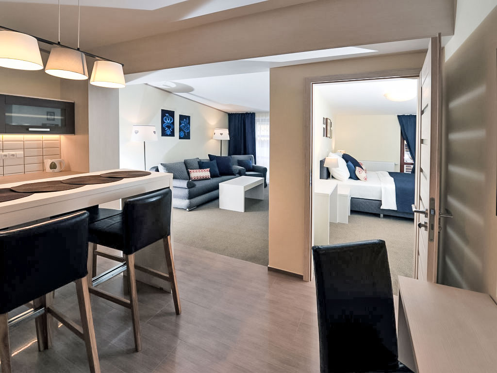 Starý Smokovec: Kinderfreundliches, modernes Mehrfamilienhaus. Im Ort Starý Smokovec, 2 km vom Skigebiet. In der Anlage: Empfang, Restaurant. Wäschewechsel (zusätzlich extra). Handtuchwechsel (zusätzlich extra). Wohnungsreinigung möglich (extra). Frühstück (inkl.). Parkplatz (extra) beim Haus. Lebensmittelgeschäft 2 km, Supermarkt 50 m, Café 200 m, Bushaltestelle 300 m, Bahnstation "Starý Smokovec" 450 m. Golfplatz 10 km, Tennis 4 km, Luftseilbahn 200 m, Skilift 2 km, Skischule 2 km, Schlittelbahn 2 km, Eisfeld 4 km. Nahe gelegene Sehenswürdigkeiten: AquaCity Poprad 16 km, Lomnický štít 9 km. Bekannte Skigebiete sind gut erreichbar: Hrebienok 2 km, Jamy-Tatranská Lomnica 4 km. Bekannte Seen in der Umgebung sind gut erreichbar: Štrbské Pleso 17 km. Wandergebiete: Starý Smokovec 2 km, Tatranská Lomnica 5 km. Bitte beachten: In diesem Haus sind weitere Ferienwohnungen mietbar.