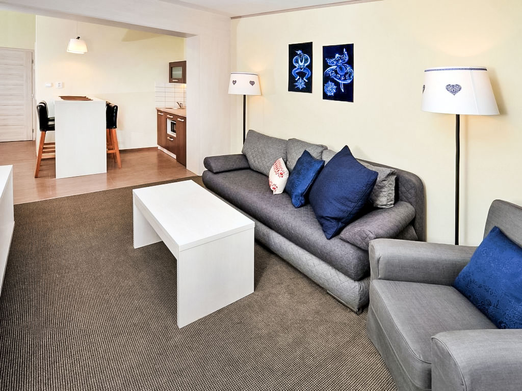 "Kamzík", 2-Zimmer-Wohnung 35 m2. Wohnzimmer mit 1 Doppeldiwanbett, Esstisch und Sat-TV. 1 Zimmer mit 1 Doppelbett. Kochnische (2 Kochplatten, Mikrowelle). Dusche/WC. Zur Verfügung: Kinderhochstuhl, Babybett. Internet (Wireless LAN, gratis). Bitte beachten: geeignet für Familien. Nichtraucher-Unterkunft.