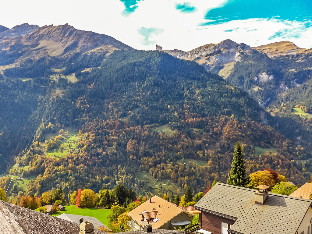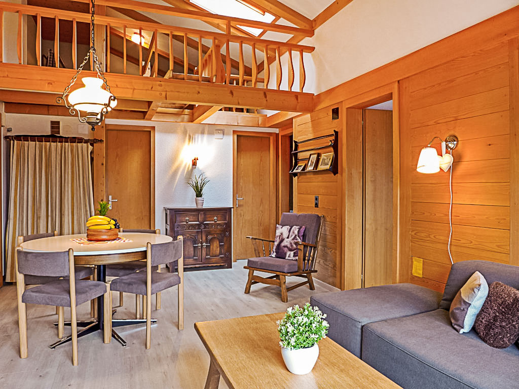 "Apt. P", 3-Zimmer-Attikawohnung 50 m2. Hell, teilweise abgeschrägt, komfortabel und gemütlich eingerichtet: Wohn-/Esszimmer mit offenem Kamin und TV. 1 Zimmer mit 1 Doppelbett (2 x 90 cm, Länge 200 cm). 1 Zimmer mit 2 Betten (90 cm, Länge 200 cm). Kleine Küche (4 Kochplatten, Backofen, Toaster, Wasserkocher, elektrische Kaffeemaschine, Kapseln für die Kaffeemaschine (Nespresso) extra, Fondue Set (Käse)). Dusche/WC. Balkon. Herrliche Panoramasicht auf die Berge und das Tal. Zur Verfügung: Haartrockner, Holz (extra). Internet (Wireless LAN, gratis). Bitte beachten: Nichtraucher-Unterkunft.