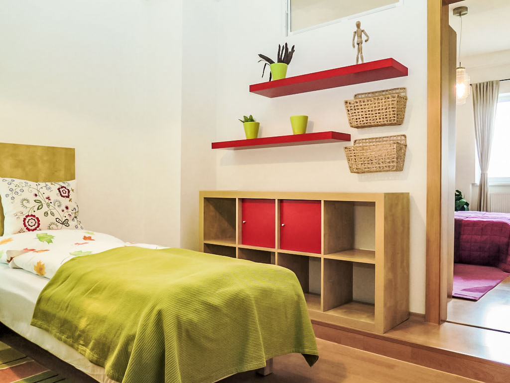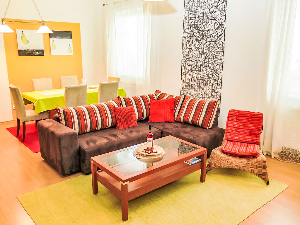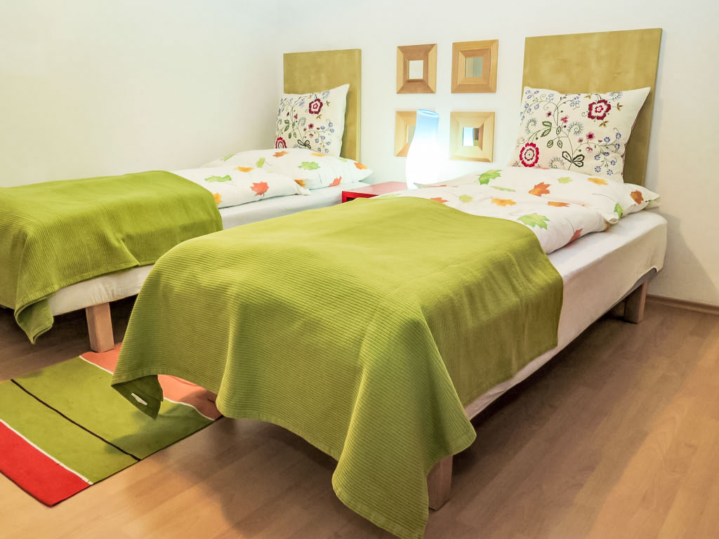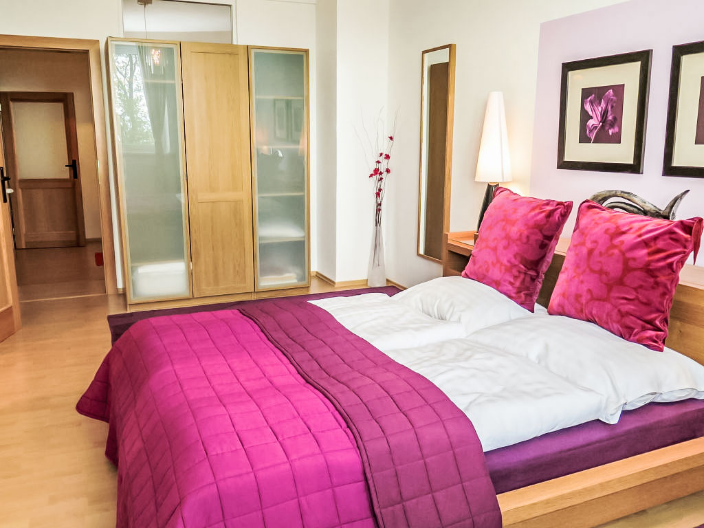 3-Zimmer-Wohnung 86 m2 im 1. Stock. Geräumig und hell, sehr schön und modern eingerichtet: Eingang. Wohn-/Esszimmer mit 1 Doppeldiwanbett, Esstisch und Sat-TV (Flachbildschirm). 1 Zimmer mit 1 Doppelbett. 1 Zimmer mit 2 Betten. Kochnische (Backofen, Geschirrspüler, 4 Glaskeramikherd Platten, Wasserkocher, Mikrowelle, Tiefkühler). Bad/Dusche, sep. WC. Schöne, auf das Tal. Zur Verfügung: Waschmaschine. Internet (Wireless LAN, gratis). Bitte beachten: Nichtraucher-Unterkunft.