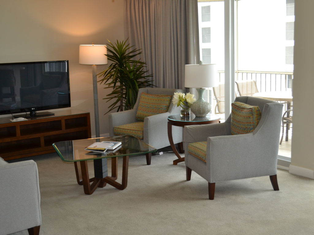 4-Zimmer-Wohnung 172 m2. Sehr schön eingerichtet: grosses Wohn-/Esszimmer mit 1 Doppeldiwanbett, Bar, Kabel-TV und DVD. 1 Zimmer mit 1 franz. Bett (200 cm), Dusche/WC und Kabel-TV. 2 Zimmer, jedes Zimmer mit 1 franz. Bett (180 cm), Kabel-TV. Küche (Backofen, Geschirrspüler, Mikrowelle, Tiefkühler) mit Esstisch. Bad/WC. Klimaanlage. 2 Balkone. Zur Verfügung: Waschmaschine, Wäschetrockner, Telefon. Internet (Wireless LAN, gratis). Hinweis: Nur 6 Erwachsene gestattet. Das dritte Schlafzimmer kann mit 2 Twin-Betten (Einzelbetten) ausgestattet sein.