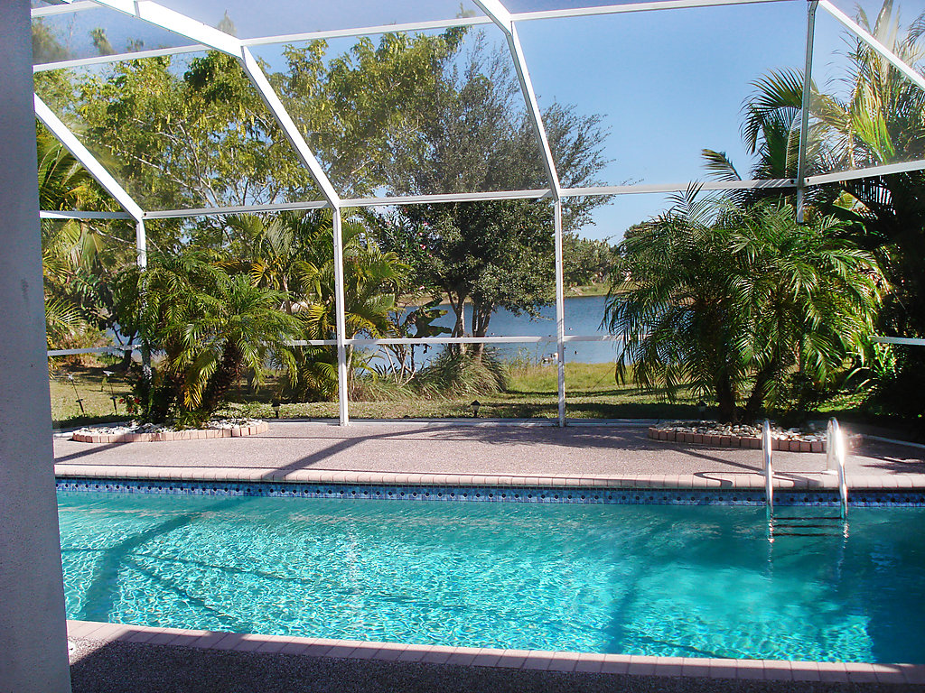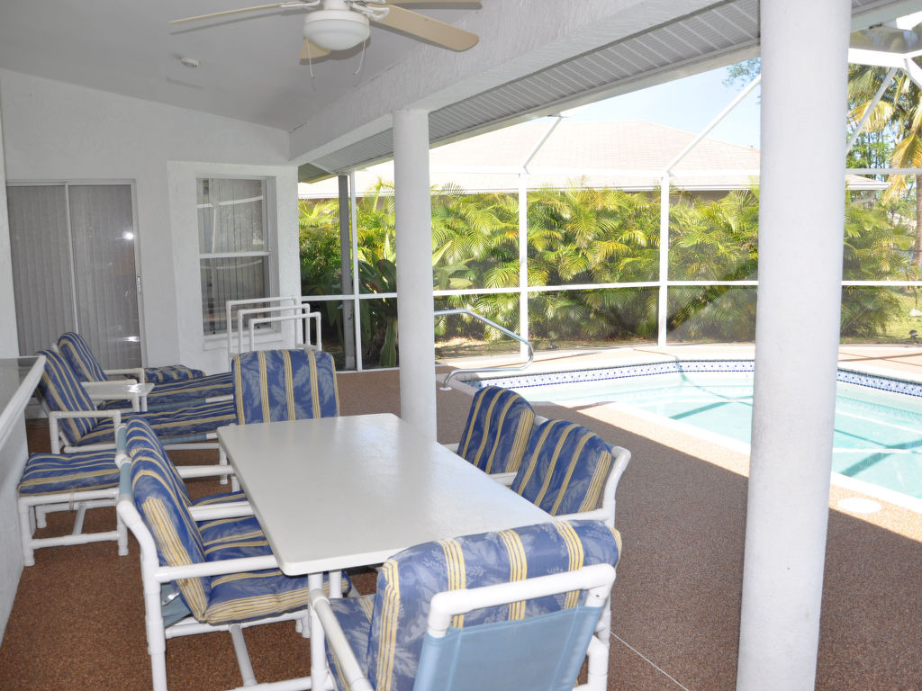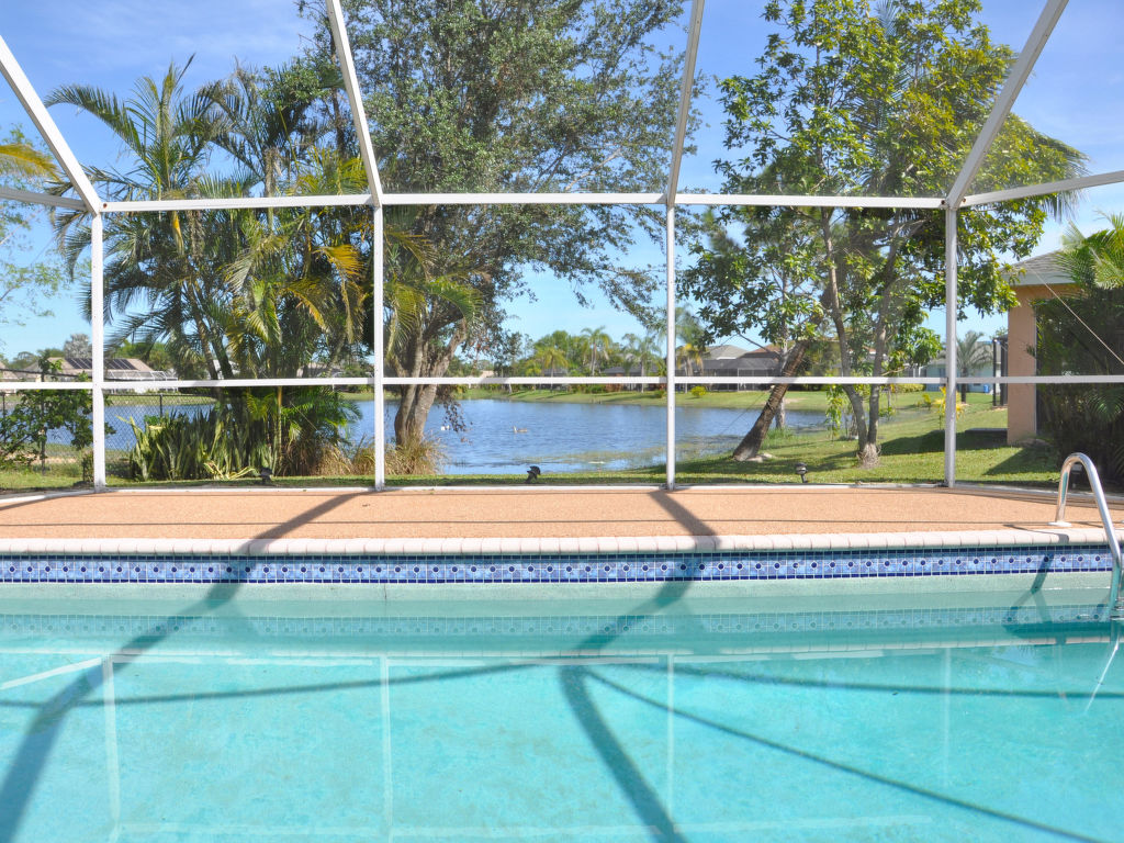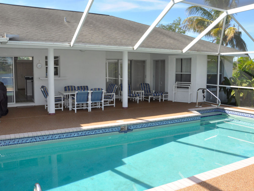 Bonita Springs: Die Villa befindet sich in einer Wohnsiedlung mit einem Naturgarten mit Zypressen und drei künstlichen Seen. Schöne Villa "Bonita". Am Ortsrand, ruhige, sonnige Lage, direkt am See. Zur Alleinbenutzung: Schwimmbad (12 x 4 m) mit Innentreppe. Terrasse, Gartenmöbel, Grill. Einzelgarage. Einkaufsgeschäft 4 km, Lebensmittelgeschäft 4 km, Restaurant 4 km, Sandstrand 12 km. Golfplatz 5 km.