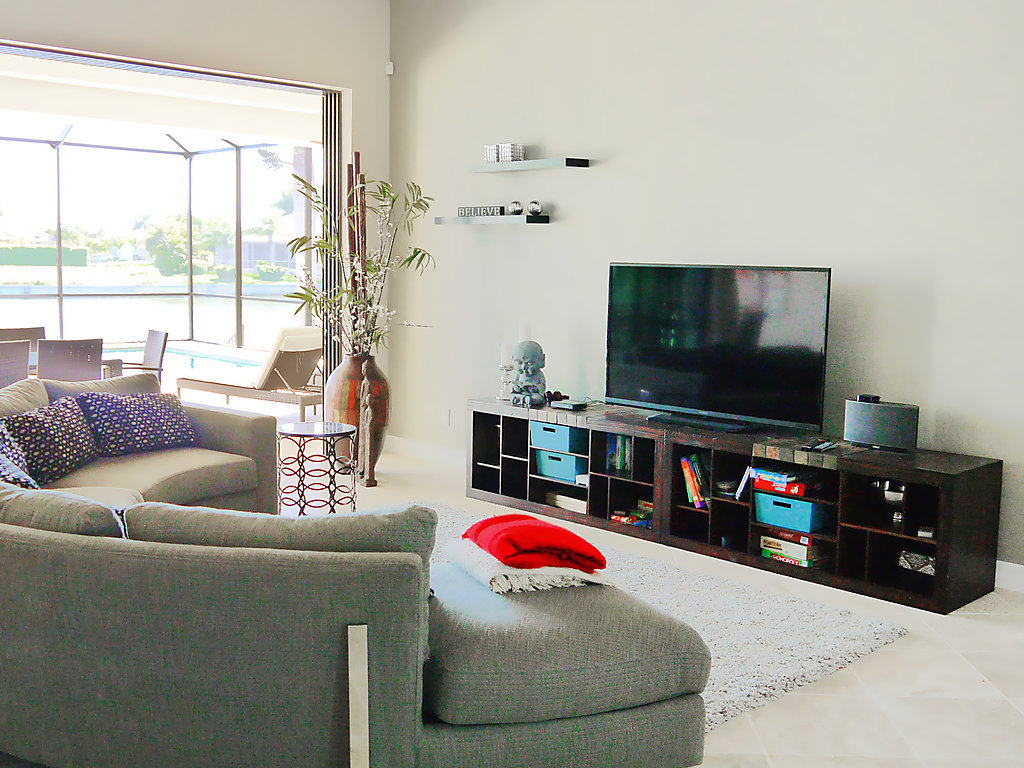 6-Zimmer-Villa 320 m2. Geräumig und hell, schön und luxuriös eingerichtet: Wohn-/Esszimmer mit Digital-TV, Flachbildschirm und Stereoanlage. Ausgang zur Terrasse. Büro mit 1 Bett. 1 Zimmer mit 1 Doppelbett (160 cm), Bad/Dusche/WC. 2 Zimmer, jedes Zimmer mit 1 Doppelbett (200 cm), Dusche/WC und TV. Grosse, offene Küche (Geschirrspüler, 4 Glaskeramikherd Platten, Mikrowelle, Tiefkühler, elektrische Kaffeemaschine, Kochinsel). Ausgang zur Terrasse. Klimaanlage. Obergeschoss: 1 Zimmer mit 1 Doppelbett (200 cm), Bad/WC. Spielzimmer. Ausgang zum Balkon. Sicht auf das Schwimmbad und den Kanal. Zur Verfügung: Waschmaschine, Wäschetrockner. Internet (Wireless LAN). Bitte beachten: geeignet für Familien. Nichtraucher-Unterkunft.