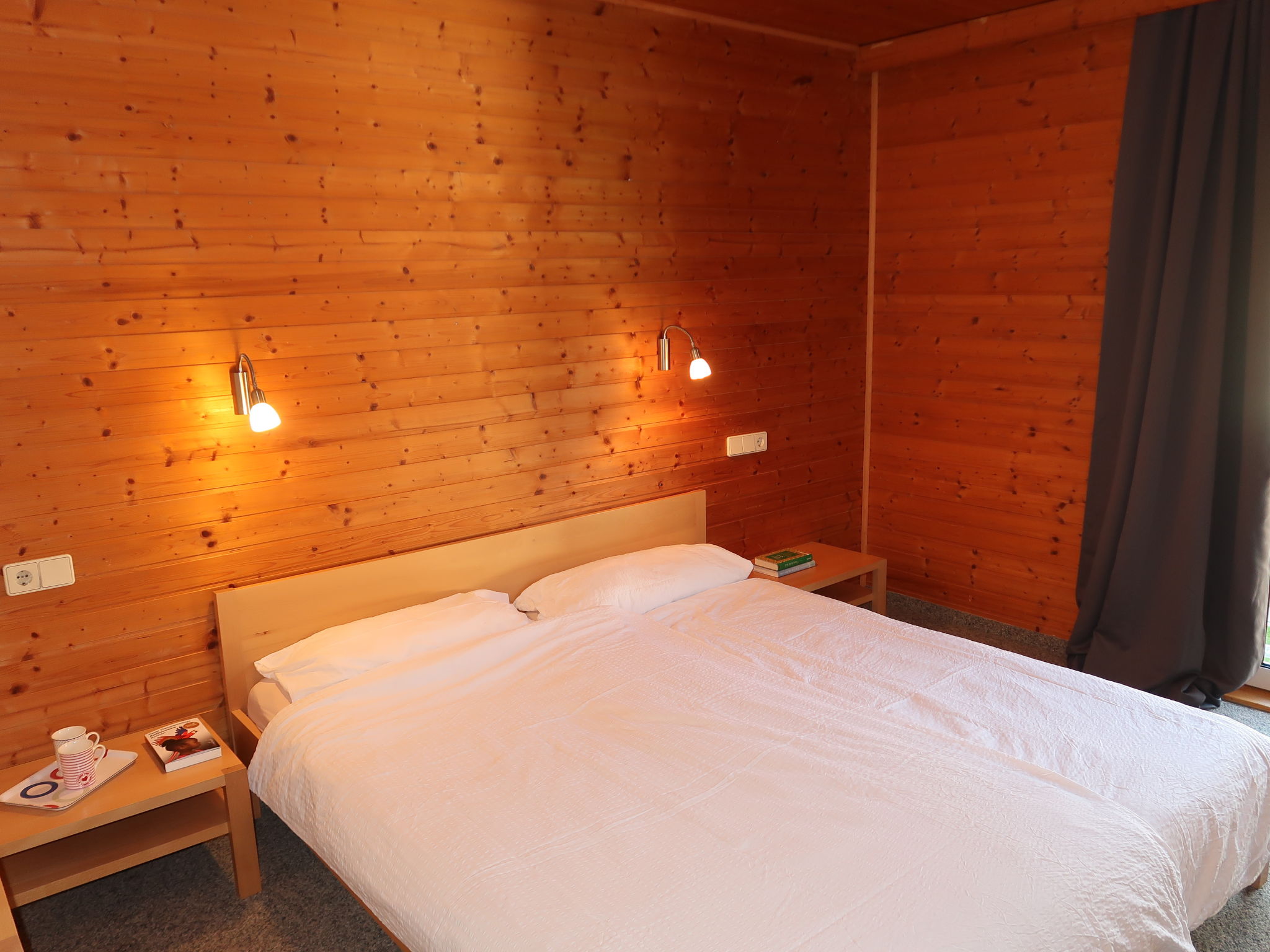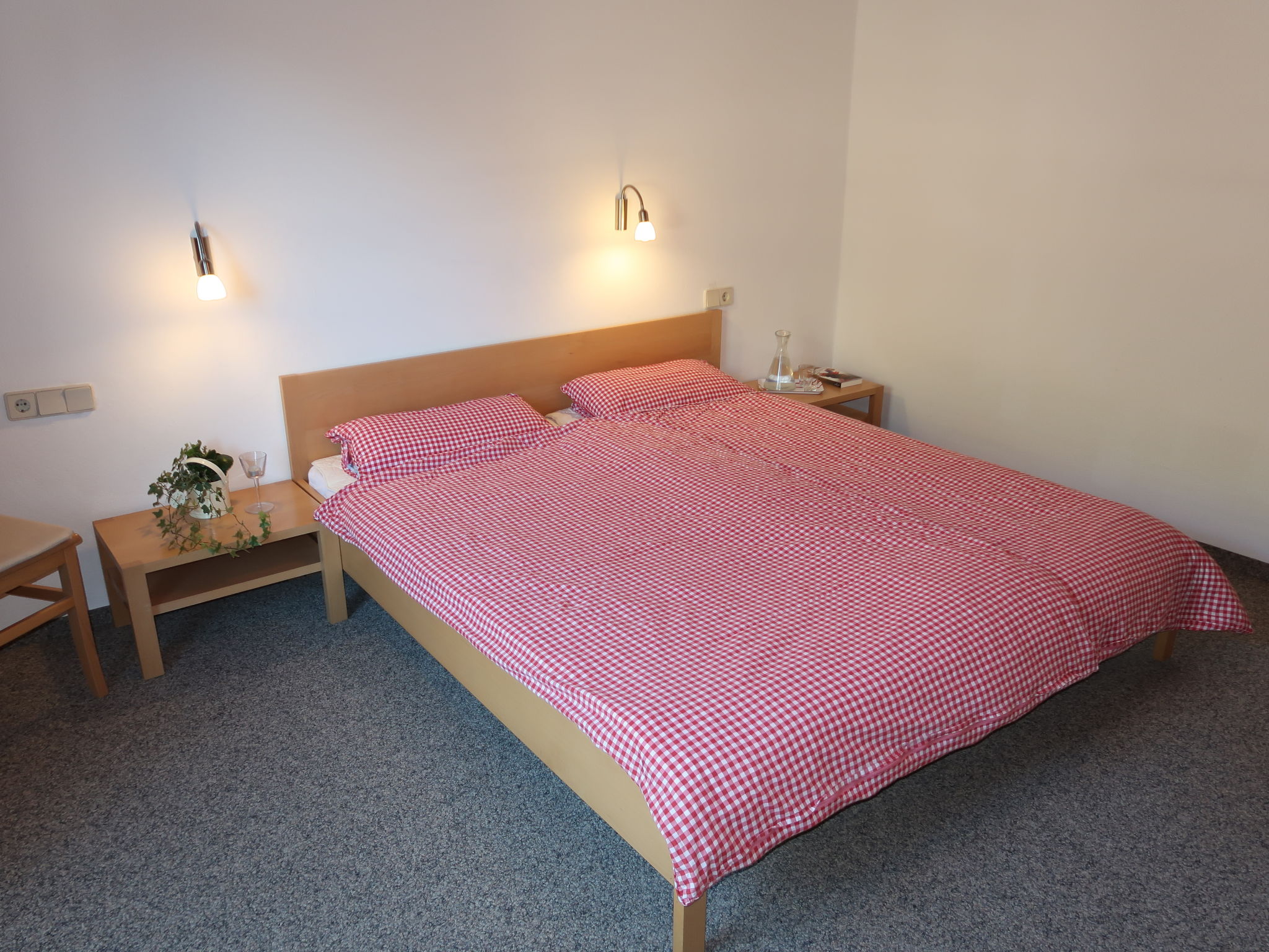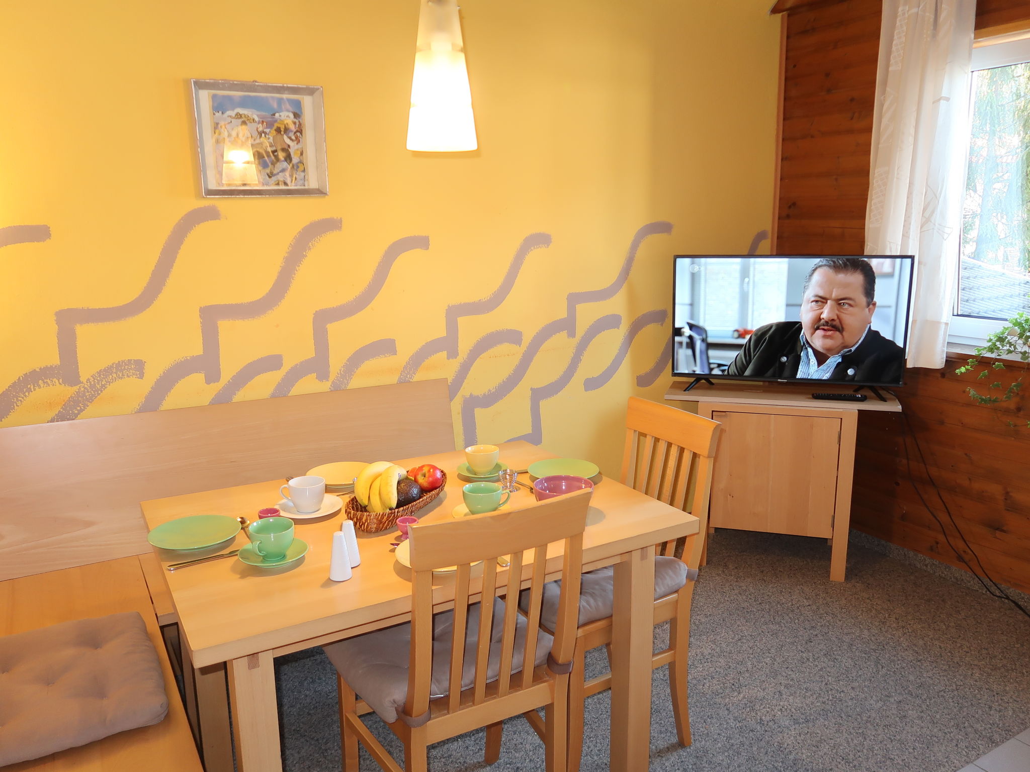 3-Zimmer-Wohnung 'Hochunnutz', 1. Etage, ca. 54 m². Wohnküche (4 Ceranfelder, Backofen, Geschirrspüler, Kühlschrank, Kaffeemaschine) mit Essplatz (Eckbank). 2 Doppelzimmer. Bad/WC. Zugang zum Balkon über Etagenflur.