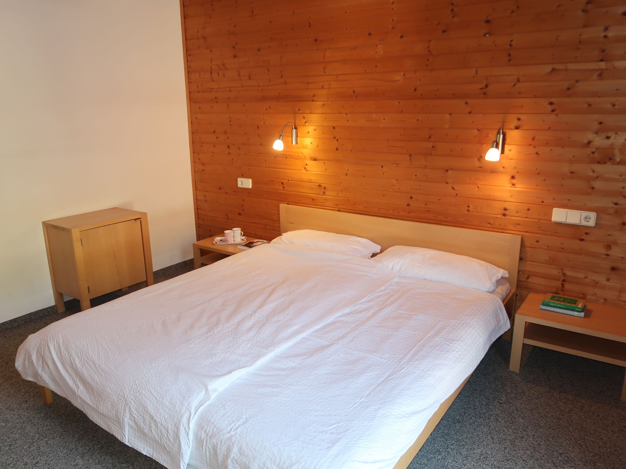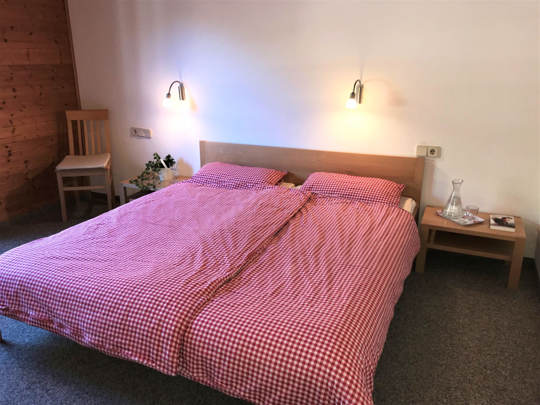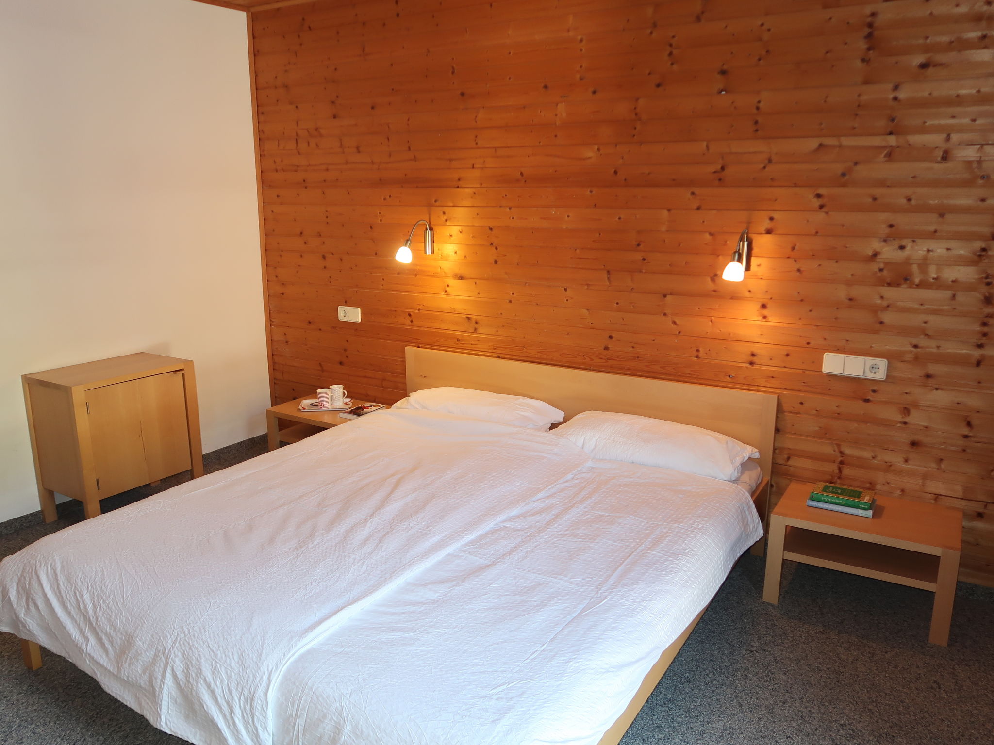 3-Zimmer-Wohnung 'Hochunnutz', 1. Etage, ca. 54 m². Wohnküche (4 Ceranfelder, Backofen, Geschirrspüler, Kühlschrank, Kaffeemaschine) mit Essplatz (Eckbank). 2 Doppelzimmer. Bad/WC. Zugang zum Balkon über Etagenflur.