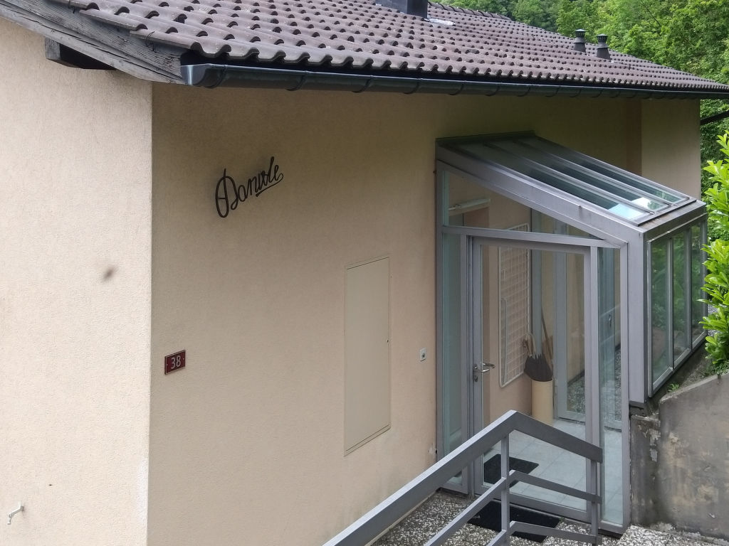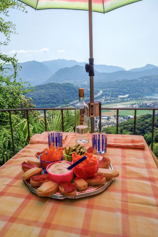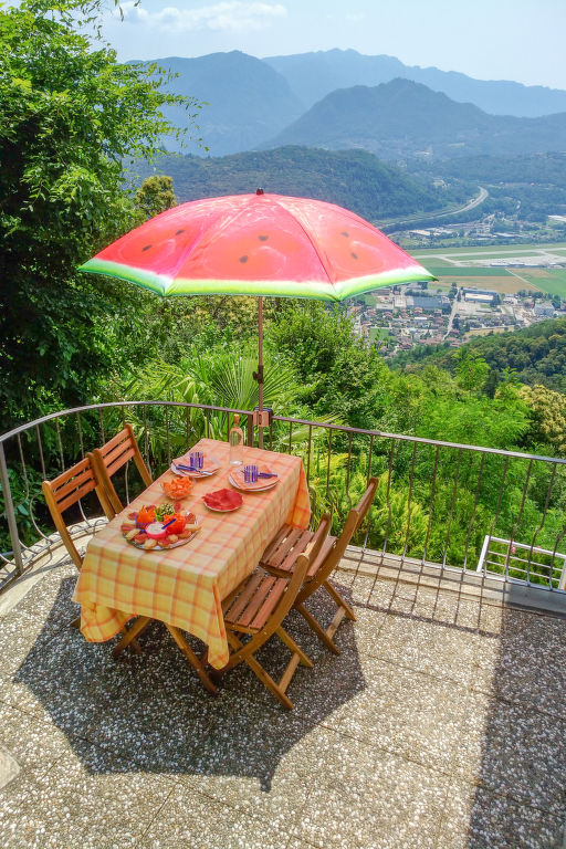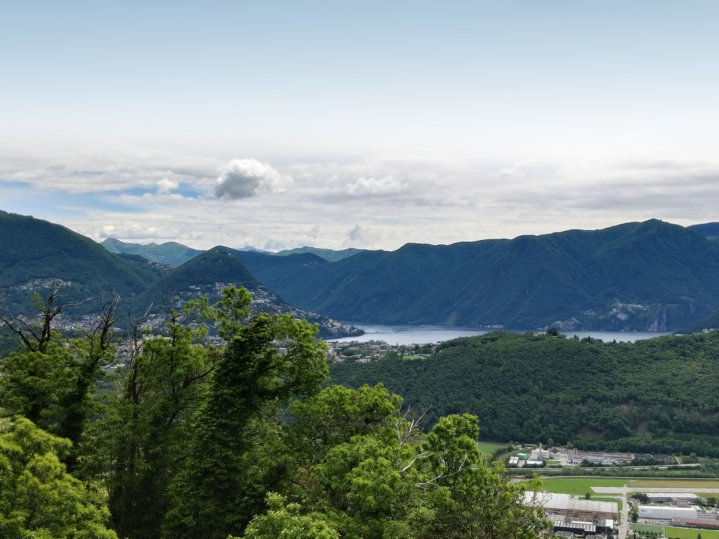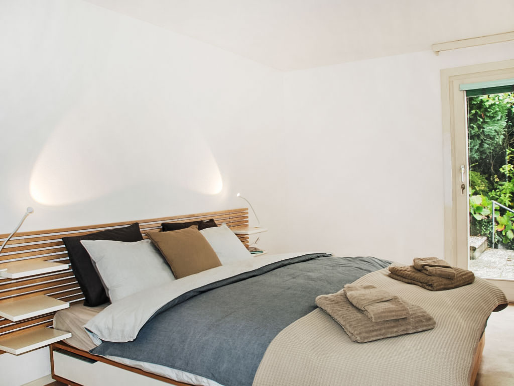 "Daniele", 3-Zimmer-Wohnung auf 2 Stockwerken. Geräumig und hell, komfortabel und gemütlich eingerichtet: offenes grosses Wohn-/Esszimmer mit Panoramafenster mit Sat-TV (Flachbildschirm). Ausgang zum Balkon. Grosse, offene Küche (Backofen, Geschirrspüler, 4 Glaskeramikherd Platten, Mikrowelle, elektrische Kaffeemaschine, Kapseln für die Kaffeemaschine (Nespresso) extra, Fondue Set (Käse)) mit Esstisch. Dusche/Bidet/WC. Heizung. Unteres Geschoss: 1 Doppelzimmer mit Panoramafenster mit 2 Betten (90 cm, Länge 200 cm). 1 Zimmer mit 1 Doppelbett (2 x 80 cm, Länge 200 cm). Ausgang zum Gartensitzplatz. Gepäckraum mit begehbarer Kleiderschrank, ohne Fenster. Bad/WC. Kleiner Balkon 6 m2, Südlage, kleiner Gartensitzplatz, Südostlage. Balkonmöbel. Herrliche Panoramasicht auf den See, die Berge und die Landschaft. Zur Verfügung: Bügeleisen, Kinderhochstuhl, Babybett bis 2 Jahre (extra), Haartrockner. Internet (Wireless LAN, gratis). Bitte beachten: Nichtraucher-Unterkunft. Feuerlöscher, kein Fahrstuhl.