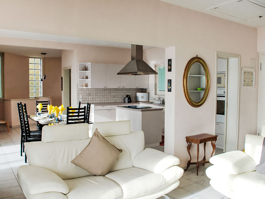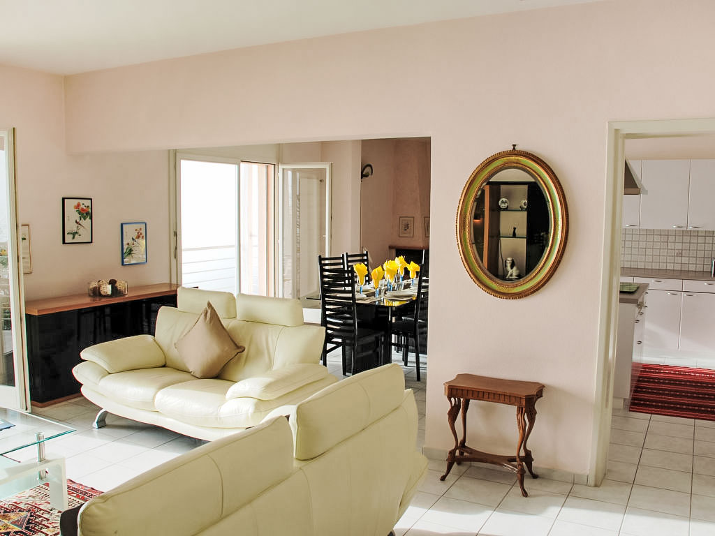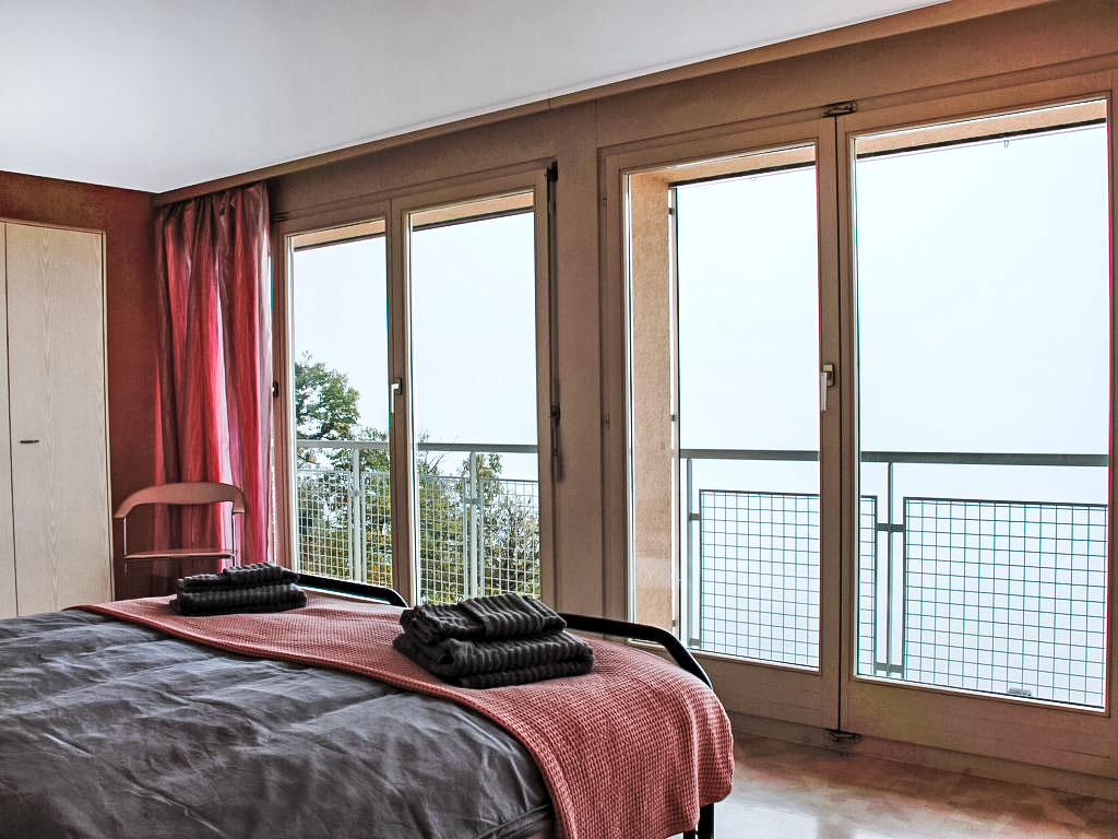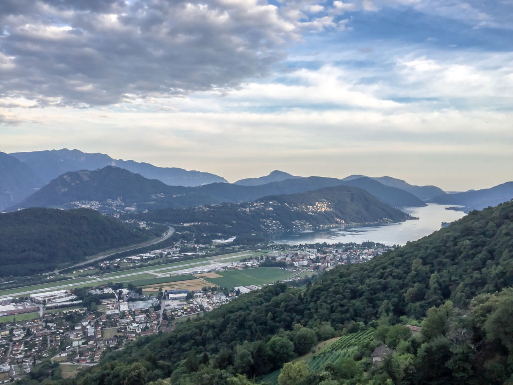 "Daniele", 3-Zimmer-Wohnung auf 2 Stockwerken. Geräumig und hell, komfortabel und gemütlich eingerichtet: offenes grosses Wohn-/Esszimmer mit Panoramafenster mit Sat-TV (Flachbildschirm). Ausgang zum Balkon. Grosse, offene Küche (Backofen, Geschirrspüler, 4 Glaskeramikherd Platten, Mikrowelle, elektrische Kaffeemaschine, Kapseln für die Kaffeemaschine (Nespresso) extra, Fondue Set (Käse)) mit Esstisch. Dusche/Bidet/WC. Heizung. Unteres Geschoss: 1 Doppelzimmer mit Panoramafenster mit 2 Betten (90 cm, Länge 200 cm). 1 Zimmer mit 1 Doppelbett (2 x 80 cm, Länge 200 cm). Ausgang zum Gartensitzplatz. Gepäckraum mit begehbarer Kleiderschrank, ohne Fenster. Bad/WC. Kleiner Balkon 6 m2, Südlage, kleiner Gartensitzplatz, Südostlage. Balkonmöbel. Herrliche Panoramasicht auf den See, die Berge und die Landschaft. Zur Verfügung: Bügeleisen, Kinderhochstuhl, Babybett bis 2 Jahre (extra), Haartrockner. Internet (Wireless LAN, gratis). Bitte beachten: Nichtraucher-Unterkunft. Feuerlöscher, kein Fahrstuhl.