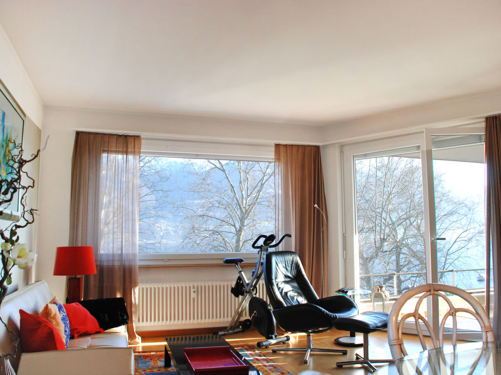 "Premium Vista Rivapiana App. 13", 3-Zimmer-Wohnung 70 m2 im 4. Stock. Objekt geeignet für 2 Erwachsene + 2 Kinder. Geräumig und hell, komfortabel und gemütlich eingerichtet: Wohn-/Esszimmer mit Esstisch und Sat-TV (Flachbildschirm), Radio und Stereoanlage. Ausgang zur Terrasse. 1 Doppelzimmer mit 2 Betten (90 cm, Länge 200 cm). Ausgang zur Terrasse. 1 Zimmer mit 2 Klappbetten (80 cm, Länge 190 cm), Kabel-TV (Flachbildschirm). Grosse Küche (Backofen, Geschirrspüler, 4 Glaskeramikherd Platten, elektrische Kaffeemaschine, Kapseln für die Kaffeemaschine (Nespresso) extra). Ausgang zum Balkon. Bad/Dusche/WC, Doppelwaschbecken. E-Heizung. Parkettböden. Grosse Terrasse teilweise überdacht. Terrassenmöbel. Herrliche Panoramasicht auf den See, die Berge und die Landschaft. Zur Verfügung: Waschmaschine, Bügeleisen, Kinderhochstuhl, Babybett bis 2 Jahre (extra), Haartrockner. Internet (Wireless LAN, gratis). Garage beim Haus. Bitte beachten: Nichtraucher-Unterkunft.