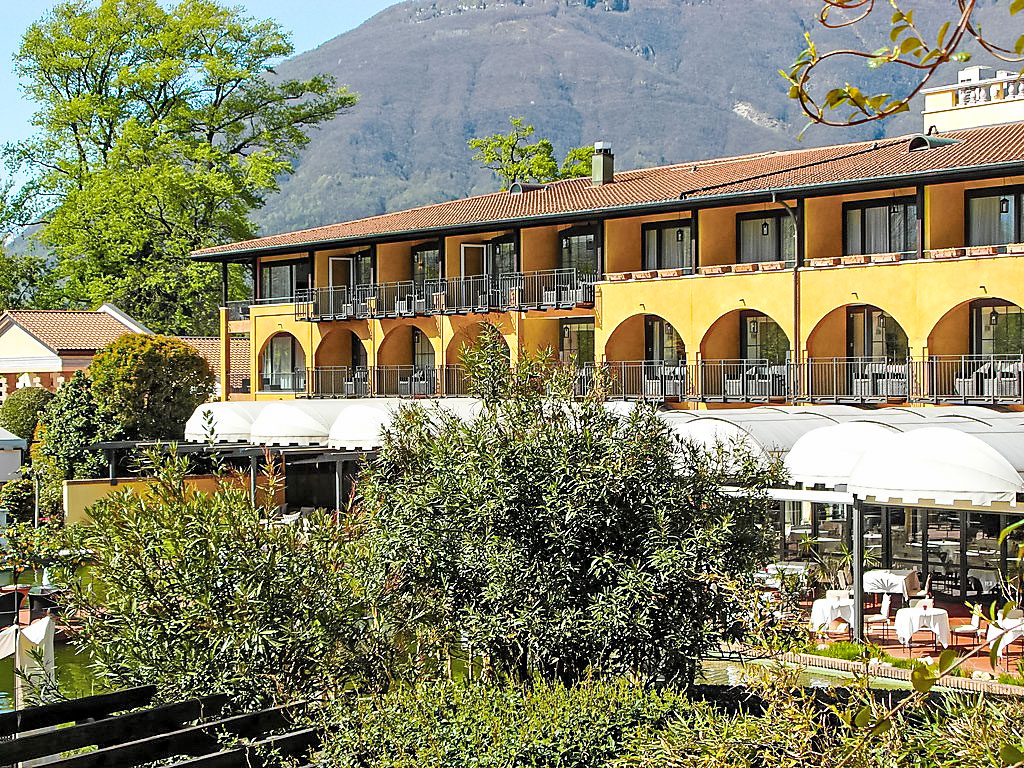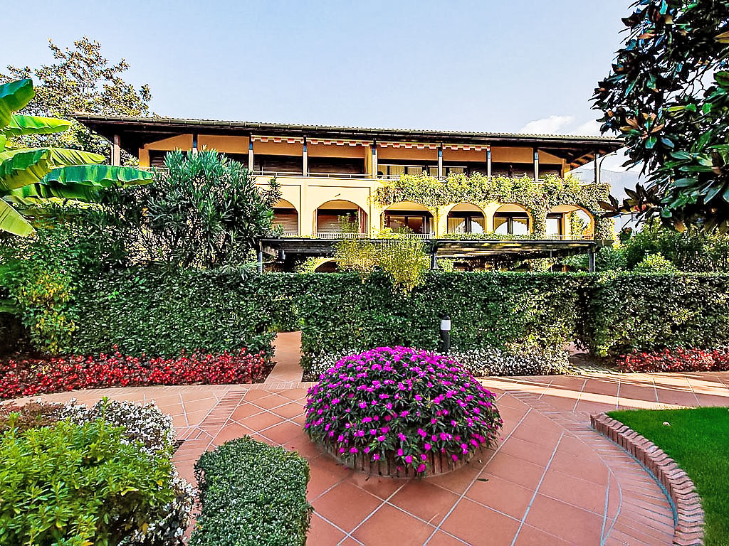 Ascona: Schöne, komfortable Residenz "Giardino", auf 2 Stockwerken. Am Ortsrand, 1.5 km vom Zentrum von Ascona, ruhige, sonnige Lage, 400 m vom See, in einer Sackgasse. Zur Mitbenutzung: Park (eingezäunt), gepflegter Garten mit Rasen und Pflanzen, Liegewiese, Teich, Aufstellpool eckig beheizt (10 x 20 m, 100 - 250 cm tief, saisonale Verfügbarkeit: 30.Apr.-15.Okt.) mit Innentreppe. Kinderbecken, Aussendusche, Gartenmöbel. In der Anlage: Restaurant, Frühstücksraum, Sauna, Fitnessraum, Massage, Dampfbad, Solarium, Sprudelbad (alles extra), Zentralheizung. Zufahrt bis zum Haus. Parkplatz, Gemeinschaftsgarage. Einkaufsgeschäft 1.5 km, Lebensmittelgeschäft 1.5 km, Supermarkt 1.5 km, Bäckerei 1 km, Sandstrand "Bagno Publico Ascona" 800 m, Kieselstrand 500 m. Sporthafen 500 m, Golfplatz (18 Loch) 800 m, Minigolf 1.5 km, Kinderspielplatz 800 m. Bitte beachten: Eigentümer hat einen Hund. Gemäss Auskunft der Reception vom Hotel Giardino 0917858888 können die Gäste die Hotel Anlage wegen Corona nur nach Verfügbarkeit nutzen. Wir bitten die Gäste sich bei der Reception zu erkundigen und anzumelden. Das Hotel Giardino ist in den Wintermonaten vom 25.Oktober bis Ende März geschlossen.