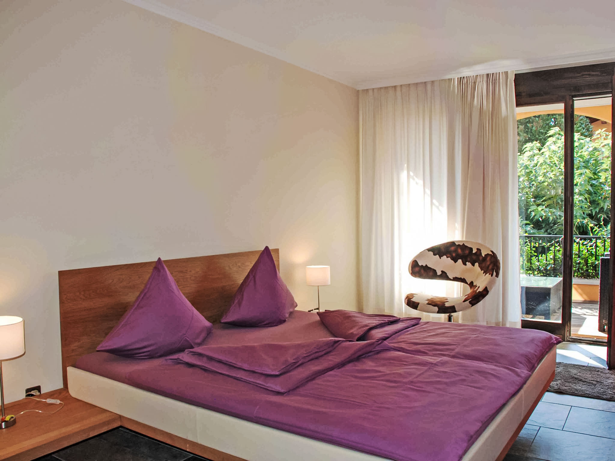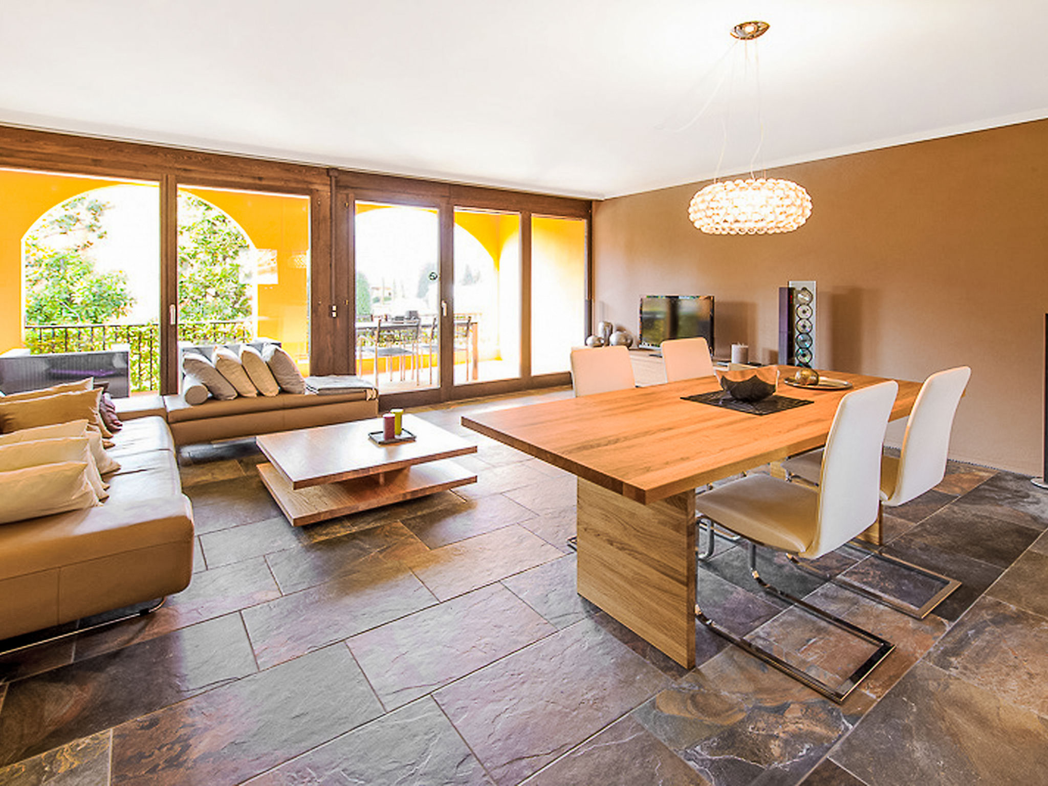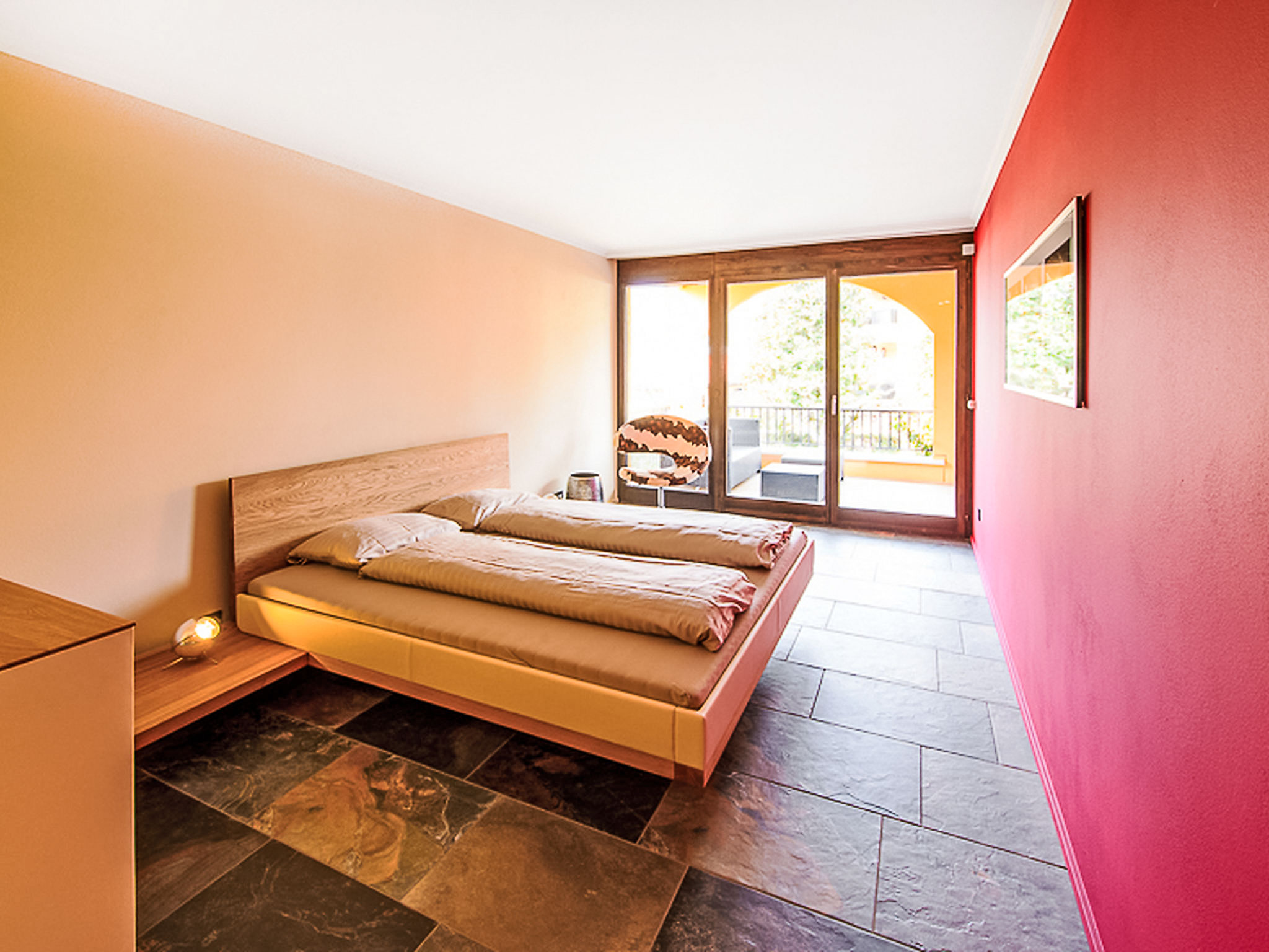 "Residenza Giardino", 3-Zimmer-Wohnung 80 m2 im 1. Stock. Geräumig und hell, komfortabel und stilvoll eingerichtet: offenes Wohn-/Esszimmer mit Kabel-TV, Flachbildschirm und Stereoanlage. Ausgang zur Terrasse. 1 Doppelzimmer mit 1 franz. Bett (1 x 180 cm, Länge 200 cm), Dusche/WC. Ausgang zur Terrasse. 1 Zimmer mit 1 franz. Bett (1 x 140 cm, Länge 200 cm). Ausgang zur Terrasse. Offene Küche (Backofen, Geschirrspüler, 4 Glaskeramikherd Platten, Mikrowelle, elektrische Kaffeemaschine, Kapseln für die Kaffeemaschine (Nespresso mitbringen)). Dusche/WC. Bodenheizung. Grosse Terrasse 20 m2 teilweise überdacht. Terrassenmöbel, Liegestühle (1). Schöne Sicht auf die Berge und den Garten. Zur Verfügung: Waschmaschine, Haartrockner. Internet (Wireless LAN, gratis). Garage. Bitte beachten: Nichtraucher-Unterkunft. 1 Haustier/Hund erlaubt. Küche: Elektrische Kaffeemaschine "Nespresso" und ein Weincooler vorhanden. Renovation der Wohnung 2012/2013.