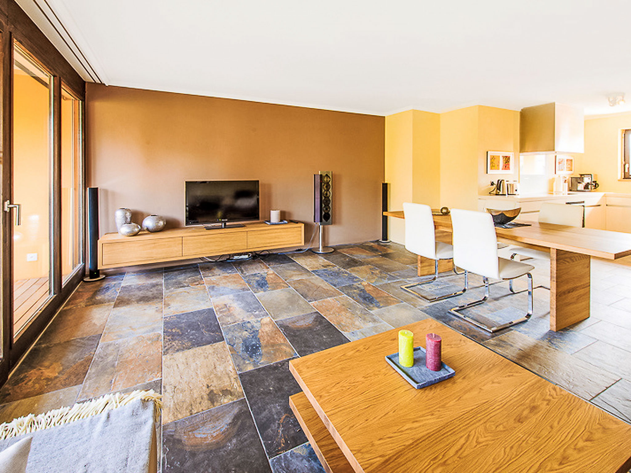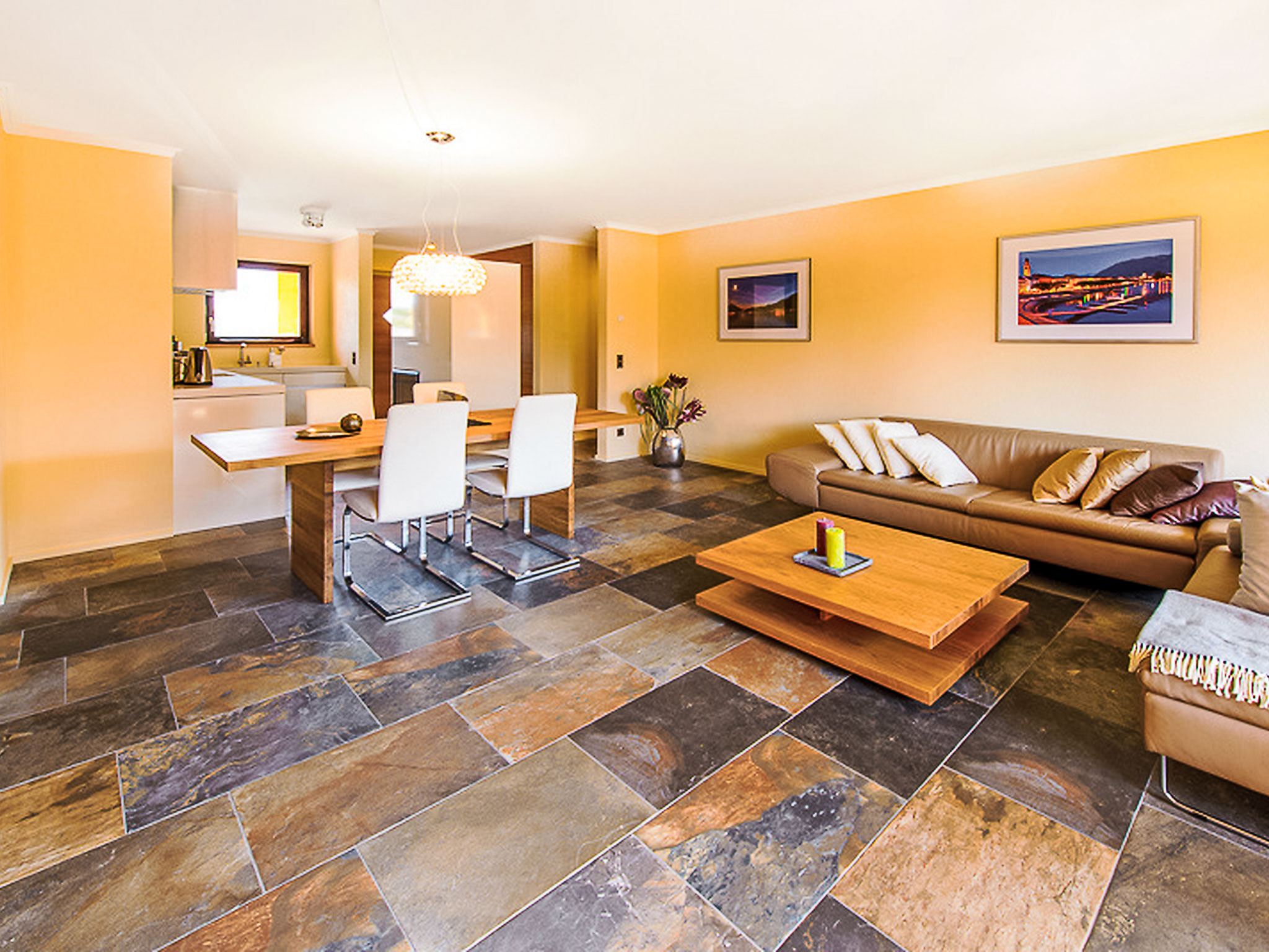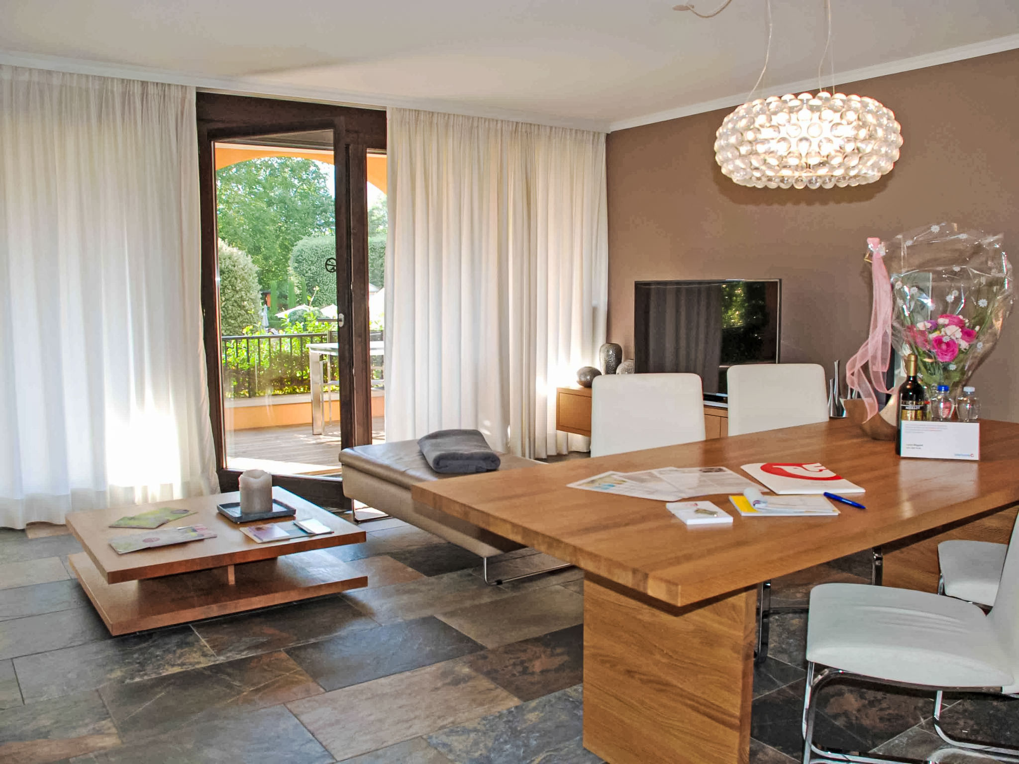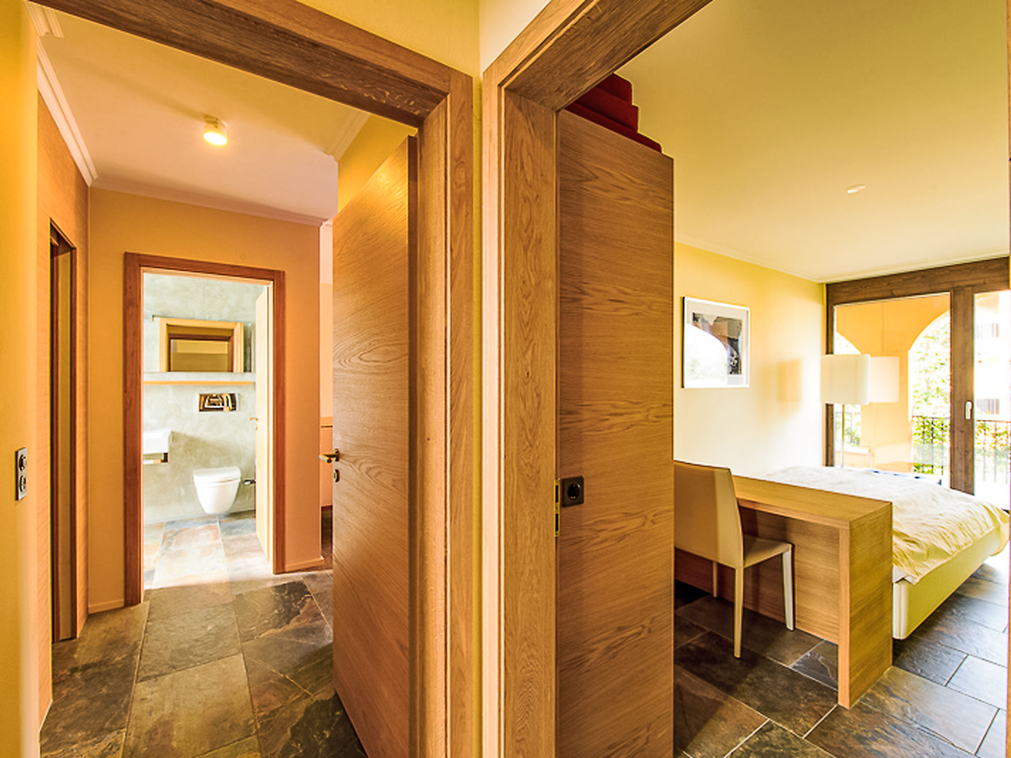 "Residenza Giardino", 3-Zimmer-Wohnung 80 m2 im 1. Stock. Geräumig und hell, komfortabel und stilvoll eingerichtet: offenes Wohn-/Esszimmer mit Kabel-TV, Flachbildschirm und Stereoanlage. Ausgang zur Terrasse. 1 Doppelzimmer mit 1 franz. Bett (1 x 180 cm, Länge 200 cm), Dusche/WC. Ausgang zur Terrasse. 1 Zimmer mit 1 franz. Bett (1 x 140 cm, Länge 200 cm). Ausgang zur Terrasse. Offene Küche (Backofen, Geschirrspüler, 4 Glaskeramikherd Platten, Mikrowelle, elektrische Kaffeemaschine, Kapseln für die Kaffeemaschine (Nespresso mitbringen)). Dusche/WC. Bodenheizung. Grosse Terrasse 20 m2 teilweise überdacht. Terrassenmöbel, Liegestühle (1). Schöne Sicht auf die Berge und den Garten. Zur Verfügung: Waschmaschine, Haartrockner. Internet (Wireless LAN, gratis). Garage. Bitte beachten: Nichtraucher-Unterkunft. 1 Haustier/Hund erlaubt. Küche: Elektrische Kaffeemaschine "Nespresso" und ein Weincooler vorhanden. Renovation der Wohnung 2012/2013.