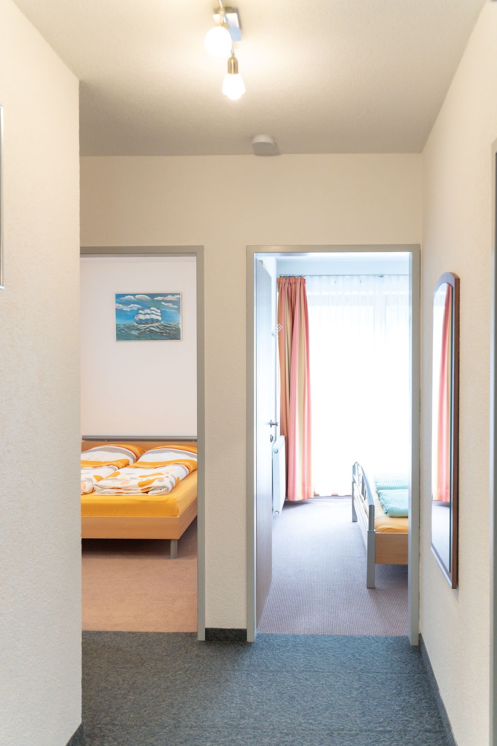 "Al Vietta (KPL608)", 4-Zimmer-Wohnung 70 m2 im 2. Stock. Hell, zweckmässig eingerichtet: 1 Zimmer mit 1 Doppelbett und Waschbecken. Ausgang zum Balkon. 1 Zimmer mit 1 franz. Bett (140 cm), Waschbecken. Ausgang zum Balkon. 1 Zimmer mit 1 x 2 Etagenbetten, Waschbecken. Wohnküche (Backofen, 4 Glaskeramikherd Platten, Toaster, Wasserkocher, Mikrowelle, Tiefkühler, elektrische Kaffeemaschine) mit Essecke und Sat-TV. Dusche, sep. WC. Heizung. Teppichboden. Balkon. Zur Verfügung: Babybett. Internet (Wireless LAN, gratis). Bitte beachten: Nichtraucher-Unterkunft. Rauchmelder, Feuerlöscher.
