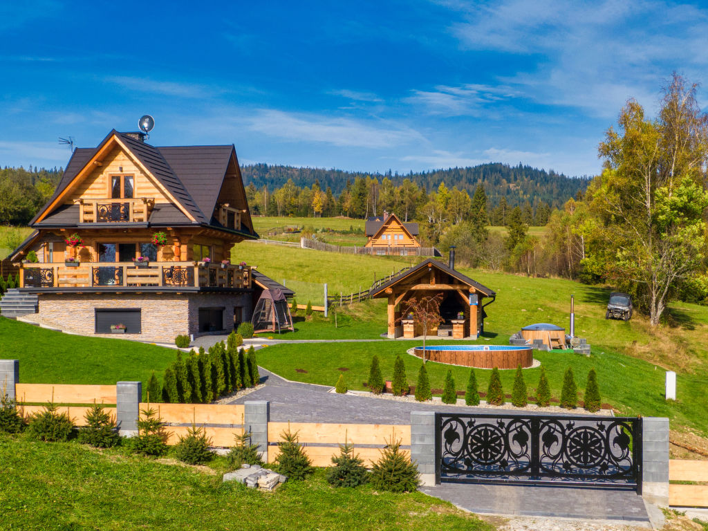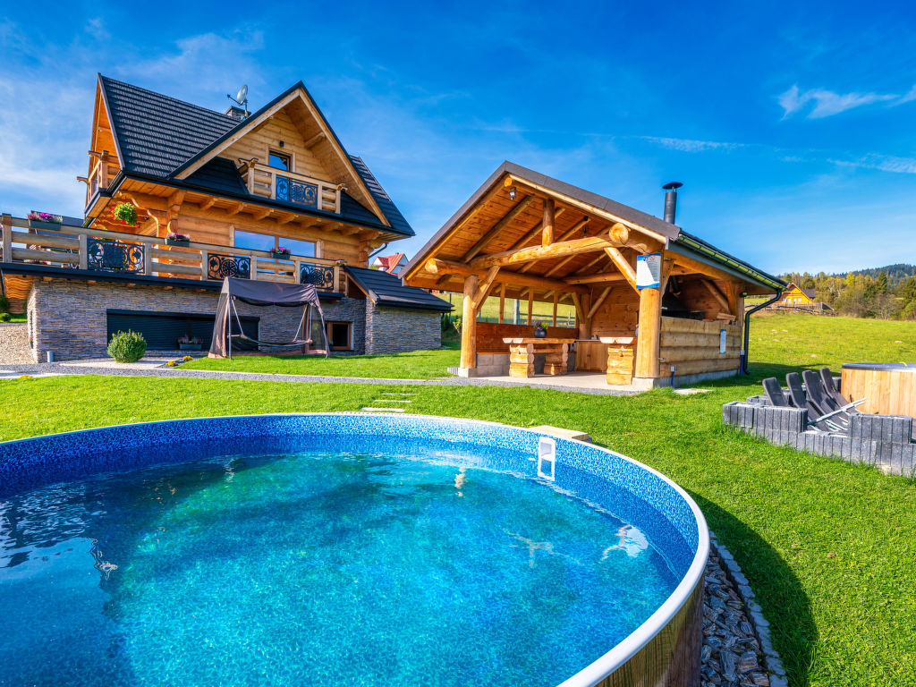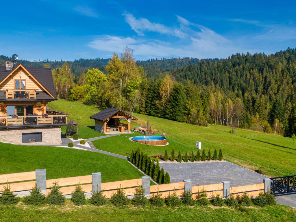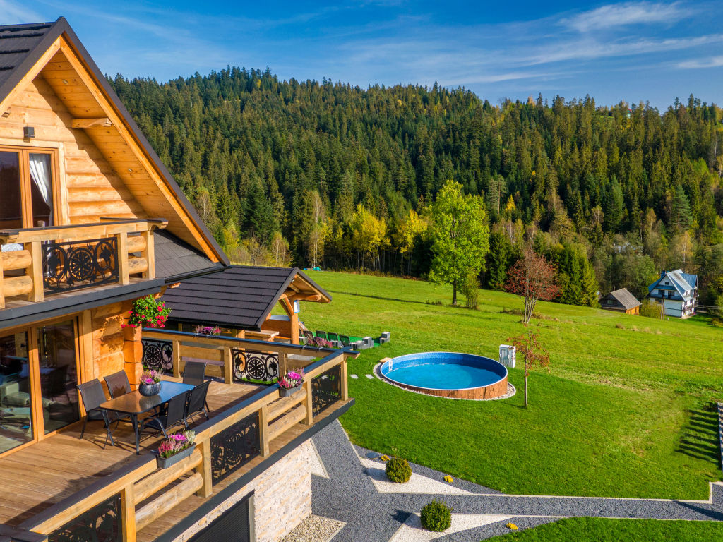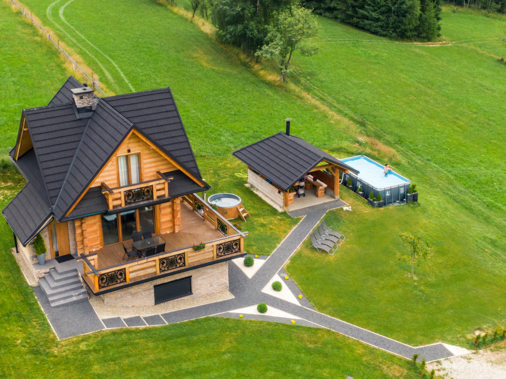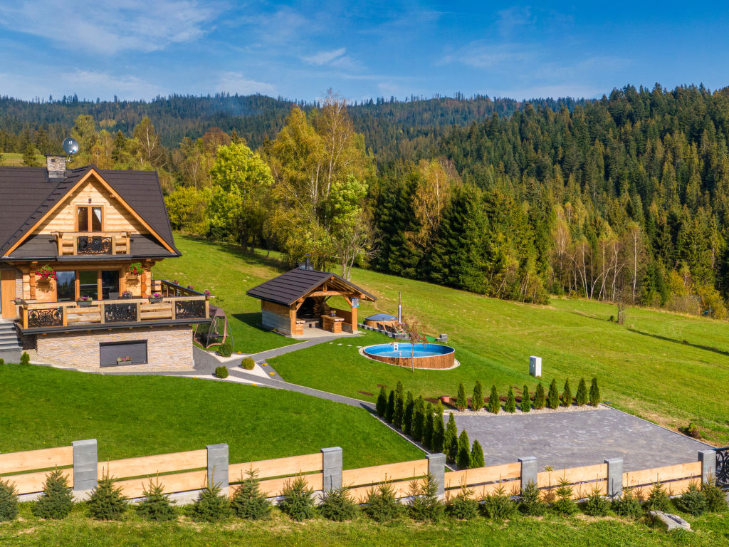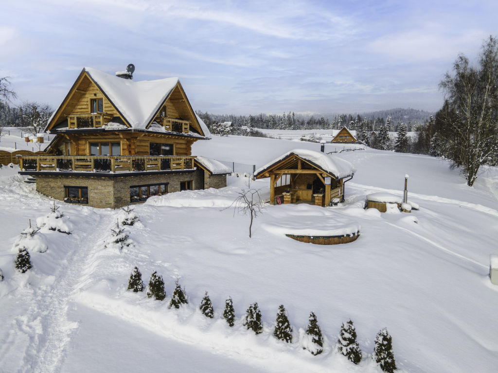 Luxuriöses Chalet "De Luxe", Baujahr 2017. Ruhige, sonnige, erhöhte Lage, 1 km vom Skigebiet. Zur Alleinbenutzung: Grundstück 9'000 m2, Schwimmbad beheizt (01.05.-30.09.). Sprudelbad, Laube, Feuerstelle, Grillhaus. Im Hause: Sauna, Skiraum, Zentralheizung. Parkplatz beim Haus. Einkaufsgeschäft 2 km, Supermarkt 2 km, Restaurant 4 km, Bushaltestelle 2 km, Bahnstation 4.5 km, Hallenbad 5.5 km. Reitstall 4 km, Skilift 1 km, Skischule 1 km, Langlaufloipe 2.5 km, Eisfeld 4 km, Kinderspielplatz 2 km. Nahe gelegene Sehenswürdigkeiten: Termy Szaflary 12 km, Termy Bania 15 km, Termy Chochołowskie 28 km.