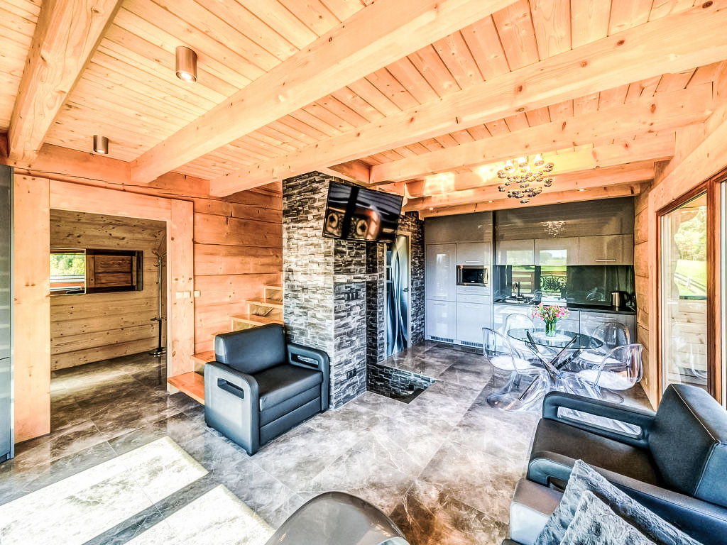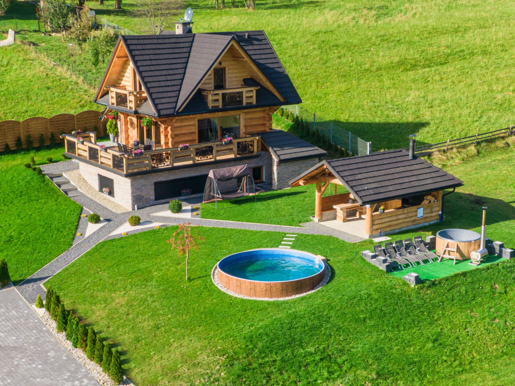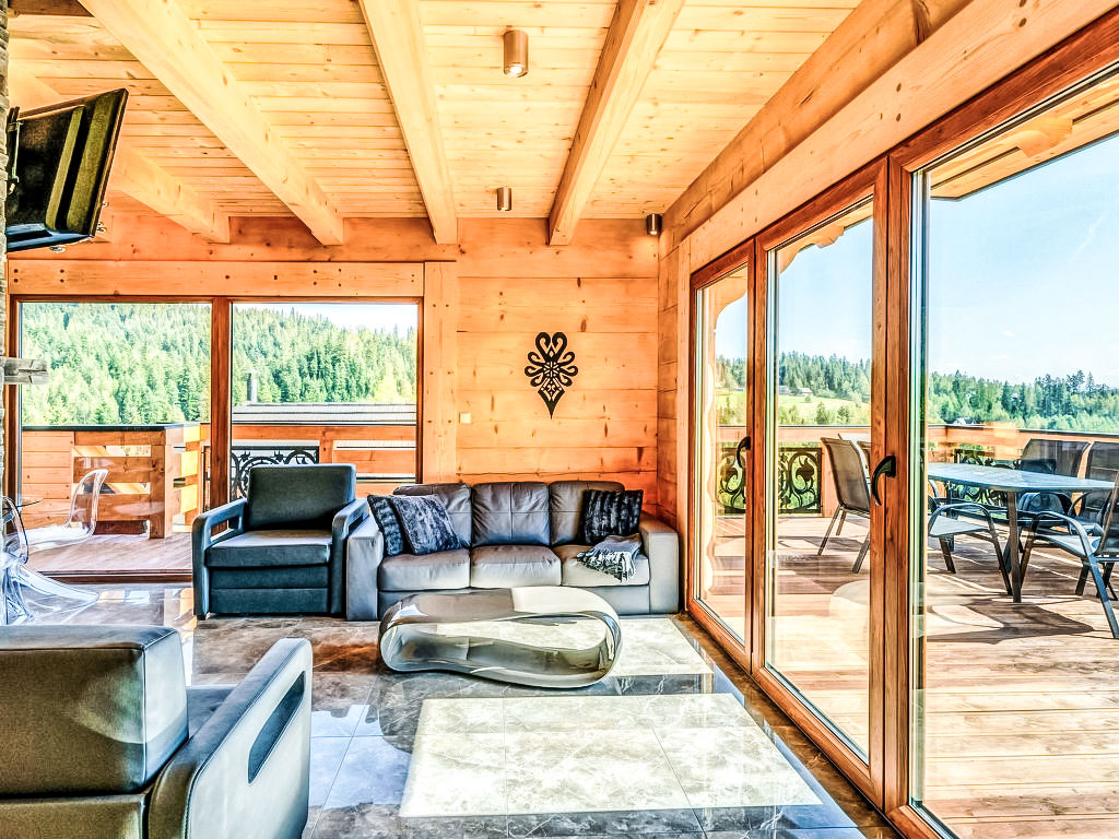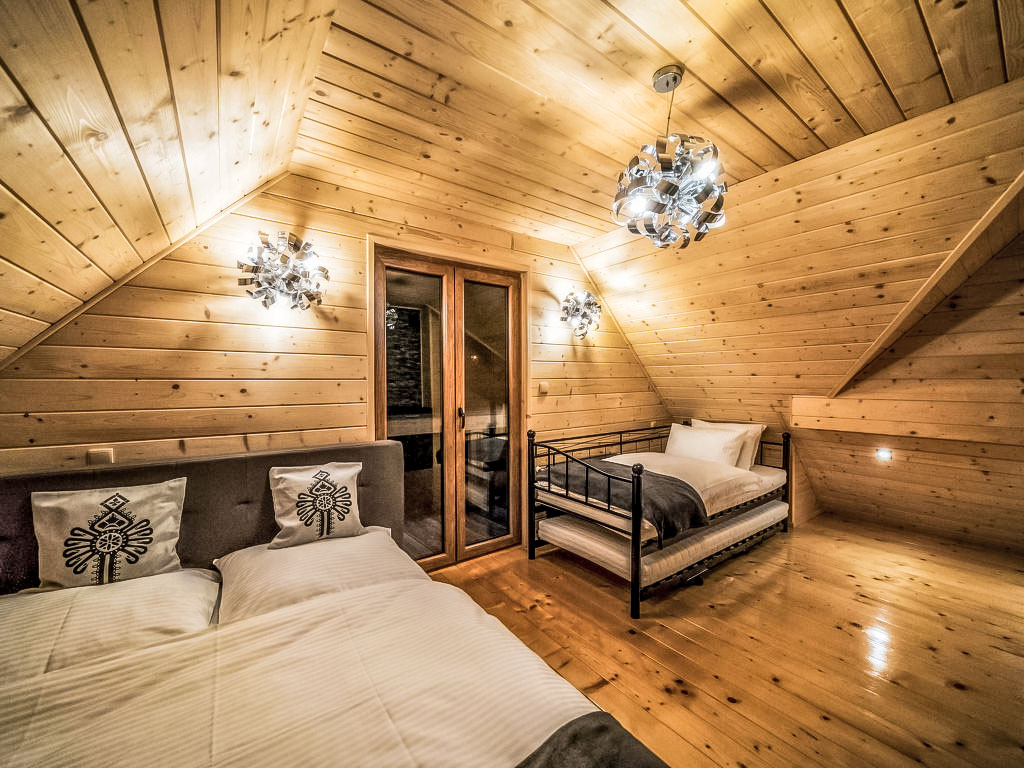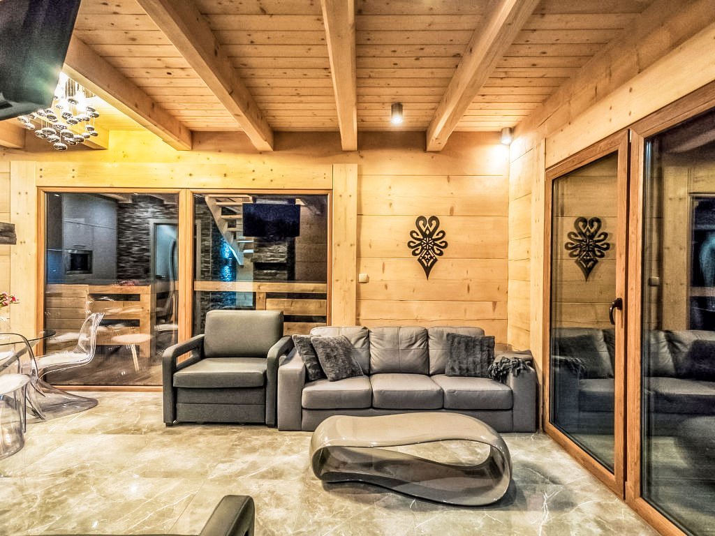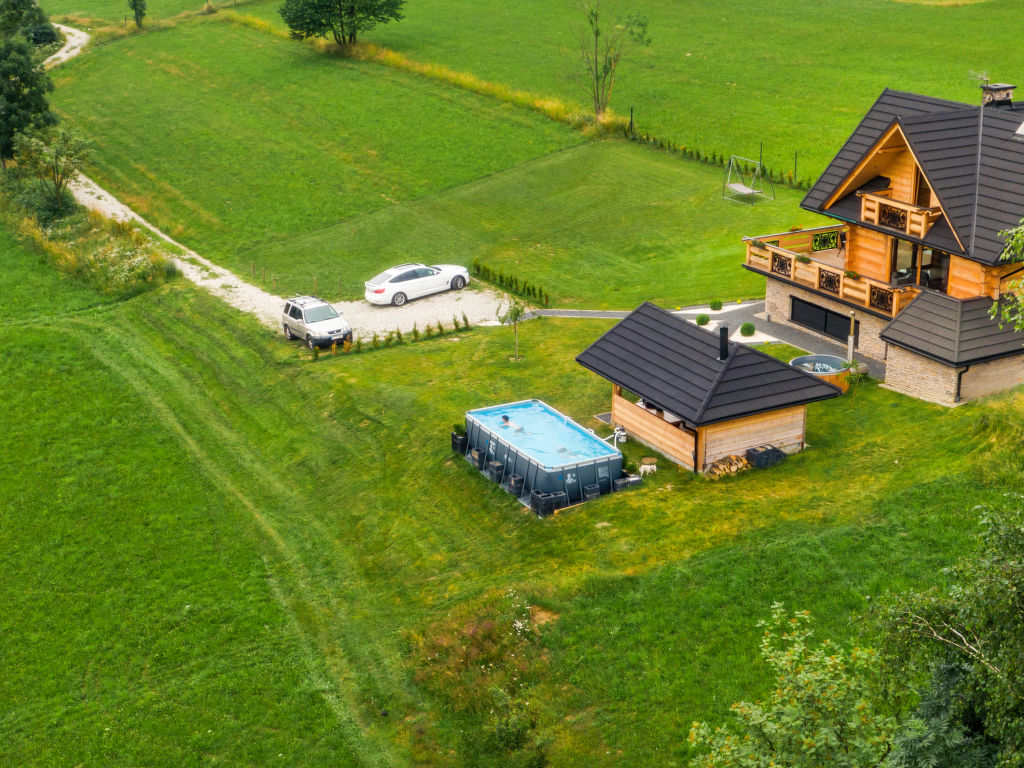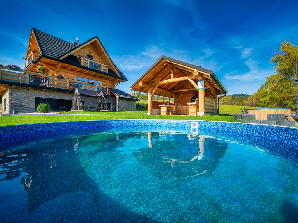 Luxuriöses Chalet "De Luxe", Baujahr 2017. Ruhige, sonnige, erhöhte Lage, 1 km vom Skigebiet. Zur Alleinbenutzung: Grundstück 9'000 m2, Schwimmbad beheizt (01.05.-30.09.). Sprudelbad, Laube, Feuerstelle, Grillhaus. Im Hause: Sauna, Skiraum, Zentralheizung. Parkplatz beim Haus. Einkaufsgeschäft 2 km, Supermarkt 2 km, Restaurant 4 km, Bushaltestelle 2 km, Bahnstation 4.5 km, Hallenbad 5.5 km. Reitstall 4 km, Skilift 1 km, Skischule 1 km, Langlaufloipe 2.5 km, Eisfeld 4 km, Kinderspielplatz 2 km. Nahe gelegene Sehenswürdigkeiten: Termy Szaflary 12 km, Termy Bania 15 km, Termy Chochołowskie 28 km.