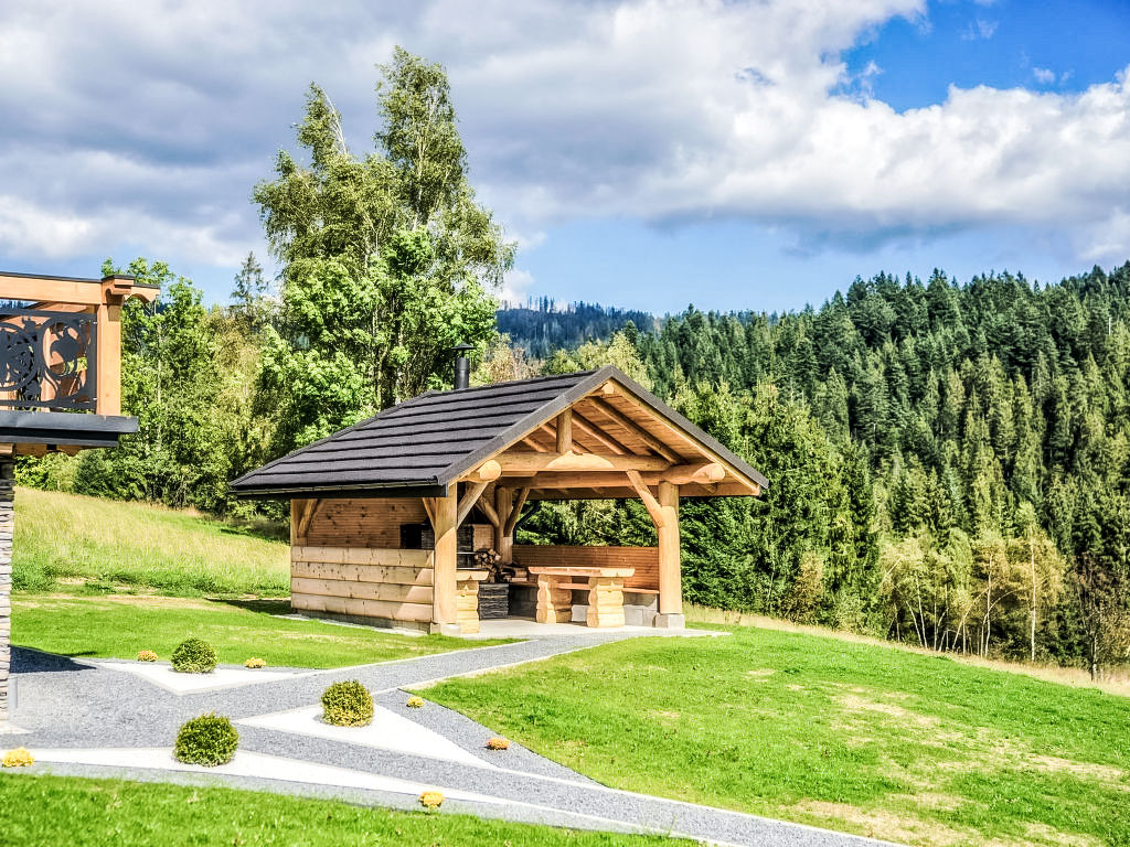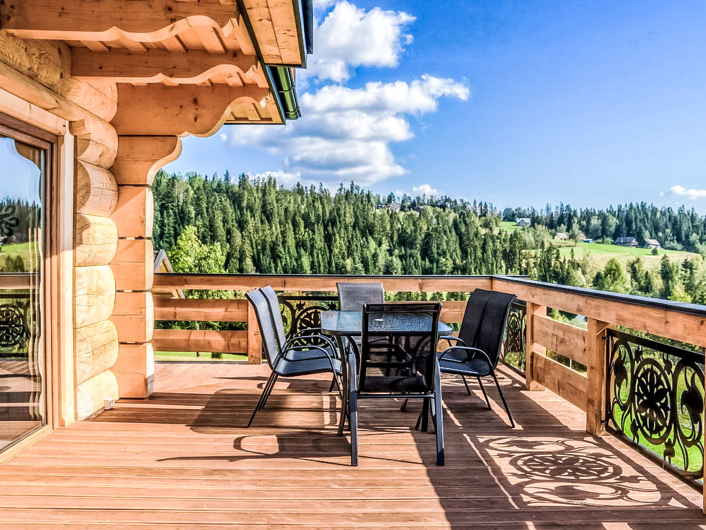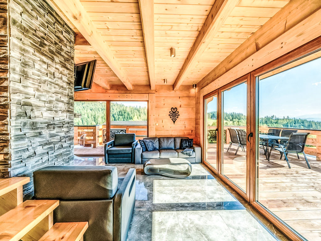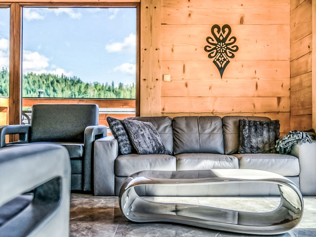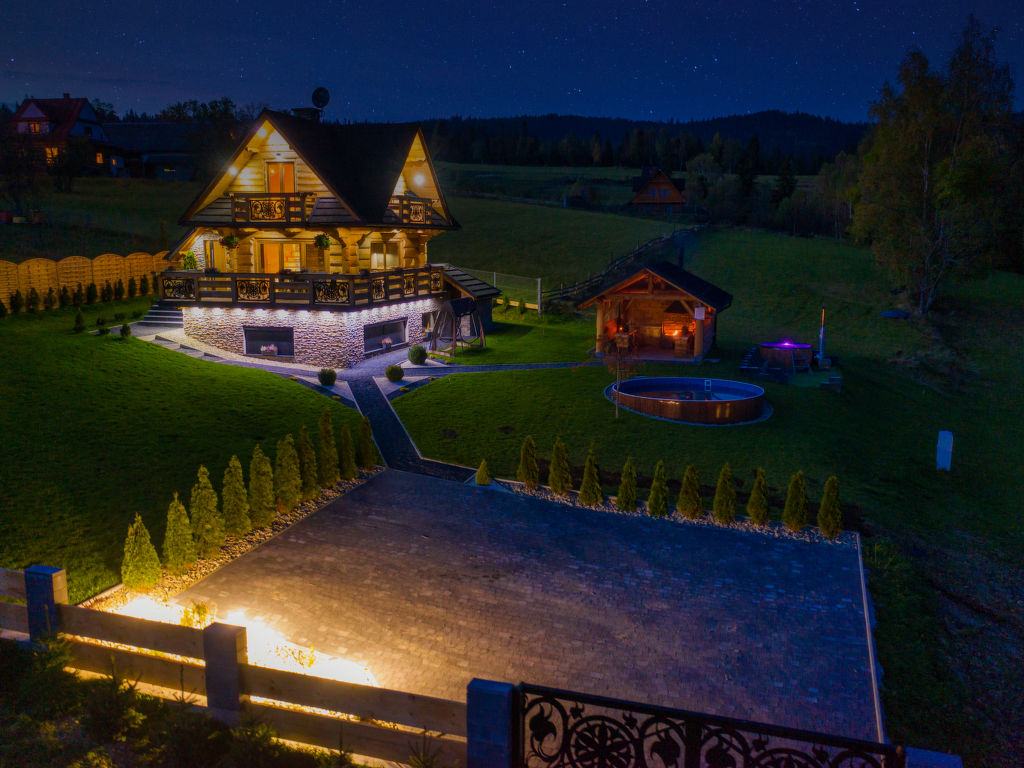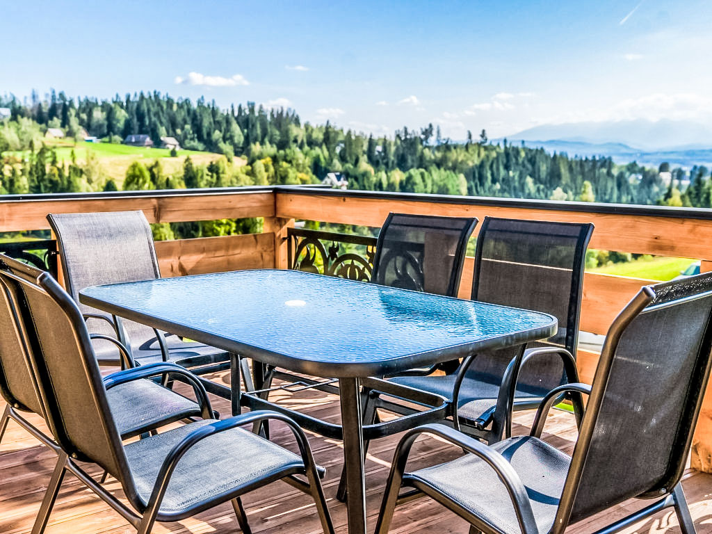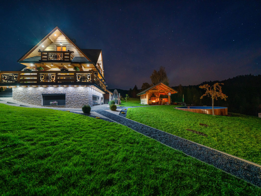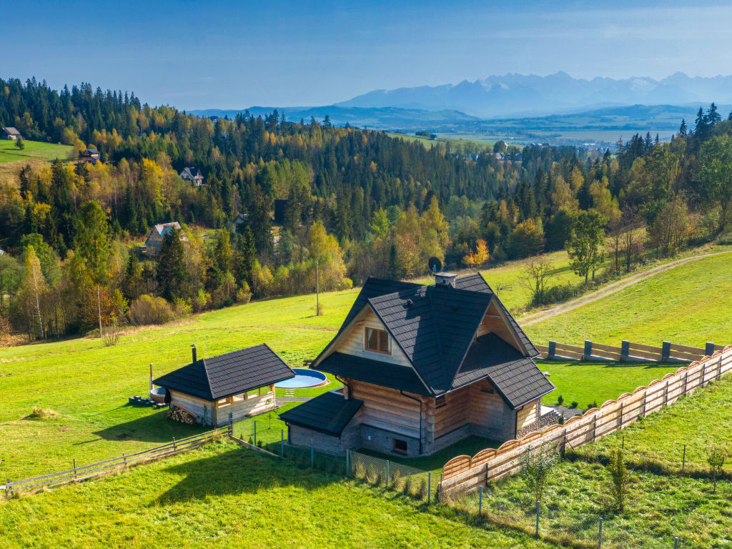 Luxuriöses Chalet "De Luxe", Baujahr 2017. Ruhige, sonnige, erhöhte Lage, 1 km vom Skigebiet. Zur Alleinbenutzung: Grundstück 9'000 m2, Schwimmbad beheizt (01.05.-30.09.). Sprudelbad, Laube, Feuerstelle, Grillhaus. Im Hause: Sauna, Skiraum, Zentralheizung. Parkplatz beim Haus. Einkaufsgeschäft 2 km, Supermarkt 2 km, Restaurant 4 km, Bushaltestelle 2 km, Bahnstation 4.5 km, Hallenbad 5.5 km. Reitstall 4 km, Skilift 1 km, Skischule 1 km, Langlaufloipe 2.5 km, Eisfeld 4 km, Kinderspielplatz 2 km. Nahe gelegene Sehenswürdigkeiten: Termy Szaflary 12 km, Termy Bania 15 km, Termy Chochołowskie 28 km.