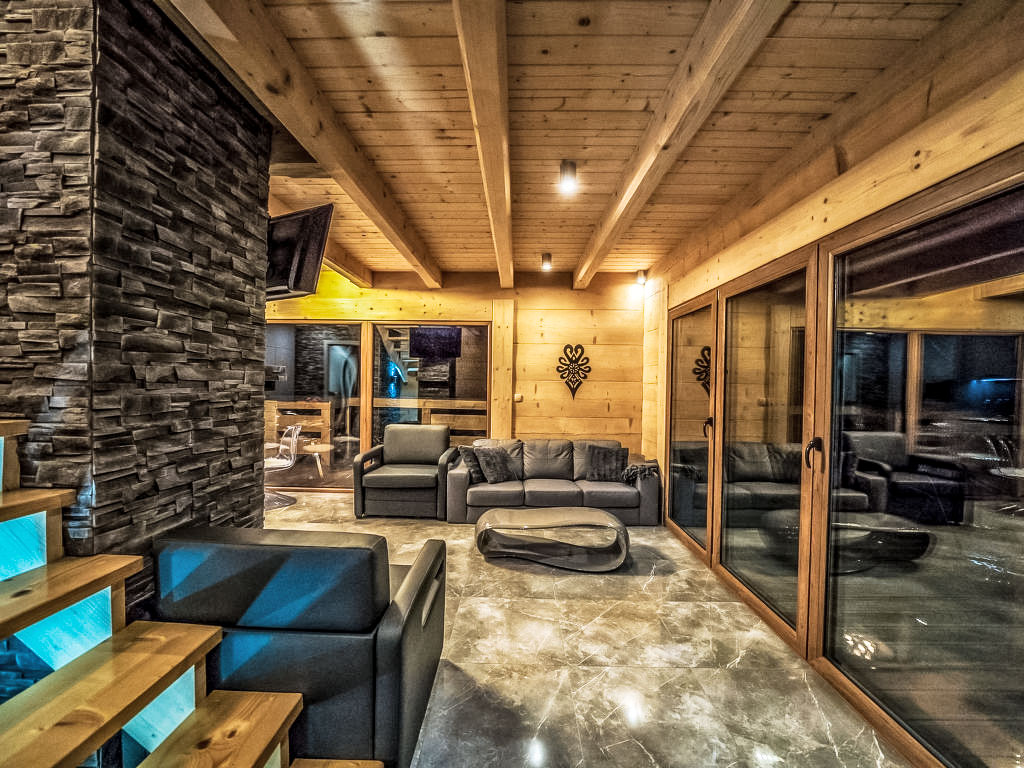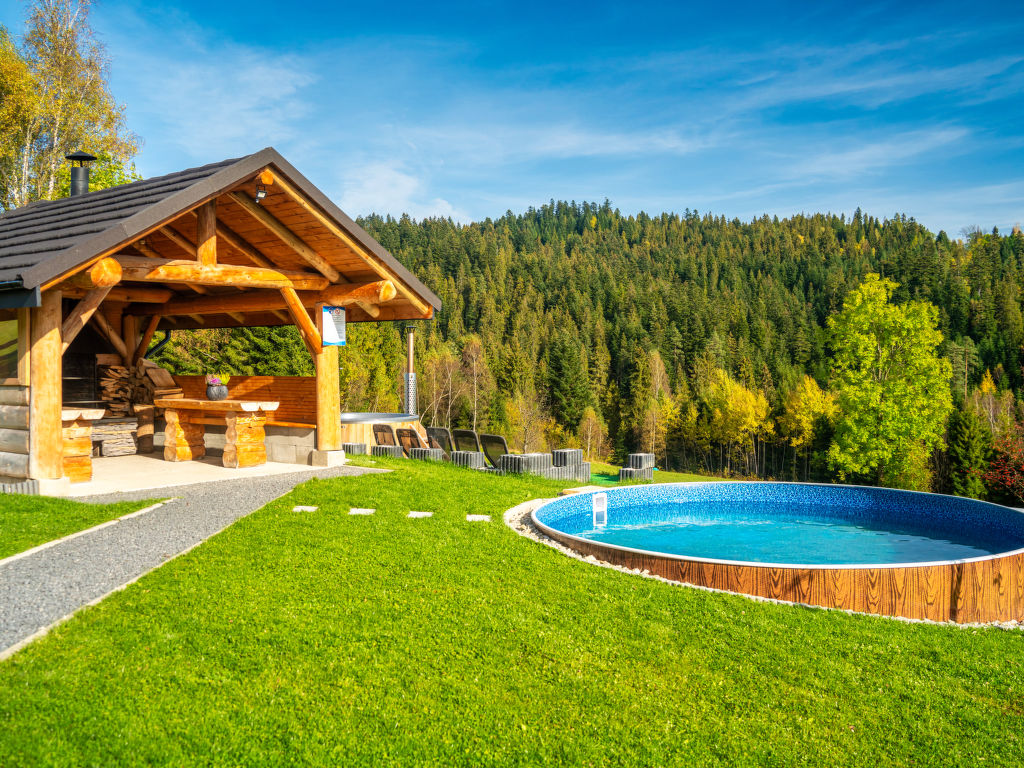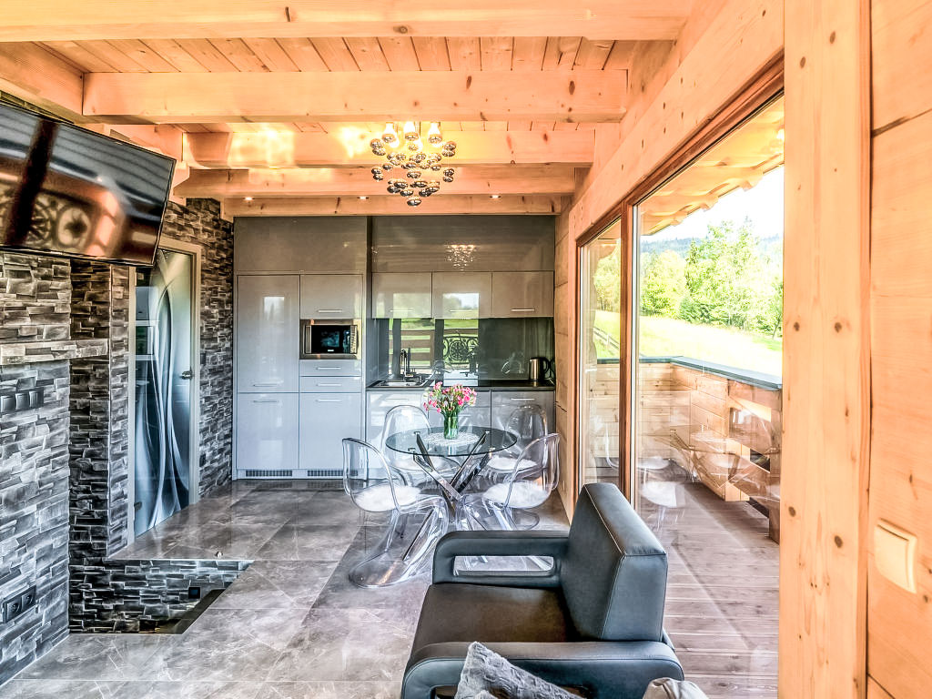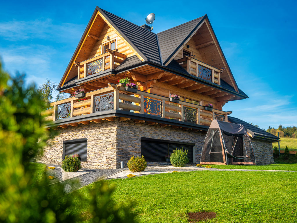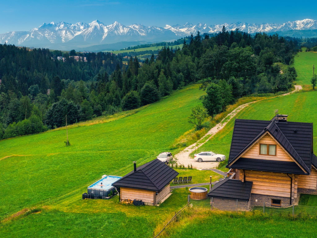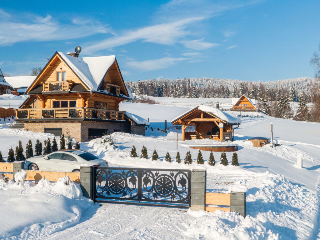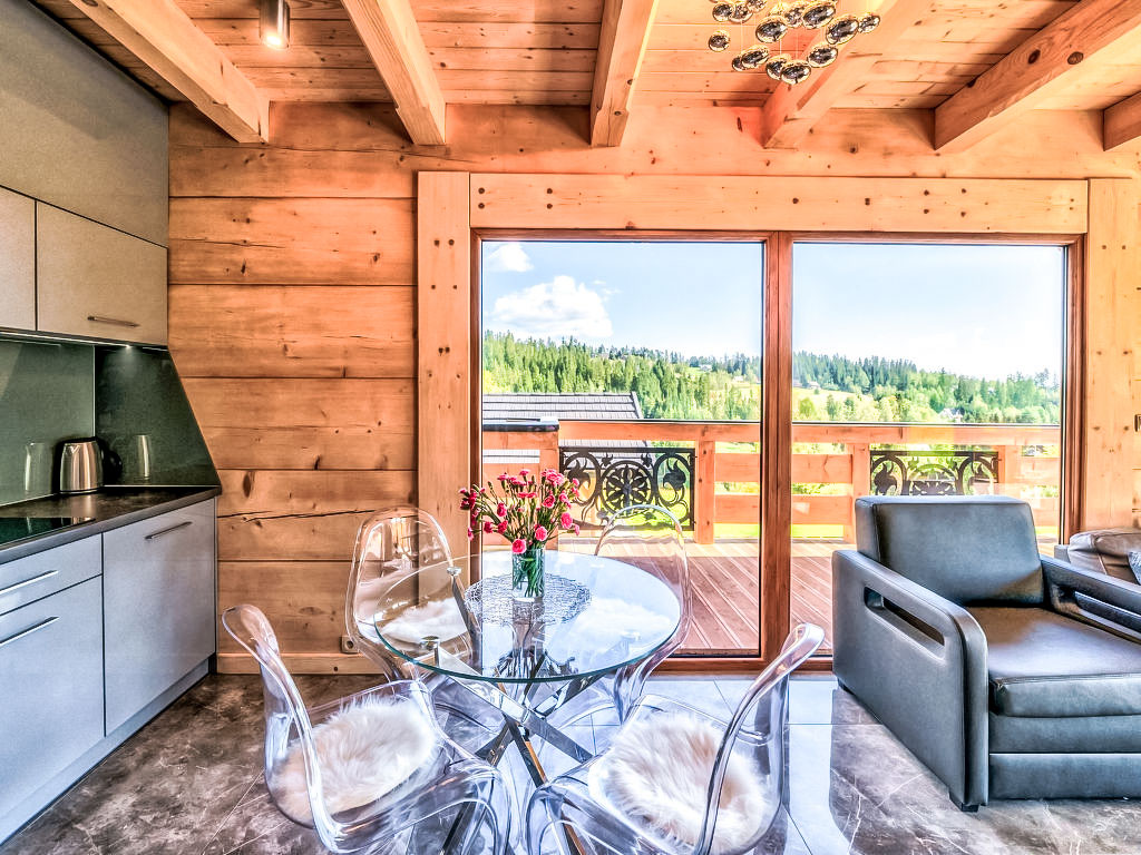 Luxuriöses Chalet "De Luxe", Baujahr 2017. Ruhige, sonnige, erhöhte Lage, 1 km vom Skigebiet. Zur Alleinbenutzung: Grundstück 9'000 m2, Schwimmbad beheizt (01.05.-30.09.). Sprudelbad, Laube, Feuerstelle, Grillhaus. Im Hause: Sauna, Skiraum, Zentralheizung. Parkplatz beim Haus. Einkaufsgeschäft 2 km, Supermarkt 2 km, Restaurant 4 km, Bushaltestelle 2 km, Bahnstation 4.5 km, Hallenbad 5.5 km. Reitstall 4 km, Skilift 1 km, Skischule 1 km, Langlaufloipe 2.5 km, Eisfeld 4 km, Kinderspielplatz 2 km. Nahe gelegene Sehenswürdigkeiten: Termy Szaflary 12 km, Termy Bania 15 km, Termy Chochołowskie 28 km.