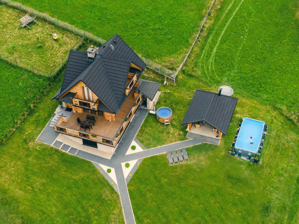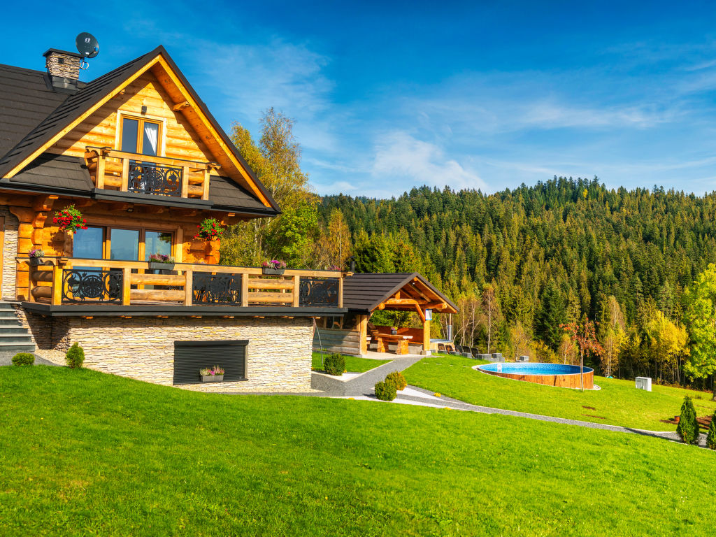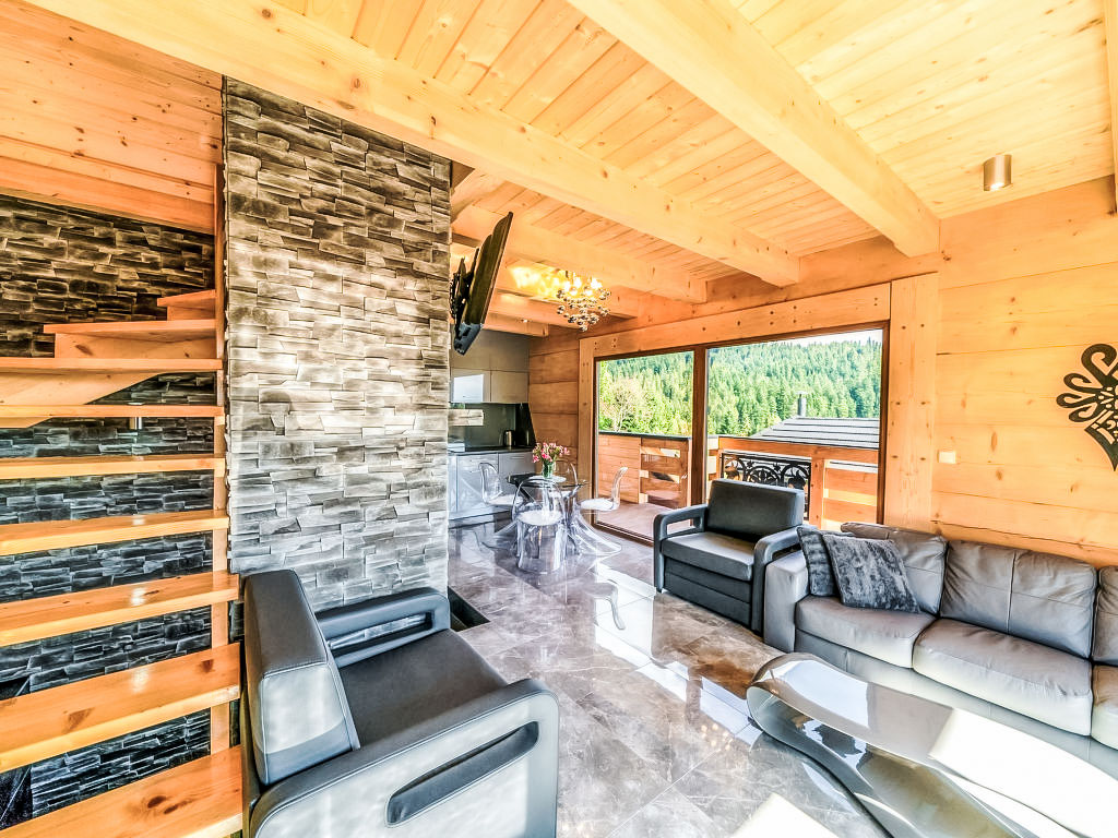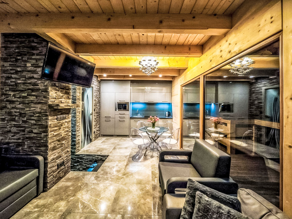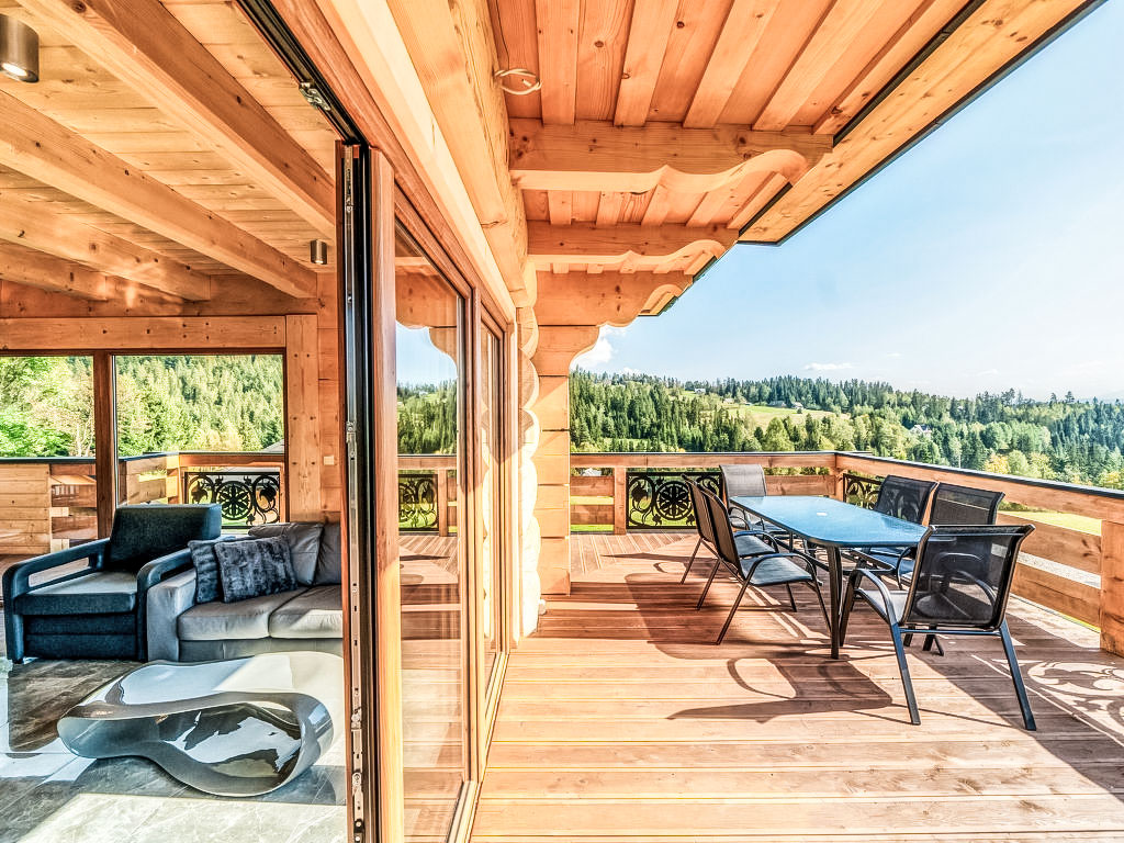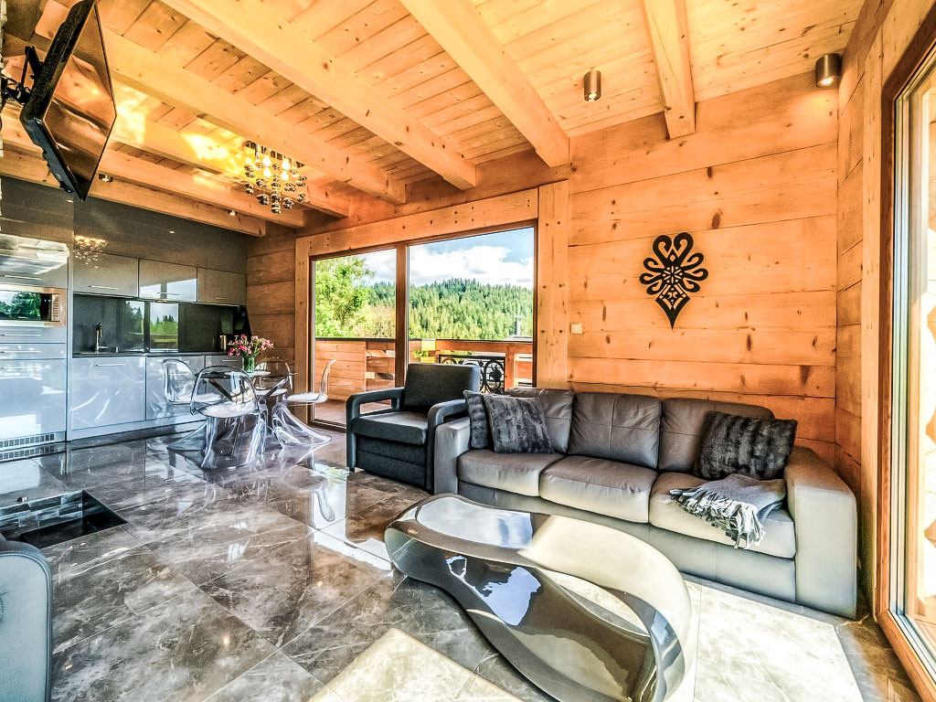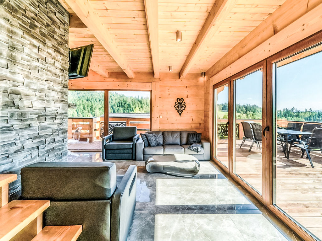 Luxuriöses Chalet "De Luxe", Baujahr 2017. Ruhige, sonnige, erhöhte Lage, 1 km vom Skigebiet. Zur Alleinbenutzung: Grundstück 9'000 m2, Schwimmbad beheizt (01.05.-30.09.). Sprudelbad, Laube, Feuerstelle, Grillhaus. Im Hause: Sauna, Skiraum, Zentralheizung. Parkplatz beim Haus. Einkaufsgeschäft 2 km, Supermarkt 2 km, Restaurant 4 km, Bushaltestelle 2 km, Bahnstation 4.5 km, Hallenbad 5.5 km. Reitstall 4 km, Skilift 1 km, Skischule 1 km, Langlaufloipe 2.5 km, Eisfeld 4 km, Kinderspielplatz 2 km. Nahe gelegene Sehenswürdigkeiten: Termy Szaflary 12 km, Termy Bania 15 km, Termy Chochołowskie 28 km.