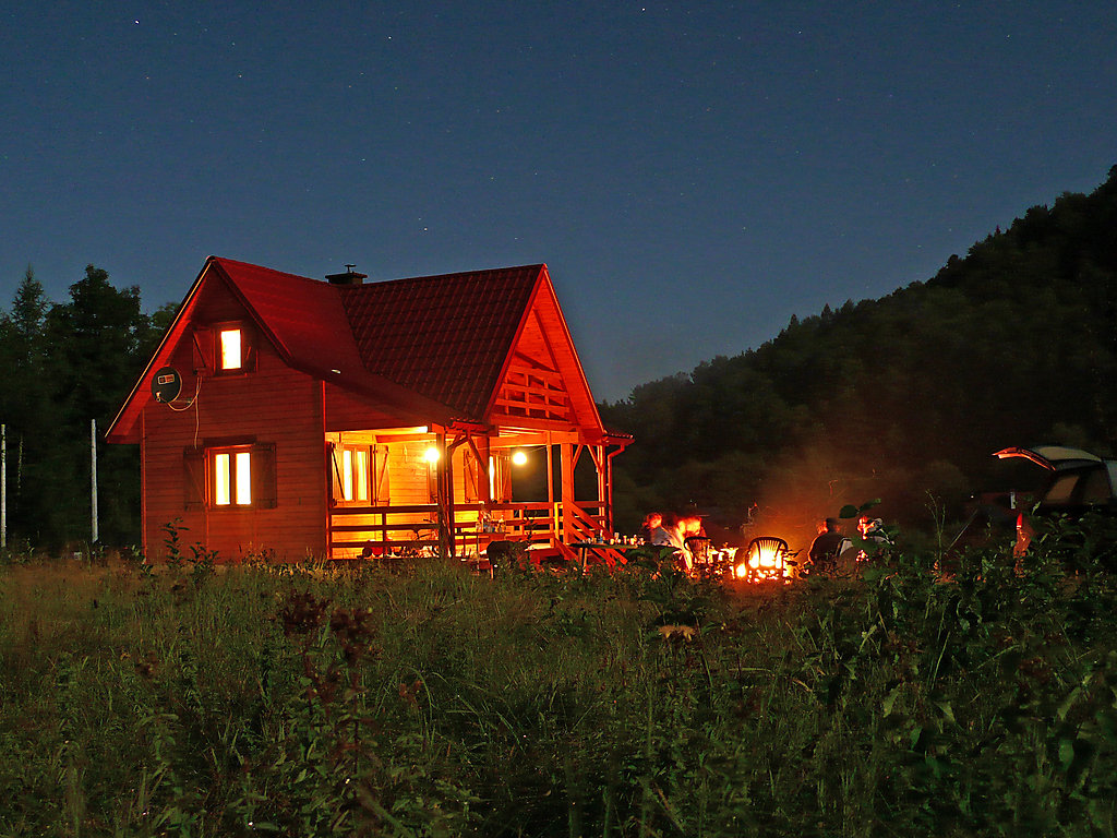 Kleines, gemütliches Chalet "Nad Soliną", Baujahr 2009, umgeben von Bäumen und Wiesen. 2 Häuser im Ferienresort. 330 m n.p.m, im Ort, ruhige, sonnige, erhöhte Lage, 100 m vom Waldrand, 900 m vom See, 100 m vom Fluss. Zur Mitbenutzung: Grundstück 1'300 m2 (eingezäunt), Parkplatz beim Haus. Lebensmittelgeschäft 100 m, Restaurant 500 m, Bushaltestelle 70 m. Bekannte Seen in der Umgebung sind gut erreichbar: Jez. Solińskie 900 m. Bitte beachten: geeignet für Familien. Angeln (mit Bewilligung).