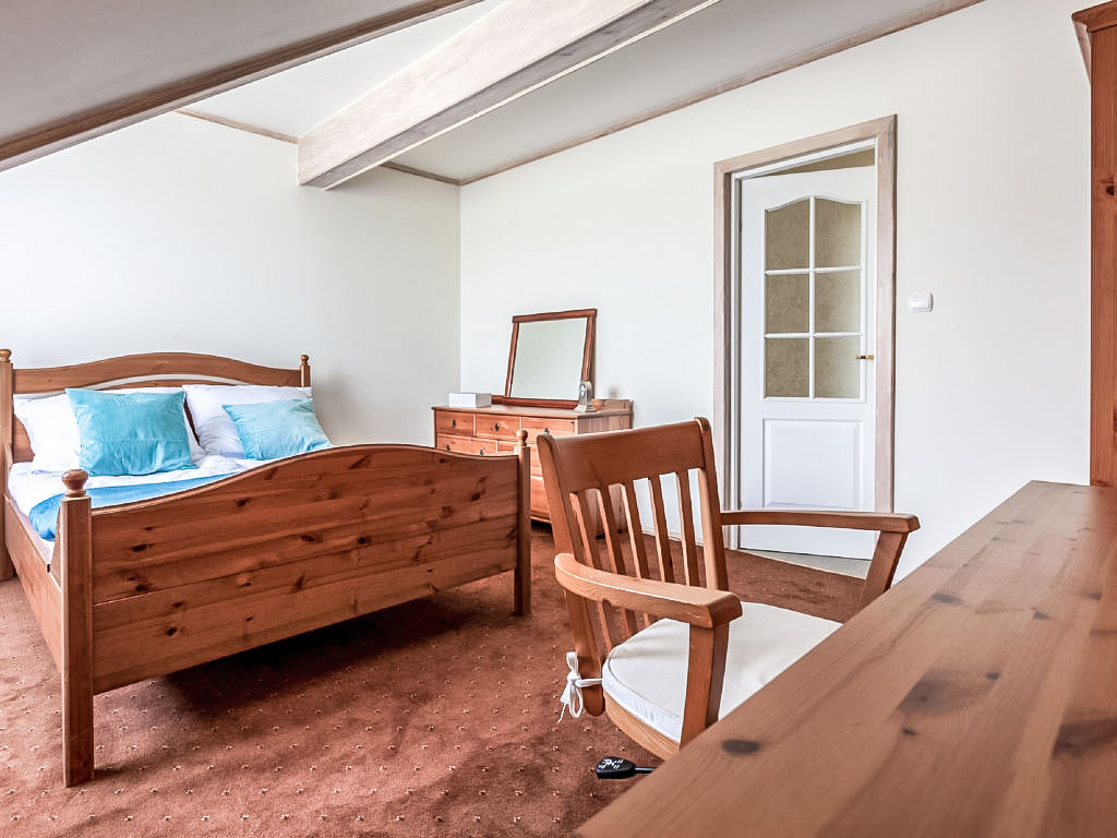 6-Zimmer-Haus 175 m2 auf 2 Stockwerken. Salon mit 1 Doppeldiwanbett, Schwedenofen und Sat-TV. 1 Zimmer mit 1 Doppelbett (140 cm, Länge 200 cm). 1 Zimmer mit 1 x 2 Etagenbetten (90 cm, Länge 200 cm). Küche (4 Kochplatten, Backofen, Geschirrspüler, Tiefkühler, Kochinsel) mit Essecke. Dusche/WC. Boiler (100 Liter). Obergeschoss: Wohn-/Esszimmer mit 1 Doppeldiwanbett, Schwedenofen und Sat-TV. 1 abgeschrägtes Zimmer mit 1 Doppelbett (140 cm, Länge 200 cm). 1 abgeschrägtes Zimmer mit 1 Doppelbett (140 cm, Länge 200 cm). Offene Küche (4 Kochplatten, Backofen, Geschirrspüler, Tiefkühler) mit Essecke. Dusche/WC. E-Heizung, Holzheizung, Boiler (100 Liter). Terrasse 10 m2. Terrassenmöbel, Liegestühle (2), Wintergarten. Zur Verfügung: Waschmaschine, Wäschetrockner, Bügeleisen. Internet (Wireless LAN).