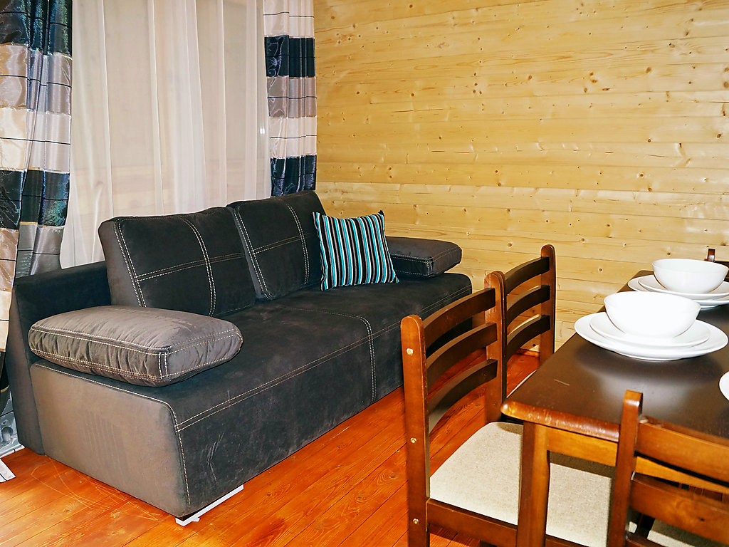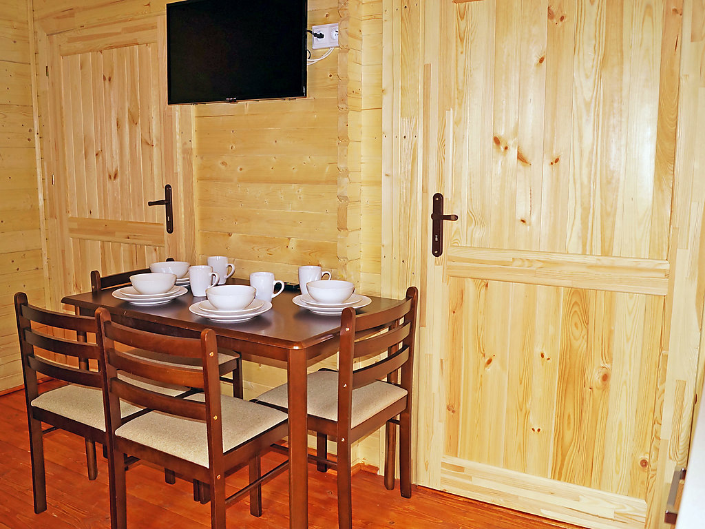 "Mielno - domek parterowy", 2-Zimmer-Bungalow 25 m2. Offenes Wohn-/Schlafzimmer mit 1 Doppeldiwanbett (140 cm, Länge 190 cm), TV. Ausgang zur Terrasse. 1 Zimmer mit 2 Betten (90 cm, Länge 200 cm). Kochnische (2 Kochplatten). Dusche/WC. E-Heizung, Boiler (40 Liter). Terrasse 6 m2. 1 Haustier/Hund erlaubt.