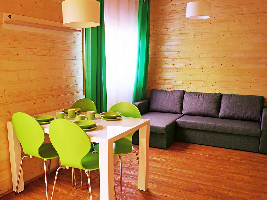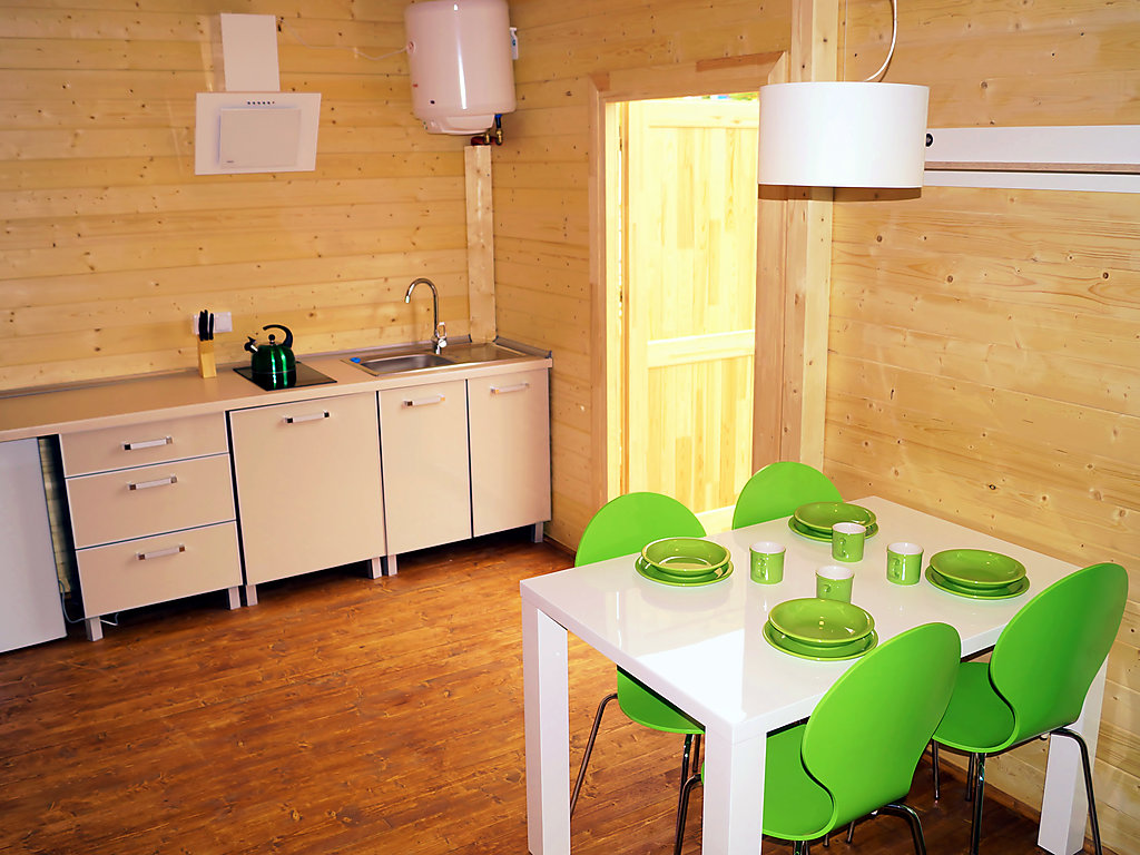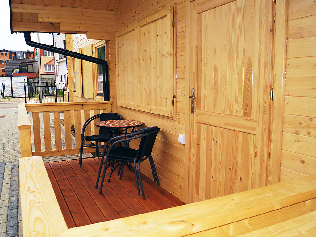 Reihenhaus "Onyx". Am Ortsrand, sonnige Lage. Zur Mitbenutzung: Grundstück 855 m2. Grill, Kinderspielplatz. Im Hause: Wäschetrockner. Parkplatz beim Haus auf dem Grundstück. Lebensmittelgeschäft 300 m, Supermarkt 800 m, Restaurant 100 m, Bushaltestelle, Bahnstation 300 m, Sandstrand 1 km. Bitte beachten: Hauptstrasse in der Nähe. Eisenbahnlinie in der Nähe. Das Foto ist nur ein Hausbeispiel. Ferienwohnung Ref. PL7604.302.1 befindet sich auf dem gleichen Grundstück.
