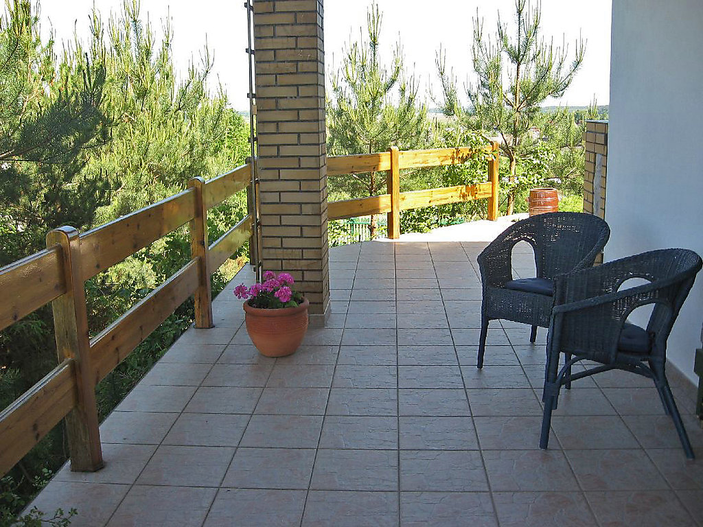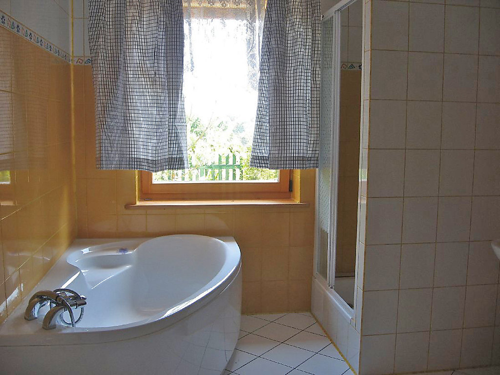 4-Zimmer-Haus 120 m2 auf 2 Stockwerken. Schön und gemütlich eingerichtet: offenes grosses Wohn-/Esszimmer mit offenem Kamin, Sat-TV und Radio. Ausgang zur Terrasse. Offene Küche (4 Kochplatten, Backofen, Geschirrspüler, Mikrowelle, elektrische Kaffeemaschine). Bad/Dusche/WC, Doppelwaschbecken. Dachgeschoss: 2 abgeschrägte Zimmer 17 m2, ohne Schrank, jedes Zimmer mit 1 Doppelbett (140 cm). 1 abgeschrägtes Zimmer 33 m2, ohne Schrank mit 2 Betten. Bad/WC. Terrasse 60 m2. Terrassenmöbel, Gartengrill. Fernsicht auf den See und die Landschaft. Zur Verfügung: Waschmaschine. 1 Zimmer im Erdgeschoss ist geschlossen. Jedes Zimmer im Erdgeschoss hat einen Schrank im Korridor.